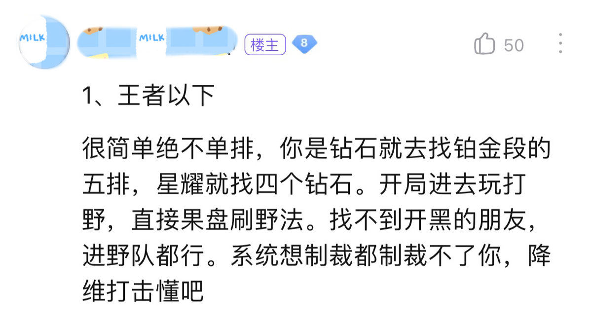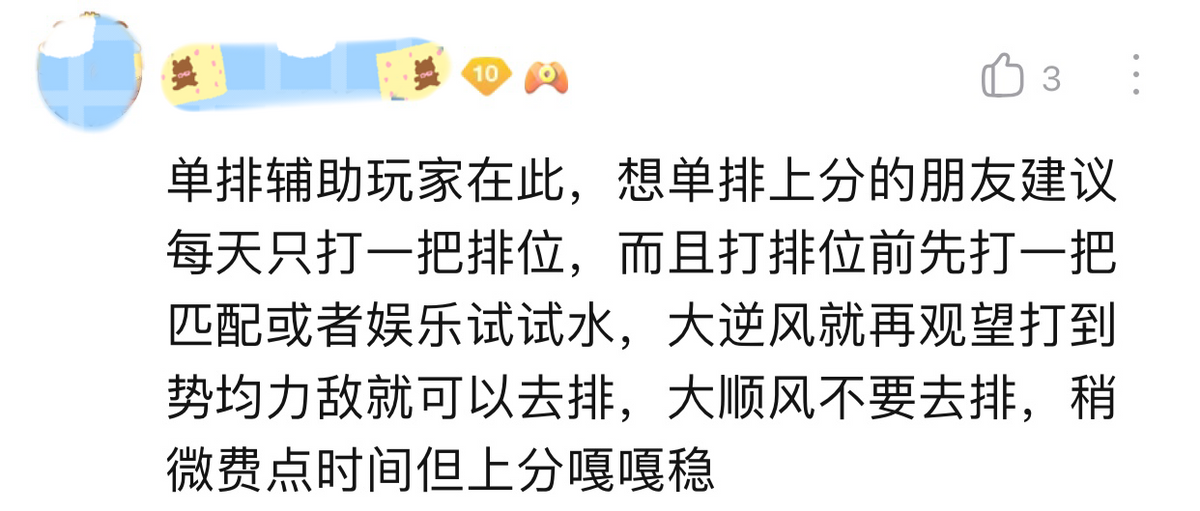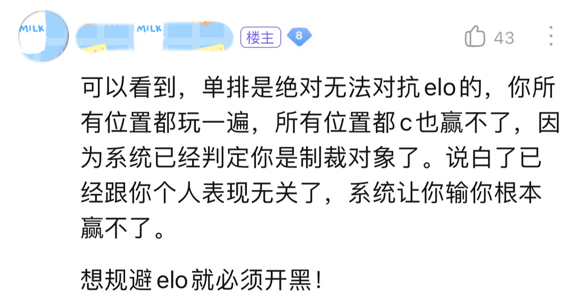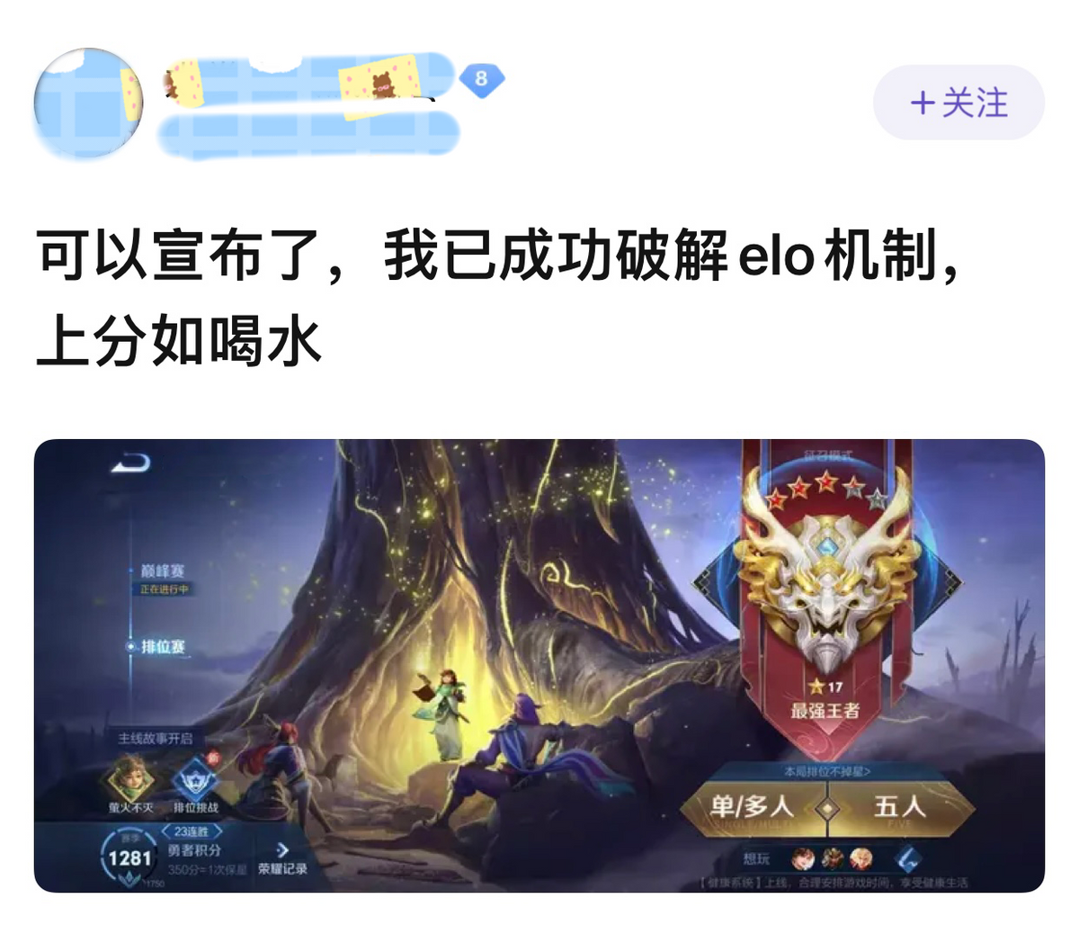 前言:各位小搭档各人好,这里是不但游戏打得6,长得还很帅的熊猫哥哥~ 王者光彩中elo机制是很多玩家都在讨论的一个话题,也让无数玩家感到头疼。 简朴来说,elo机制就是让玩家们上分之路极其不顺遂,尤其是玩家们体现特殊突出。比方拿很多个mvp,或是战绩特殊好,连胜的时间,elo机制就会给玩家们安排比力惊人的队友,通常体现为很菜、摆烂等等。 关于elo机制的讨论是生生不息的,也有很多玩家会想出一些奇招来对抗elo机制。 这几天就有一个玩家,声称自己已经破解了elo机制,上分就像喝水一样简朴,引来吃瓜群众热烈讨论。 真的有这么神奇吗?快来和熊猫哥哥一起相识一下。 某玩家称自己已经破解了王者光彩的elo机制,上分如喝水一样平常简朴起首这位玩家贴出来自己的段位图,可以看到已经打到了最强王者17星,简直是很锋利。 再来看看战绩,把把都是赢,把把mvp,简直有一种不受elo机制制裁的感觉。 干货来了,这位玩家体现,假如想要摆脱elo机制,那么,绝对不要单排! 由于elo机制最明显的特点就是故意给你安排特殊拉垮的队友,假如不但排,就没有安列队友这一说,因此可以摆脱。 因此,找队友非常紧张,这究竟是一个5v5的游戏,人多力气大,只要自己水平在,不给故意摆烂的队友,那就可以不受elo机制的安排。 而且,过了晋级赛就下线,肯定不要乘胜追击,否则很大概打不上,还越输越多,低沉日生动度很紧张。 尚有一点,排位连胜之后,就去顶峰赛不绝摆烂,如许就可以不被体系针对。 吃瓜群众对此意见不一,有的以为有用,有的则不敢苟同看完该玩家的观点,部门玩家以为简直很有用,尤其是不要单排,拉人五排,上分很轻松。 同时,该玩家说的低沉日生动度,也简直有用果,很多玩家都履历过不绝输不绝打,越打越输,还不如少打。 但也有玩家说这些方法不实用,自己更适当单排,一组排反而要输。 而且,该玩家说甘心去大厅恣意组队,也不但排,但是大厅里的“妖妖怪怪”真的不少,说不定还更轻易输。 总的来说,公认的躲避elo机制最有用的方法,还得是“少玩”有路人总结道,想躲避elo机制的安排,只有一个方法,就是少玩,一输就退游,再返来,就会发现很好打。 这是由于,elo机制也会查抄玩家的日活度,不想让玩家退游,假如玩家日活度很低,就会故意给安排轻易赢的因素,让玩家赢的同时越来越爱打王者,不得不说还挺贼。 因此,输了就下线,不打至少不会不绝输,下次返来还大概会赢,有用破解。 熊猫有话说:信赖很多玩家都是云云,elo机制是真的很搞心态,有的时间到了晋级赛,偏偏队友摆烂,导致输了,真的很难熬。 但是熊猫哥哥以为,咱们玩了这么久的王者,也应该看开了,只要技能好,还是能上得去分的。 好了小搭档们,对于上述变乱,你有什么不一样的见解呢?欢迎来批评区留言讨论,大概你有别的故事也可以私信告诉熊猫哥哥噢,爱你萌,比心~ |