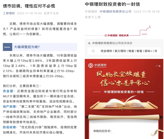 股债跷跷板,冰火两重天。 近期权益市场回暖的环境下,债券市场的投资者正在继承近乎本年以来最大的磨练。Wind数据体现,11月16日,10年国债收益率上行至2.86%,3年国债收益率上行至2.49%,国债期货10年期主力合约下跌0.27%,5年期下跌0.31%。至此,债券市场已经连续5个生意业务日下跌。 近期债市发生调解,重要是受到活动性收敛、疫情防控优化和地产支持政策等因素的影响。随着市场连续下行,近期债券基金净值广泛回撤,而净值化的银行理财产物也迎来了新一轮“破净潮”。 被“暴击”的债基 本周以来,债券市场大幅调解,10年国债收益率大幅上行12bp至2.86%,3年国债收益率上行12bp至2.49%,1年国债收益率上行15bp至2.12%;各限期同业存单利率广泛上行15-20bp;银行永续和二级资源债广泛上行20-25bp。 “近期大财产物的体现都不是很好,我的产物也遭遇了‘暴击’,净值回撤比力大。”上海一家百亿私募的债券基金司理在继承券商中国记者采访时表现,该公司近期多个产物遭遇了单日高出0.15%以上的回撤,这个回撤幅度对于很多年化收益率只有5%左右的债券类基金来说已经非常严峻。 Wind数据体现,近期债券基金出现广泛下跌。11月14日,全市场中恒久纯债基金匀称跌幅到达0.29%。11月15日,再度下跌0.09%。 债券市场的剧烈颠簸,背后是市场对于宏观经济以及活动性预期的团体改变。 “前期国债利率已处于汗青低位,债市对利多因素反应有所钝化,跨月后资金代价回落痴钝,活动性边际收敛,债市面临回调压力,而优化疫情防控‘二十条’和‘金融十六条’政策的推出显着提升市场对经济的将来预期,多重因素共振下债市迎来剧烈调解,出现债券利率单日上行超10bp的非常行情。”中证鹏元研发部研究员李席丰对券商中国记者表现。 中信证券首席经济学家显着也表达了类似的观点。他对券商中国记者表现,此前债券市场透支了经济阑珊和经济下行的预期。但是迩来一系列比力积极的政策的出台,使得整个市场对于将来的经济预期徐徐改善和修复,市场风险偏好也在提升。 在活动性方面,显着也坦言,此前市场也在押注央行会继承降息降准,但是近期央行利用非常妥当,导致市场对于降息降准的预期落空。 央行近期的利用也印证了市场关于活动性的一些判定。11月15日,央行开展8500亿元1年期MLF利用和1720亿元7天期公开市场逆回购利用,中标利率分别为2.75%、2.0%。本月MLF到期量10000亿元,央行续作8500亿元,MLF净回笼1500亿元。 “央行的MLF利用非常妥当,根本上是等量续作,固然MLF缩量,但是通过PSL和各类专项再贷款等工具仍然向市场开释了充实的活动性。但是债券市场此前不绝还是渴望央行可以大概尽快地降准乃至降息,现在降准降息的预期落空,也导致了债券市场调解。”显着说。 赎回压力陡增的理财 债券市场的颠簸毫无疑问地拖累了以债券资产为设置大头的银行理财。债券市场的急跌导致产物设置的债券部分资产净值下跌,即便有权益部分在苦撑,但仍然无法抵消净值的回撤。 继3月份1200只产物“破净”的大潮后,银行理财近两日又身陷新一轮较大的“破净潮”。Wind数据体现,克制11月15日,全市场34364只银行理财中(发行主体包罗银行和理财公司),共有1776只产物的净值跌至1以下。 净值的剧烈颠簸造成了投资人恐慌,不少投资人会合赎回产物。某股份行理财公司的现金理财产物“活钱管家”便由于赎回客户太多,触碰了巨额赎回上限。 “理财前端,也就是负债端的不稳固又一次暴袒露来了,这是银行理财净值化过程中必须要面临的标题。”一名公募基金高管云云评价。他告诉券商中国记者,多家基金公司都遭遇到了差别程度的理财赎回,但团体环境可控。 国信证券银行团队分析师王剑分析,客岁以来理财规模增长较多,从客岁6月末的26万亿增长到本年的29万亿,应该有很多低风险偏好的客户买入。由于投资者辅导不充实,很多投资者仍然以已往刚兑的头脑来买,无法继承净值颠簸,开始赎回。“赎回导致债券抛盘,债市继承跌,恶性循环,乃至踩踏。”王剑称,“估计还会要折腾几天才华消停”。投资者辅导的根天性办理大概必要时间。 招商证券银行业首席分析师廖志明也留意到了理财遭遇客户赎回压力的环境,他表现投资者应该看到乐观的一面:票息高了,将来可预期的理财收益率会更好些。这个时间不应该再去赎回,反而应该思量放肆买入。 “理财遭遇客户赎回压力-理财赎回委外及基金-委外管理人抛售债券,理财负反馈,债市跌得有点急。票息高了,产物更好做了。稳住,熬一熬,渴望就在眼前。”廖志明说。 国元证券的固收分析师指出,现在银行理财等广义基金赎回的环境有所显现,打击重要会合在短债和光荣债市场。是否进一步发酵仍需关注。从外汇生意业务中央的数据来看,近半周市场的重要净卖出机构还是券商、基金等非银机构,银行理财仓位厘革不大,银行自营根本以净买入为主,阐明市场现在尚处于生动机构“生意业务预期”、货基减仓短债的阶段。 “本次债券市场收益率的上行,更多反映的是感情面而不是根本面。”一家股份行理财公司副总司理告诉记者。 每当遇到净值颠簸引发的赎回潮,银行理财作为管理人就有须要出来举行投资者辅导。工银理财表现,现在债券市场,尤其是短限期资产,颠末快速感情开释后,根本已调解到具备性价比地区。债券产物具备票息