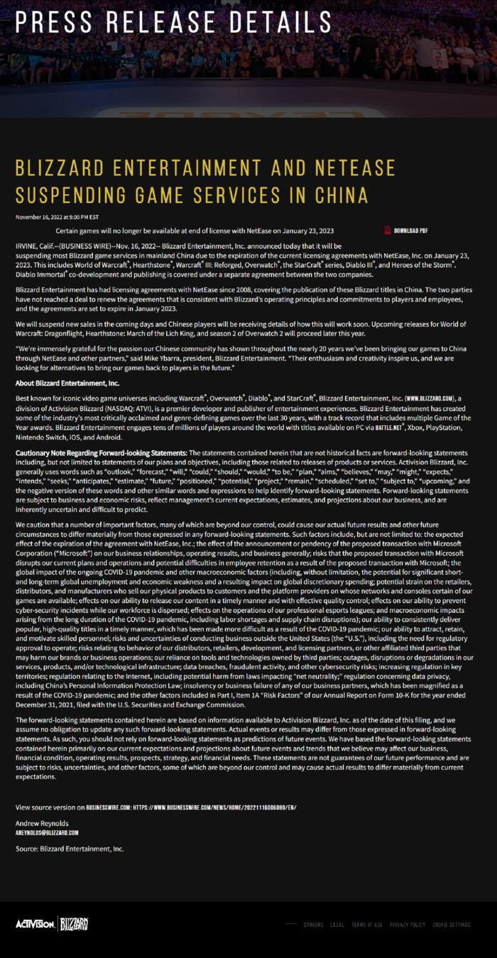 从奥美到九城 1997年7月,暴雪第一次正式出如今中国玩家眼前。其时,尚属于美国Cendant公司旗下的暴雪与中国武汉的奥美电子公司签订署理运营协议。接下来几个月,刚建立一年的奥美电子卖出了15万套《魔兽争霸2》光盘。 同年9月,暴雪的大作《暗黑粉碎神》也经过奥美进入中国市场。奥美北京分公司随即建立,今后几年中,奥美引进了十几款暴雪旗卑鄙戏及其资料片,包罗“魔兽争霸”“星际争霸”和“暗黑粉碎神”3个告急系列,成了暴雪游戏在中国大陆地区的代言人。 2003年7月1日,《魔兽争霸3:冰封王座》在中国实现了环球同步上市。奥美北京公司总司理陈望治在媒体采访中说,可以大概实现同步上市,在日后看来也是古迹,乐成同步上市的告急缘故原由是“暴雪提供了原生中文版本,给审批提供了很大便利”。发售首日,《魔兽争霸3:冰封王座》的销量到达了4万套。 同时被引进中国的另有“暴雪战网”。1996年末,暴雪将这个游戏对战平台随《暗黑粉碎神》一同推出,旨在资助玩家实现跨局域网的多人联机。到厥后,暴雪接纳了关键的CD-Key技能,玩家必须使用正版游戏附送的13位码登录,才华联入战网,举行多人游戏。奥美是中国大陆地区的唯一正版运营商,2000年《暗黑粉碎神2》发售时,奥美也在光碟里附送CD-Key。 这也为厥后的标题埋下了伏笔。2005年,《魔兽争霸3》发作一码多售事故,奥美被指将使用过的CD-Key重复出售给玩家,额外赢利,陵犯正版玩家权益,曾经拥有暴雪旗下大多数游戏署理权的奥美遭遇严峻危急。事发后,暴雪及其母公司维旺迪对奥美做出处罚,之后停止了与奥美及厥后的神州奥美(神州通讯收购奥美51%的股权后建立的新公司)的齐备互助。 2004年,暴雪酝酿多年的MMORPG《魔兽天下》上线。这一次,《古迹》的运营商第九都会拿下了它在中国大陆地区的独家署理运营权。4月1日,九城与维旺迪的协议正式告竣。颠末一年的预备,2005年4月26日破晓,《魔兽天下》国服开启公测,并在两个月后正式开始商业化运营。今后的4年间,《魔兽天下》的中国玩家数目不绝上升。《魔兽天下》成了21世纪第一个10年里中国游戏市场的标记性游戏。 2007年1月,《魔兽天下》推出了第一部资料片《燃烧的远征》,并在北美及欧洲地区革新贩卖纪录。然而,国服玩家却迟迟没有比及它的消息。在颠末一系列修改之后,《魔兽天下:燃烧的远征》终极在8个月后通过了相干考核,于9月6日与中国大陆地区玩家见面。游戏最高同时在线人数随即突破80万,创下汗青新高。 网易14年 2009年4月,随着一封来自九城的内部邮件被公开,《魔兽天下》的署理权标题再次吸引了玩家和业界的眼光。4月16日,暴雪与网易正式公布将在中国大陆地区互助运营《魔兽天下》。5月31日,九城发布公告,将于6月7日破晓0时起停运《魔兽天下》。6月7日0点,《魔兽天下》中国区服务器全部关闭。九城终极失去了这款在它的总收入中占比凌驾90%的游戏。 根据2009年4月24日文化部办公厅印发的《关于规范入口网络游戏产物内容检察申报工作的公告》的规定,入口游戏在转换运营商时须要重新申报游戏版号。停服3个多月后,2009年9月,由上海网之易网络科技发展有限公司运营的《魔兽天下》重新开服。 此前一年,网易已经拿下了暴雪旗下除《魔兽天下》之外的浩繁游戏的谋划权。2008年8月13日,暴雪和网易同时公布,将《星际争霸2》和《魔兽争霸3》以及暴雪战网平台在中国大陆地区的独家运营权授予网易。网易香港公司更改为合资公司,由网易和暴雪两边各占50%股权。 随后网易建立了“网易暴雪互助部”,现实由网易旗下的丁磊独资公司“上海网之易网络科技发展有限公司”负责,独立于网易架构之外运营。同年12月,暴雪建立上海分部,帮忙中国地区的技能运营工作。暴雪与网易正式进入了全面互助期间。 2010年,《魔兽天下》第二部资料片《巫妖王之怒》在国服上线。接下来的12年中,经过网易,暴雪在中国推出了8部《魔兽天下》资料片——《巫妖王之怒》《大地的裂变》《熊猫人之谜》《德拉诺之王》《军团再临》《争霸艾泽拉斯》《暗影国度》,以及将在本年11月29日上线的《巨龙期间》。此中于2012年发布的《熊猫人之谜》给不少中国玩家留下了深刻印象。“中国元素”的参加也标记着暴雪与网易在中国的互助到达了一个新的高峰。 随后的几年里,两个巨头的每次动作都会引起业界广泛关注。2014年的《卧龙传说-三国名将传》案与2015年的《全民魔兽》案中,二者就抄袭侵权标题多次共同出击。在运营上,2016年《魔兽天下:军团再临》资料片推出前夕,网易公布将国服收费模式由点卡改为月卡,引发了玩家的大范围讨论。同年5月,《守望前锋》与环球同步上线。 2014年,《炉石传说》先后在PC、平板电脑和手机平台上线,暴雪也从中看到了移动端游戏的远景。2018年,暴雪在暴雪嘉光阴上公布与网易共同研发移动端游戏《暗黑粉碎神:不朽》。只管在其时形成了一些舆论风波,但《暗黑粉碎神:不朽》厥后得到了不错的结果。2022年6月,《暗黑粉碎神:不朽》正式上线,中国大陆地区正式上线的时间则为7月25日。根据统计,制止11月,《暗黑粉碎神:不朽》的收入凌驾3亿美元。 提及暴雪与网易的互助,暴雪中国总司理郑鸿升在2018年的一次媒体专访中体现:“暴雪中国作为环球暴雪公司的一部门,最核心的职