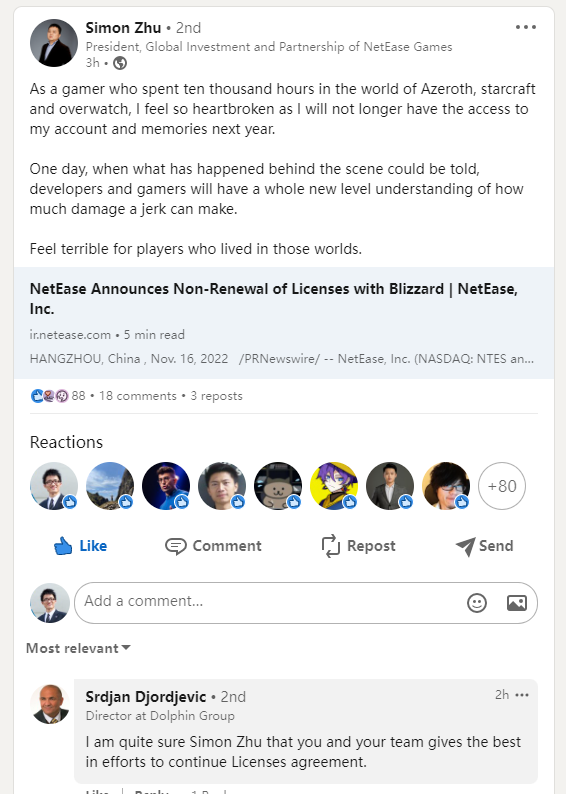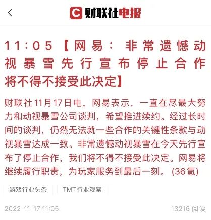 本日上午,动视暴雪片面公布清除与网易的署理合约,旗下《魔兽天下》《炉石传说》《守望前锋》等多款产物,将在2023年1月23日(即合约限期)克制大陆地区的运营。 消息一出,宛如平地惊雷,震撼了整个游戏圈。 随后,网易也发布公告印证了这则消息。“非常遗憾动视暴雪在本日先行公布了克制相助,我们将不得不继承此决定。” 晚上8点的财报集会上,网易高层也出头正式回应了这件事,并表现他们将会做好善后工作,保障玩家们的长处。 至此,这一场自2008年以来,涵盖《魔兽天下》《守望前锋》《炉石传说》等多个爆款产物,长达14年的相助即将画上句号。 固然听起来让人以为始料未及,但着实前段时间,坊间已经有过雷同的听说。 11月8日,动视暴雪在Q3财报中表现,公司在中国签约的署理协议将于2023年1月到期。现在,他们正在与网易讨论续签协议,终极大概无法告竣令两边都满足的效果。 不外谁人时间,很多人都没有想到暴雪真的会清除合约——毕竟是长达14年的稳固相助,更何况本年他们共同开辟的《暗黑粉碎神:不朽》在环球范围内都取得了相当亮眼的效果。 值得一提的是,《暗黑粉碎神:不朽》属于团结开辟,不在这次解约的范围之内,游戏照常运营。 抛开贸易收益不说,网易通过14年本土运营所积累下来的IP影响力,品牌代价、口碑效应等等,这些都是难以取代的东西。 乃至在很多中国玩家的心中,网易与暴雪两者已经捆绑成为了一个固有的标签印象。 正因云云,本日看到这则消息之后,信赖很多人都跟我一样,脑海里闪过千言万语,但终极它们汇聚成一句话:为什么动视暴雪要解约? 01 为什么动视暴雪会解约? 想要弄明确这个标题,先回到两边公告的内容上看。 起首,暴雪在公告中写到,“两边未就符合暴雪运营原则和对玩家及员工答应的续约协议告竣划一,因此当前的协议将在2023年1月到期。” 其次,网易在公告中也提到一句话:“颠末长时间的会商,仍然无法就一些相助的关键性条款与动视暴雪告竣划一。” 由此我们不难判断,两边是在署理条约的某些条款上,存在着相当大的分歧意见,以至于暴雪决定克制相助。 那么,这又引申出了另一个标题,到底是什么样条约才气拦阻这场长达14年的相助继续下去? 根据虎嗅从靠近网易知恋人士处获悉,暴雪对续约提出了天价条件,乃至尚有部门“不公道”条款。详细如下: 1、暴雪方分成较2019~2022合约期50%以上营收和净利润进一步进步,暴雪游戏定价环球同步(此前国服定价较其他地区广泛低约20%) 2、网易按照《暗黑粉碎神:不朽》模式,研发暴雪其他IP手游环球发行,但只享有中国区市场营收分成;且需网易缴纳巨额包管金或预付费用作为包管,否则将被“处罚”。 3、对于国内游戏版号标题动视暴雪方提出了不可答应的束缚性条款。 假如爆料属实的话,这些条款对于网易,以致是对于国内任何一家大厂来说,都是难以允许的。由于此中会涉及到太多不稳固且不可控的因素。 比方说,IP手游巨大的研发资本与漫长的研发周期。《暗黑粉碎神:不朽》,从首曝到正式上线,用了长达四年的时间。 本年年初,暴雪的《魔兽天下》手游也被曝出与网易克制研发,而期间所耗费的时间、人力、款项不可胜数。 更不消说,现在国内团体版号收紧的大情况。固然本年4月放开审批,但团体数量对比往幼年了很多。而涉及到国外IP的入口版号已经凌驾500天没有发放了。 综上所述,现在的这个效果更多是网易所不想望见的,却又不得不继承的。 固然,更难过的应该是,那一批不绝在国内热爱并支持《魔兽天下》《守望前锋》等游戏的玩家们。 毕竟在暴雪找到新的署理厂商之前,这些游戏都将不可克制地迎来一阵停服期,乃至大概以年作为单位。 就算是2009年《魔兽天下》从九城交代到网易手上时,后者提前在服务器、数据交代等方面做了足准备,但是由于干系政策以及业务交代的复杂性,游戏依然克制运营了两个月。 这次解约之后,重新运营的时间大概会更久。有很多玩家在微博、B站、虎扑等交际平台上,都表达出了本身的遗憾与不舍。 毕竟上,对于很多中国玩家来说,无论他们是否喜欢暴雪,但都直接大概间接地打仗过《魔兽天下》《守望前锋》等一系列游戏,以及知道那句耳熟能详的标语——“暴雪出品,必属佳构”。 而这背后,既源于暴雪工匠式的研发态度,也离不开网易的本土化运营。 02 网易十四年的运营表现怎样? 网易与暴雪的相助始于2008年。当年,网易从暴雪手上拿到了战网平台以及《星际争霸2》等一系列单机游戏的利用权。 到了2009年,网易又拿下了《魔兽天下》的大陆运营权。而且至此之后,两边的相助越发地精密,取得了很多征象级的效果表现。 比方说,《暗黑粉碎神3》在外洋贩卖两年之后,网易乐成引进而且国服销量破200万。 再比如说,网易与暴雪在《炉石传说》身上,初次实现了环球同步发行公测。游戏在中国大陆iOS脱销榜上冲进了Top3。 再到厥后2016年,《守望前锋》上线,整年销量累计凌驾2000万份,而此中网易运营的国服销量就凌驾500万份。 除了贸易效果以外,产物在其他方面的表现也相当亮眼。 《魔兽天下》客岁的在线人数保持在150万左右,而且随着怀旧服的开启,还迎来了一波小高峰。而《炉石传说》《守望前锋》等电角逐事,也都曾经在国内拥有不小的热度。 (《魔兽天下》怀旧服开服之后,一度复刻当年