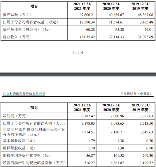 8月19日,北京科净源科技股份有限公司递交初次公开辟行股票招股阐明书申报稿。据此,该公司拟冲刺厚交所创业板IPO上市,公司初次公开辟行新股数量不高出1714.28万股,公开辟行股票的总量占公司发行后总股本的比例不低于25%,全部为发行新股,发行人原股东在本次发行中不公开辟售股份。 公司本次拟投资项目的投资总额为9.81亿元,拟投入募资8.88亿元,重要募投项目分别是北京科净源总部基地项目、深圳生态环保财产基地创建项目、昆明市科净源生产水处置惩罚专业装备项目以及增补活动资金。 招股书表现,北京科净源科技股份有限公司是一家专业从事水情况体系管理的创新型综合服务商,围绕客户对水情况管理的需求,为其提供水处置惩罚产物、水情况综合管理方案和运营服务。2019年、2020年、2021年,该公司实现业务收入分别是3.11亿元、3.21亿元、4.80亿元,同期实现归属于母公司全部者的净利润分别是3513.50万元、7083.65万元、9198.05万元。 |