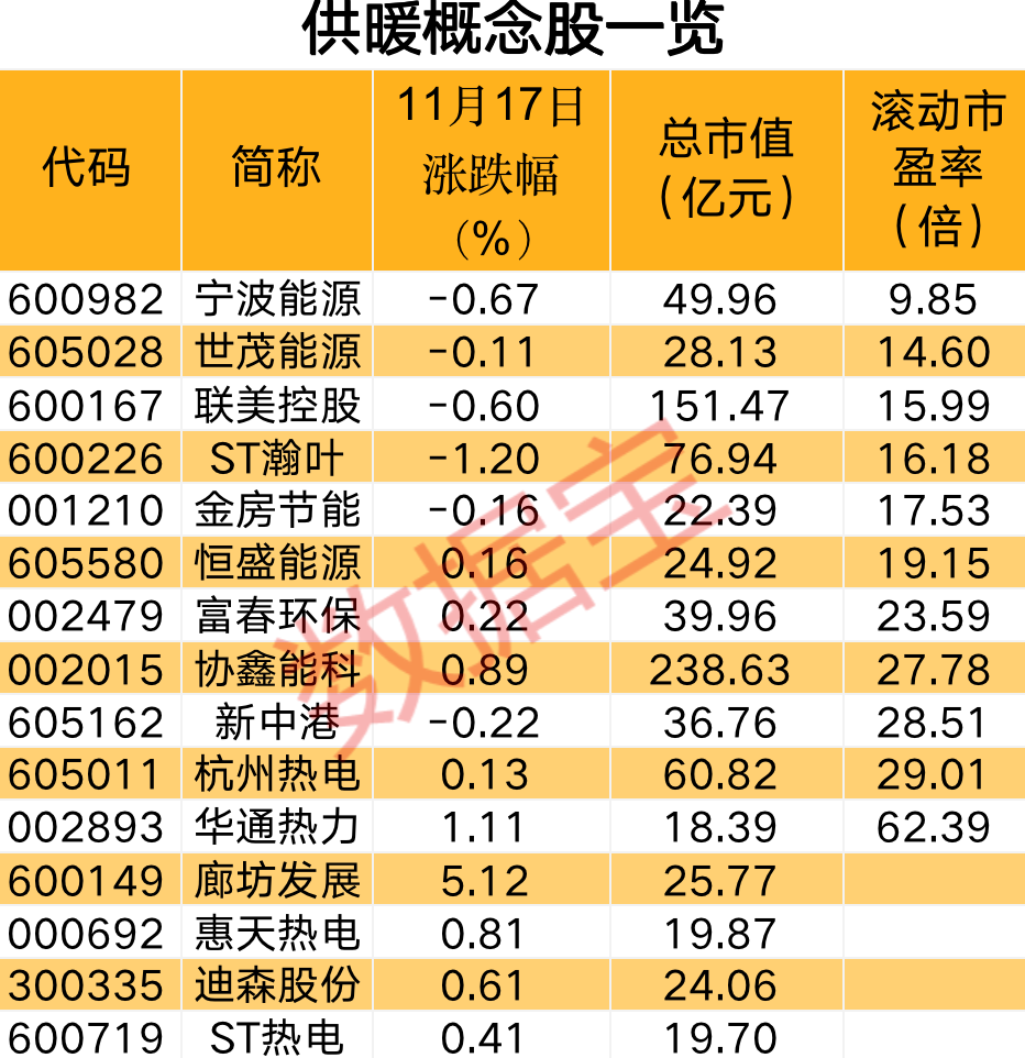 数据是个宝 数据宝 炒股少烦恼 北方地区已全面进入供暖季。 11月16日,发改委召开消息发布会体现,北方地区已经全面进入供暖季,今冬供暖季我国天然气资源供应总体上是有保障的,高峰时段、部分地区受连续严寒气候等影响大概会出现供需偏紧环境。 近期,我国北方多地已率先开启供暖。11月1日,辽宁省进入2022年供暖季,同日,宁夏银川市正式进入全墟市中供暖期。别的,受寒潮影响,多地供暖工作较原筹划提前实验。11月9日石家庄发布消息,提前5天于11月10日零时全市正式启动供暖工作。北京市在大风强降温气候影响下2022-2023年采暖季正式供热时间提前至11月13日0时。 干净供暖获市场关注 在碳中和期间配景下,干净供暖获政策多次重点夸大。《“十四五”新型城镇化实验方案》中夸大,有序引导以电代煤、以气代煤,因地制宜推广热电联产等多种干净供暖方式。《吉林省碳达峰实验方案》印发,夸大连续推进农村地区干净取温暖,构建以电采暖、生物质地区锅炉等为主的干净供暖体系。 本年以来,各种类干净供暖得到了快速发展。11月1日位于中国东北部的辽宁红沿河核电站核能供暖树模项目正式投运供热,据测算,项目投运后每年将淘汰标煤斲丧5726吨,减排二氧化碳1.41万吨、烟尘209余吨、二氧化硫60余吨、氮氧化物85余吨、灰渣2621吨,将有效改善供暖地区大气环境。 根据生态环境部最新公布的数据,停止2021年底,我国北方地区共有2700多万户农村住民已使用电力、天然气、生物质等干净能源完成散煤替换,淘汰散煤斲丧量6000多万吨,在改造地区取得了显着的环境和康健效益。此中,使用生物质能采暖的用户凌驾200万户,秸秆打捆直燃锅炉供热工程近300处,供暖面积达800余万平方米,发挥了很好的生物质干净供暖树模作用。 供暖概念股仅15只 证券时报·数据宝统计,A股中主业务务供暖的概念股较为稀缺,仅15只。11月17日9只概念股上涨,廊坊发展、华通热力、协鑫能科涨幅居前,分别上涨5.12%、1.11%、0.89%。 概念股中,本周获北上资金净流入的个股仅1只。联美控股近期发布干净能源供热路径新突破获资金关注,北上资金一连3天持股量上升,合计净买入72.3万股。 11月16日,联美控股子公司烟气余热采取使用项目正式投产,项目采取“烟气余热深度采取装置+溴化锂吸取式热泵机组”的技能门路,是联美控股在热泵应用范畴的又一突破。该项目投产后,年烟气余热采取热量预计可达47万GJ以上,节省标煤2万吨,淘汰碳排放量约5万吨,节能减排效果显着。有市场人士以为,打造干净综合能源服务让联美控股在发展中体现出巨大的竞争上风,是供热行业中少数仍保持着较好红利程度的企业。供热企业的绿色发展空间巨大,行业内拥有技能和市场多重上风的龙头企业将来可期。 估值方面来看,供暖概念股广泛处于估值较低区间,滚动市盈率中位数为19.15倍,显着低于全部A股的中位数33.96倍。此中宁波能源、世茂能源、联美控股等公司估值尚处于低位区,分别为9.85倍、14.6倍、15.99倍。 声明:数据宝全部资讯内容不构成投资发起,股市有风险,投资需审慎。 责编:谢伊岚 校对:王蔚 |