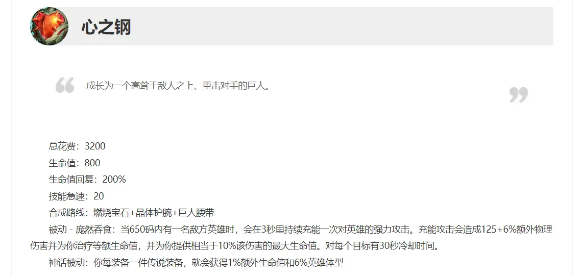 随着12.22版本的到来,豪杰同盟也正式踏入了S13赛季,在这一次的版本更新中,拳头将重心放在了资源和装备的改动上,野区炼金龙魂再次回归,同时增长也野怪阵亡的机制,而且添加了“宠物”玩法,这些改动也刹时影响到了野区豪杰的强度,而本次影响游戏最大的点,着实并非野区的调解,而是坦克神话装备的改动。 在新版本,日炎、炼金罐这两件神话级别的装备,都被下调至传说的层级,筹划师为坦克豪杰,新增了千变者贾修、辉耀美德、心之钢三件神话装备,取代两件的同时,算是又增长了一件坦克装,而新的坦克神话装备,也刹时让坦克豪杰的职位快速上升,兵士和坦克来到了平衡的一个阶段,但心之钢这件装备的强度,却是出现了严峻超模的征象。 心之钢成为新版本,首件必削装备为什么说这件装备超模呢?先来看一下装备的属性,根本属性方面,这件装备提供了800点的生命,200%的根本生命复兴,同时附带20%的减CD,单看属性,着实和狂徒铠甲没什么区别,都是不具备抗性只提供高额血量的装备,但作为神话装,心之钢的被动就非常离谱了,无上限发展不停都是LOL非常强盛的机制,这件装备让全部豪杰,都可以无上限发展。 心之钢的神话被动,每一件传说级装备可以得到1%生命值提升,同时增大6%的体型,这个神话被动效果着实并不是很强,但唯一被动就离谱了,在700范围内的豪杰造成伤害时,会有126+6%最大生命值的额外伤害加成,而且该伤害的10%,会转化为永世生命值,固然每个豪杰有30秒的CD,但这件装备的提供的血量发展是没有上限的,可以无穷叠加生命值。 LOL踏入人均万血期间无上限叠加,本身就好坏常强盛的机制,在LOL也只有少部分豪杰拥有,但心之钢的出现,让LOL全部豪杰,都有了无上限发展的本事,也就相当于出了这件装备之后,人均得到了一个大虫子的大招,只要游戏时间富足长,层数叠加得富足高,血量突破一万也不是什么难事,而血量的增长,同时装备的额外伤害也会提升,这才是这件装备最BUG的地方。 不外纯血量的属性加成,就决定了这件装备在有抗性之后,才会显现出比力好的坦度,而且被的额外伤害,在前期并不会特变高,只有生命值渐渐增长之后,伤害才会比力可观,但高血量搭配上巨型九头蛇如许装备,收益还是很不错的,比如大乱斗的肉装蛮王,选择如许的装备组合,就会表现得特别强势,不外在正常模式中,这件装备强度并没有很浮夸。 心之钢的准确利用方法心之钢这件装备固然强,但现在有些被过分神话了,由于装备只是提供纯粹的生命值,在遇到百分比伤害大概装备的时间,坦度都是卖弄的,比如剑姬的被动、VN的三环、大概是破败这种装备,都有百分比伤害,血量越高,受到的伤害也同样会变得越高,以是在没有抗性加成的根本上,这件装备的强度并没有想象中那么浮夸,而且生命值叠加,也没那么简朴。 叠加生命值的条件是:可以或许打到对手,在对线期这个阶段,假如是短手且没有位移的坦克豪杰,想要触发这个生命值叠加效果,着实是须要换血的,但直接做心之钢,在纯血量属性的情况下,坦度并没有想象中那么高,除非是坦克互殴,否则对线兵士着实是很容易崩盘的,因此这件装备,是更加契合兵士大概有位移的坦克豪杰的,另有卡尔玛这种长手毒瘤上单。 结语:这件装备现在表现最好的模式,是在大乱斗内里,由于出门既团战的方式,让心之钢的叠加变得非常简朴,快节奏的模式和经济增长速率,很多兵士大概坦克豪杰,都可以靠着这件装备,无穷叠加生命值,突破万血也是比力简朴的,不外正常的模式中,心之钢的强度并没有特别离谱,不外大乱斗太过优秀的表现,肯定会让这件装备遭到削弱的。 对于心之钢这件装备,你们怎么看呢? 欢迎留言讨论! |