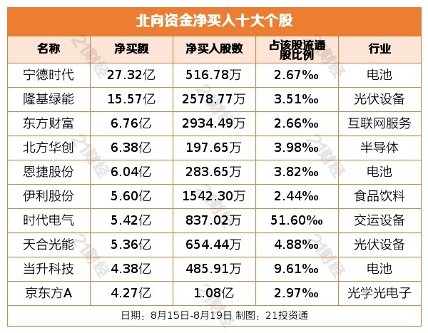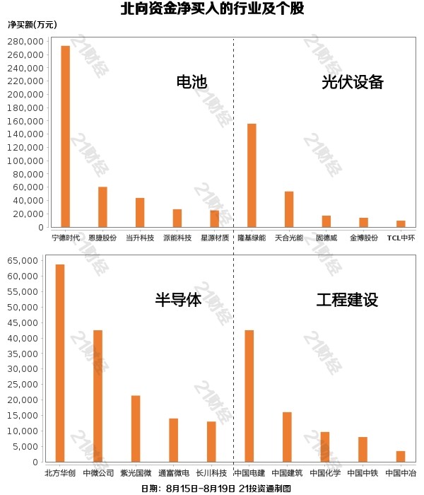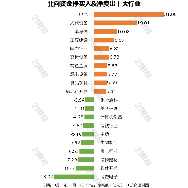已往一周,A股三大指数涨跌不一,沪指周跌0.57%,深成指周跌0.49%,创业板指周涨1.61%。 增持电池,减持斲丧电子 从净买入金额来看,北向资金增持了58个行业,此中电池居首,净买入金额达31.08亿元,其次是光伏装备行业,净买入19.01亿元。 北向资金减持了42个行业,此中斲丧电子最多,净卖出金额达18.07亿元,其次是软件开发行业,净卖出8.27亿元。 净买入宁德期间27.32亿元,净卖出特变电工5.63亿元 个股方面,北向资金净买入宁德期间(300750.SZ)、隆基绿能(601012.SH)、东方财产(300059.SZ)、北方华创(002371.SZ)、恩捷股份(002812.SZ)居前,此中,宁德期间被净买入27.32亿元,隆基绿能被净买入15.57亿元,东方财产被净买入6.76亿元,北方华创被净买入6.38亿元,恩捷股份被净买入6.04亿元。 北向资金净卖出特变电工(600089.SH)、蓝思科技(300433.SZ)、通威股份(600438.SH)、国轩高科(002074.SZ)、立讯细密(002475.SZ)居前,此中,特变电工被净卖出5.63亿元,蓝思科技被净卖出5.04亿元,通威股份被净卖出5.04亿元,国轩高科被净卖出4.91亿元,立讯细密被净卖出4.85亿元。 (声明:文章内容仅供参考,不构成投资发起。投资者据此利用,风险自担。) |