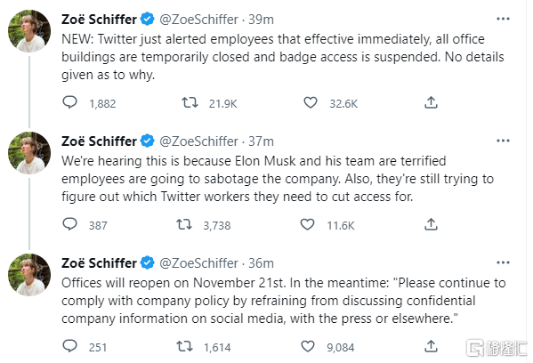 此前,推特新老板马斯克向员工发出末了通牒,要求员工要么“长时间高强度”干活,要么滚蛋。 但该言论引发员工不满,据媒体估计,将有数百名推特员工将离开推特,这大概会使Twitter的运营面对风险。 由于选择去职的人超出了马斯克的预期,导致他不得不说服一些人留下来。据悉,思量去职的员工中还包罗一些“关键”员工,马斯克正在访问他们,试图说服他们留下来。 别的,由于马斯克的此次决定影响过于巨大,有媒体编辑在推特上表现,推特告知其员工全部办公室临时关闭,将于11月21日重新开放,而且停息了员工的辨认证访问权限,该步伐已经见效。 固然马斯克接受推特以后,不停在举行职员调解,但他所接纳的步伐似乎越来越激进。 此前的16日,马斯克给推特员工发了一封电子邮件,表现:“未来,要打造一个突破性的推特2.0,并在竞争日益剧烈的天下中取得乐成,我们须要非常刚强。这将意味着长时间高强度工作。只有精良的表现才算及格。” 邮件要求员工如果想留下来,请点击“是”。邮件称,那些在东部时间17日下战书5点之前没有复兴的人将被视为辞职,并得到三个月的驱逐费。 固然现在尚不清晰有多少员工选择留下来,但种种迹象表明推特的文化正在改变,变得夸大长时间和告急的节奏。 除了工作时间和强度,马斯克与推特员工的辩说还在于远程工作。新冠以来,很多公司接纳线上办公方式,但马斯克却极其讨厌这种方式。 早在本年5月尾,马斯克就曾发布了两封备忘录要求“特斯拉员工必须每周至少在办公室工作40小时”,如果员工不担当,就意味着主动辞职。 而对推特员工,马斯克此前也曾在邮件中表现,将不再允许远程工作,员工每周至少要在办公室呆 40 个小时,除非有他本人同意的破例情况。 不外在16日的邮件中,马斯克的态度似乎有所软化。马斯克写道,关于远程工作,须要答应的只是你们的司理负责确保你们做出出色的贡献。我们还渴望你们能以公道的节奏与同事举行面对面的交换,最好是每周一次,但每月不少于一次。 除了内部抵牾,马斯克还面对外部压力。据一位不肯透露姓名的人士透露,美国当局正在寻求有关马斯克收购Twitter后与持有该公司股份的外国投资者告竣的保密协议的信息,以及这些协议是否允许他们访问用户的个人数据。 就在几天前,美国总统拜登表现,马斯克的贸易优点和与外国当局的接洽须要检察。 广告主停息投放广告、大规模裁人、蓝“V”认证推行失败......马斯克接受推特以后,推特并没有变得更好,反而越来越失控。接下来,马斯克如果不能尽快做出调解,推特大概面对更糟糕的处境。 |