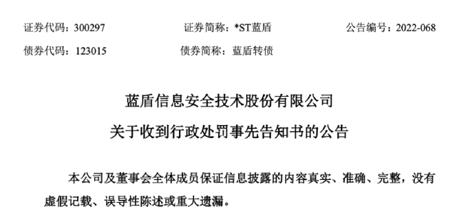 见习记者 王佳霖 *ST蓝盾发布公告称,于2022年8月18日正式收到广东羁系局的行政处罚决定书。 公告表现,蓝盾股份子公司中经电商于2017年至2019年期间,通过伪造大量客户和商户的业务条约、业务对账单、询证函回函等,在自主开辟的汇生存体系、EPAY体系上捏造发码数据和消耗数据等方式,虚增业务收入和利润。 具体来看,中经电商2017年、2018年、2019年分别虚增业务收入1.38亿元、1.65亿元、0.79亿元,占蓝盾股份当期披露业务收入的6.22%、7.22%、4.12%;分别虚增利润总额1.38亿元、1.65亿元、0.79亿元,占蓝盾股份当期披露利润总额的26.79%、33.74%、8.33%。 据此,蓝盾信息安全技能股份有限公司被处以罚款350万元;涉事15位职员共计被处以1170万罚款。 或因此前已收到行政处罚事先告知书,*ST蓝盾的股价并未受到太大影响。8月19日,*ST蓝盾股价报收2.48元,单日涨幅为6.44%。 伪造业务条约、对账单、询证函回函等 虚增业务收入和利润 天眼查表现,中经电商为蓝盾股份的子公司;蓝盾股份持有中经电商100%股权。 公开资料表现,中经汇通电子商务有限公司是中国唯一油品终端市场综合服务的提供商,是唯逐一家为车队及个人客户提供油品终端市场的物流、资金流和信息流的完备供应链管理的当代服务品牌企业。总部设在广州,在福建、上海、武汉等地设有分公司。 证监会处罚决定书表现,中经电商于2017年至2019年期间,通过伪造大量客户和商户的业务条约、业务对账单、询证函回函等,在自主开辟的汇生存体系、EPAY体系上捏造发码数据和消耗数据等方式,虚增业务收入和利润。 一方面,中经电商捏造与6家保险公司的业务数据。2018年至2019年期间,中经电商通过伪造业务条约、电子券码业务采购订单、业务审批表等方式,捏造与中国人民产业保险股份有限公司广州市分公司、中国沉寂洋产业保险股份有限公司东莞分公司、中华团结产业保险股份有限公司广东分公司、中国人寿产业保险股份有限公司广东省分公司、中国安全产业保险股份有限公司广东分公司、中国大地产业保险股份有限公司广东分公司等6家保险机构的电子券码业务及相干的发码数据、消耗数据和已逾期未消耗数据。 经核算,2018年虚增业务收入和虚增利润总额均为1.04亿元;2019年虚增业务收入和利润总额均为0.44亿。 另一方面,中经电商伪造与石油公司和航空公司的业务条约、业务对账单等。2017年至2019年期间,中经电商通过伪造与中油碧辟石油有限公司《优惠代价确认书》、业务对账单等协议文件,虚增佣金收入、利润;捏造广州白云航空服务有限公司、中海油贩卖汕头有限公司、中国石化贩卖股份有限公司广东广州石油分公司、中国石化贩卖股份有限公司广东汕尾石油分公司为其互助商户,通过伪造业务条约、业务对账单等文件,捏造返利佣金数据和油品消耗数据。 经核算,2017年虚增业务收入和虚增利润总额均为1.37亿元;2018年虚增业务收入和虚增利润总额均为0.60亿元;2019年虚增业务收入和利润总额均为0.35亿元。 综上,中经电商2017年、2018年、2019年分别虚增业务收入1.38亿元、1.65亿元、0.79亿元,占蓝盾股份当期披露业务收入的6.22%、7.22%、4.12%;分别虚增利润总额1.38亿元、1.65亿元、0.79亿元,占蓝盾股份当期披露利润总额的26.79%、33.74%、8.33%。 东窗事发 遭证监会存案观察 2021年12月29日,蓝盾股份收到中国证券监视管理委员会《存案告知书》。因公司涉嫌信息披露违法违规,根据《中华人民共和国证券法》《中华人民共和国行政处罚法》等法律法规,中国证监会决定对公司存案。 2022年5月27日,存案观察期间,公司控股股东柯宗庆、柯宗贵持有的股份被司法逼迫拍卖,被厚交所转达品评。 具体来看柯宗庆、柯宗贵所持蓝盾股份1,745.3397万股、1,913.9996万股股份被司法逼迫拍卖,成交金额分别为6,143.6万元、6,737.3万元,占蓝盾股份总股本的比例为1.4%、1.53%。上述股份于2022年2月7日完成过户。 2022年7月6日,蓝盾股份收到广东羁系局下发的《行政处罚事先告知书》。 值得一提的是,行政处罚事先告知书与正式的行政处罚,略有收支。 具体来看,事先告知书中有两位高管被处以10万元罚款;但在正式处罚中,两位高管并未受随处罚。他们分别为蓝盾股份时任董事会秘书、副总裁兼任中经电商董事李德桂,和蓝盾股份时任财务总监、副总裁魏树华。 蓝盾股份被罚350万 15位相干职员共计被罚1170万 由于中经电商虚增业务利润和业务收入,蓝盾股份公开披露的2017年、2018年和2019年年度陈诉存在矫饰纪录,有关举动违背了2005年《证券法》。据此,广东证监局对蓝盾股份和15位涉事职员处以罚款:蓝盾股份被罚350万,15位相干职员累计被罚1170万。 被罚最多的为柯宗耀,罚款高达200万元。柯宗耀为中经电商时任董事长,构造安排相干职员通过捏造电子券码业务、加油站互助业务等方式实验财务造假。 前述被厚交所转达品评的柯宗庆和柯宗贵,均被罚150万元。柯宗庆作为蓝盾股份时任董事长,柯宗贵作为蓝盾股份时任副董事长、总司理,兼任中经电商董事,未勤勉尽责,是蓝盾股份2017年、2018年和2019年年度陈诉存在矫饰纪录的直接负责的主管职员。 郑燕被罚款100万元。作为中经电商时任管帐机构负责人、财务中心总监,郑燕知悉并直接到场中经电商财务造假。 蓝盾股份时任董事赵庆伦,和蓝盾股份时任财务总监,均为该变乱其