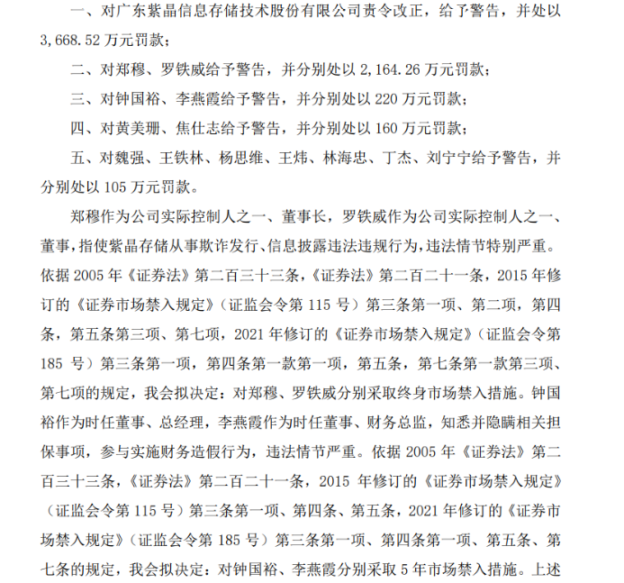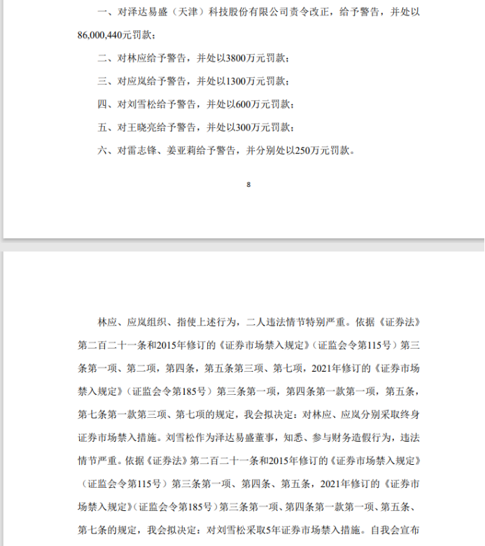 11月18日晚,泽达易盛(688555)、*ST紫晶(688086)分别披露《关于收到行政处罚及市场禁入事先告知书的公告》。根据《告知书》认定环境,两家公司将来大概被实验巨大违法欺压退市。 泽达易盛和*ST紫晶将在11月21日停牌一天,11月22日复牌,此中泽达易盛自复牌之日实验退市风险警示,证券简称“泽达易盛”变更为“*ST 泽达”,*ST紫晶继续实验退市风险警示。 分析人士体现,证监会对两家公司的行政处罚和上交所对公司予以“退市风险警示”的处置处罚,彰显了羁系机构对诓骗发行等巨大违法举动的“零容忍”态度,和切实维护投资者优点、进步上市公司质量的刻意。 重要责任人被采取证券市场禁入步伐 根据公告内容,泽达易盛《2020年年度陈诉》《2021年年度陈诉》存在虚伪记载、巨大遗漏等,构成《证券法》第一百八十一条第一款、第一百九十七条第二款规定的“发行人在其公告的证券发行文件中遮盖告急究竟大概编造巨大虚伪内容”、“信息披露任务人报送的陈诉大概披露的信息有虚伪记载、误导性陈诉大概巨大遗漏”的违法举动,证监会拟对公司及相干责任人做出责令改正、告诫、罚款等行政处罚,并对重要责任人采取证券市场禁入步伐。 《告知书》体现,泽达易盛通过公司或全资子公司浙江金淳、苏州泽达签署虚伪条约、开展虚伪业务等方式,2016-2019年累计虚增业务收入34.23亿元,虚增利润1.87亿元。在上市后,泽达易盛继续通过财务造假虚增业务收入,2020年—2021年累计虚增业务收入2.23亿元,虚增利润1.09亿元。该公司同时存在《招股分析书》、定期陈诉未按规定如实披露关联交易业务、未按规定如实披露股权代持环境。 根据公告内容,*ST紫晶因公司涉嫌诓骗发行、信息披露违法违规,《招股分析书》虚增业务收入和利润、未按规定披露对外包管,构成违背2005年《证券法》第一百八十九条第一款所述的违法举动,证监会拟对公司及相干责任人做出责令改正、告诫、罚款等行政处罚,并对重要责任人采取证券市场禁入步伐。 《告知书》体现,*ST紫晶长期通过深圳宇维、深圳富宏华、南京叠嘉等单位假造贩卖条约、伪造物流票据和验收票据入账,《招股分析书》虚增业务收入、利润,在上市后,继续通过前述财务造假方式虚增业务收入,2017年—2020年累计虚增业务收入7.66亿元,虚增利润3.76亿元。别的,公司同时存在《招股分析书》、定期陈诉未按规定如实披露对外包管环境。 上交所将立刻启动相应的规律处分流程 上交所相干负责人体现,针对泽达易盛、*ST紫晶《行政处罚及市场禁入事先告知书》展现的违法违规事项,上交所将立刻启动相应的规律处分流程。后续,上交所将一连关注行政处罚盼望,并将根据处罚效果和退市规则,启动巨大违法欺压退市相干流程。 11月18日晚,泽达易盛和*ST紫晶均发布《关于公司股票大概被实验巨大违法欺压退市的第一次风险提示公告》。根据上市规则,上市公司股票被实验退市风险警示期间,公司应当每5个交易业务日披露一次相干事项盼望,并就公司股票大概被实验巨大违法欺压退市举行风险提示。 记者梳剃头现,泽达易盛和*ST紫晶上市以来,已多次收到上交所发出的羁系翰札。此中,上交所先后对泽达易盛发出4份羁系翰札,并对该公司相干责任职员、一连督导保荐代表人等予以规律处分或羁系步伐。 在*ST紫晶上市首年即2020年年报被立信管帐师变乱所出具生存意见后,上交所高度关注“非标”审计意见事项,就告急管帐科目、业务模式变革、预付款子变革等进一步问询,分别就公司2020年年报生存意见、2020年年报及2021年半年报3次发出问询函。2021年4月以来,对*ST紫晶2020年年报、2021年半年报、2021年年报、2022年半年报、2022年三季报,发出问询函及羁系工作函10余份,一连紧盯公司风险事项,发掘信息披露疑点。自2022年2月被证监会备案后,公司违规包管、资金划扣、投资者诉讼等风险接连发作,上交所均在第一时间发函问询,督促公司核实相知趣干环境,明白羁系要求。 别的,针对与泽达易盛举行相干交易业务的上市公司,上交所已发出《规范运作发起书》,督促公司严厉自查,并按照规定追究相干职员责任。 对诓骗发行等巨大违法举动“零容忍” *ST紫晶、泽达易盛分别于2020年2月、2020年6月上市,上市均未满三年,即因涉嫌诓骗发行等巨大违法违规举动触及退市风险警示,将来还大概被实验巨大违法欺压退市。 分析人士指出,本次证监会对公司的行政处罚和上交所对公司予以“退市风险警示”的处置处罚,彰显了羁系机构对诓骗发行等巨大违法举动的“零容忍”态度,和切实维护投资者优点、进步上市公司质量的刻意。 市场人士指出,注册制下发行上市制度的包涵性决不意味着放松羁系,发行人不能心存荣幸,计划通过财务造假等本领“闯关”。对存在诓骗发行等巨大违法举动的公司,羁系一定会重拳出击,依法依规欺压其退市,这对于营造优胜劣汰的市场环境,保障科创板长期康健发展具有告急意义。 上交全部关负责人夸大,上交所将继续贯彻“建制度、不干预、零容忍”方针和注册制改革“三原则”,切实推行一线羁系职责,依法从严从快打击诓骗发行等违法违规举动,切实掩护投资者正当权益,维护资源市场康健发展秩序。 责编:万健祎 校对:祝甜婷 版权声明 王锦程 证券时报各平台全部原创内容,未经书面授权,任