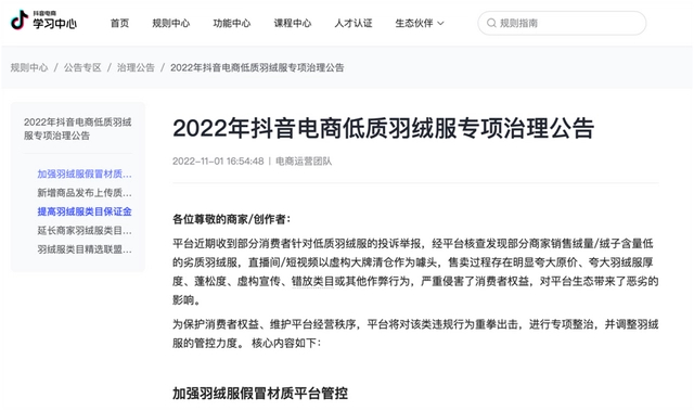 本文泉源:期间周报 作者:叶曼至 “1号链接的这件羽绒服,原价卖200多,如今清仓仅售89元!”立冬节气这天,某羽绒服商户直播间里,一名女主播正拿着一件蓝色的短款羽绒服,认真吆喝带货。 该名主播在直播间表现,之以是低价抛售,是由于这一批次原来标注为90绒的羽绒服,不再符合本年新出台的羽绒服新国标与抖音新规,为了清仓只好甩卖。 11月,抖音出台了专项管理低质羽绒服的规则(下称“抖音羽绒服规则”),不再答应平台商户售卖50%以下绒子含量的成衣,要求羽绒服品类商品发布须上传真实有用的商风致检陈诉(包罗材质或成衣质检),此中50绒(即含绒量/绒子含量为50%)羽绒服必须上传成衣质检陈诉,并将谋划羽绒服品类企业店/个体店包管金调解至5万元。 图源:抖音电商学习中央 早在抖音之前,本年4月1日,GB/T 14272-2021《羽绒服装》(下称“新国标”)开始实验,将羽绒服中标识的“含绒量”修改为“绒子含量”,明确绒子含量昭示值不低于50%的才算是羽绒服。并对羽绒服中的绒丝和羽丝含量有了限定。 羽绒服成重点规范产物,这也意味着,部分商户在新规出台宿世产囤积、操持高价出售的羽绒服不再达标。11月17日,多名羽绒服厂商向期间周报记者表现,如今正想办法将手上的羽绒服批量清仓,只求回本。 不外,着名品牌受新国标影响不大。11月18日晚,波司登相干负责人向期间周报记者表现:“10月31日至11月11日期间,波司登在天猫平台的贩卖额位列女装品类第一,男装品类第二,并成为天猫服饰行业唯一贩卖额破亿直播间。同期,波司登在京东平台的女装、男装品类均列第一;在唯品会女装品类位列贩卖额第一;在抖音也取得了贩卖额破亿的佳绩。” 飞瓜数据表现,双十一期间,羽绒服品牌鸭鸭在抖音全品类品牌榜(按全平台付出GMV分列中排行)第五名,服饰品牌榜第一名,线上全渠道品牌GMV超10亿元。 羽绒服市场正进一步拉开差距。 图源:图虫创意 气候不冷,市场冷 陈冉(化名)是一名主营羽绒服的抖音东家,开店已有3年。本年,是她买卖最难做的一年。 起首是大部分人感受到的,本年入冬痴钝,这大大影响羽绒服的销量。 陈冉表现,往年除了四序如“夏”的华南地区,其他地区到了11月份温度已经非常低,但从本年的气温来看,寒冷好像来得有些迟缓,羽绒服的需求也大大减弱。 “许多原来应该要下雪的都会,到了如今还可以穿着薄薄的卫衣出行,搭件外套都以为热,更不要说穿羽绒服了。”她说道。 更关键的是,新国标与抖音羽绒服规则双重限定后,个体小商户的羽绒服的算盘不太好打了。 客岁7月,陈冉从本地厂家手里一次性低价囤购了高出5万件含绒量为90的羽绒服,计划在本年11月份以高价出售。 但如今,她原来的贩卖操持被通盘打乱。 “新国标之后,全部羽绒服都要标注绒子含量,我手头的这一批次照旧按照老规定那样标的含绒量,许多客人会以为如许的羽绒服是次品。而且由于羽绒服标准变了,客岁照旧90绒的羽绒服,由于绒子含量没有到达新标,本年重新拿去做质检发现绒含量变成85%,如果放在抖音上卖,就不能叫做90绒了。”陈冉表现,这就意味着,羽绒服代价缩水了,只能低价跑量。 从事服装行业高出20年的业内人士许婷(化名)告诉期间周报记者,按照羽绒服的生产标准,含绒量中席卷了朵绒、类似绒、未成熟绒、损伤绒与绒丝和羽丝,而绒子含量与含绒量最大的区别,便是此中不包罗绒丝与羽丝。 朵绒、类似绒、未成熟绒是羽绒服可以大概实现保暖的重要用料,此中朵绒保暖效果最好;而绒丝羽丝实则是在羽绒服生产加工环节中的废料,不具备保暖效果,且容易导致羽绒服钻绒。 图源:图虫创意 “一件羽绒服能不能保暖,关键实在照旧得看绒子含量,绒子含量越高就越保暖。”许婷表明道。 同样受影响的,尚有在广州番禺的生产厂商冯祥(化名)。每年11月份起,羽绒服进入进货旺季,但在本年新国标的要求下,羽绒服绒子含量较之前增多,生产资本随之增大。 “绒子含量中像朵绒、类似绒的造价会贵一些。比起客岁,本年一件羽绒服的生产资本最少高了10%。”冯祥透露道。 造价贵,资本高,进货价也随之上涨。冯祥表现,以往许多商户在这个时段把客岁囤的货卖完后,还会到他厂里进新货,但本年许多商户都在做低价清仓,亏本买卖业务,来进货的商户比去幼年了一半。“本年气候不冷,但市场却很冷。”冯祥说道。 不外,现在,仅有抖音出台羽绒服贩卖规则,其他电商平台与线下市肆尚未有详细限定,相对而言影响较小。 但多名电商平台羽绒服商户向期间周报记者透露,不少消耗者已经知悉羽绒服新国标,消耗者市场教诲根本覆盖。比如,仅标注“含绒量”的羽绒服,已经无法如客岁一样寻常卖出高价。 “有顾客会来问,为什么商品详情页面上没有标注绒子含量的数据,是不是伪劣产物?我们照旧只能把代价压下来,清掉这些货。”某电商平台羽绒服商家向期间周报记者直言,“想要瞎搅消耗者,根本不大概了。” 着名品牌越卖越贵 只管个体厂商的羽绒服买卖受影响,但新国标对于行业的推进具有正向意义。 “相比旧国标,新国标最大的厘革有三点,一是用‘绒子含量’代替了‘含绒量’,意味着羽绒风致更好了;二是羽绒服防止跑毛的本事更强了;三是羽绒服更好洗了。”波司登相干负责人向期间周报记者评价道。 许婷也指出,在新国标标准下,羽绒服售价大概将会更高,