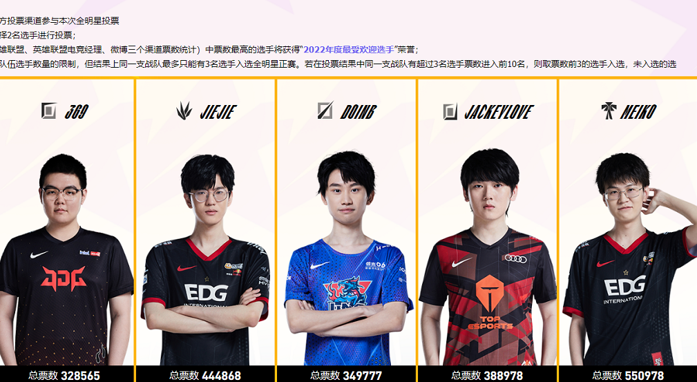 时至11月19日,对于热爱LPL赛事的玩家而言,11月下旬绝不枯燥,除了充满牵挂和话题度的2022LPL冬季转会期,另有竞逐剧烈的LPL全明星票选活动,多位LPL明星选手、官方讲授、主持人呼声居高不下,有望在12月开启的2022LPL全明星盛典捧杯,此中就有LOL天下冠军上单Theshy、缺席夏日赛的小狗Uzi、冠军中单Rookie、全能讲授管泽元,以及主持人余霜、小钰等等,好戏才刚开始。 纵观力气出众的LPL赛区,力气与人气兼具的一流选手不在少数,坐镇WBG上路的Theshy姜承録便是此中之一,加盟IG后,Theshy跟随队伍在S8环球总决赛大放异彩,接连击败KT、G2、FNC,捧起好汉同盟范畴最具含金量的LOL召唤师杯。 踏足天下赛,Theshy敢打敢拼,刀妹、杰斯、剑魔全部上演名局面,依附精致的利用和极具观赏性的赛场表现,Theshy成为了很多粉丝心中的最强上单,没有之一。 同样呼声高涨的LPL顶尖选手另有小狗Uzi,顶峰时期的Uzi极具打击性,多次共同小明在对线期打开局面,助RNG连夺LPL银龙杯、Msi金杯,而且摘得亚运会LOL演出赛金牌。 遗憾的是出道至今,Uzi未能在LOL环球总决赛取得好效果,回顾S12赛季,退役许久的Uzi公布复出,想要为S赛冠军再战一年,即便未能取得理想的效果,粉丝也盼望在LPL全明星盛典的舞台上,看到Uzi披挂上阵的身影。 据好汉同盟官方讲授,LPL全明星投票活动在11月23日下战书2点正式竣事,现在LPL全明星投票通道即将关闭,正赛阵容根本确定,可以看到Theshy姜承録总票数高出131万,傲居榜首,别的四位选手分别是RNG野王Wei、V5主力中单Rookie、前BLG下路小狗Uzi,以及前文提及的RNG小明。 在“掌盟”、WB票数全部领先的环境下,小狗Uzi为何屈居次席?对比Theshy、Uzi的票数布局,可以清楚地看到Theshy在“电竞司理端”的得票远超小狗Uzi,这是后者无缘榜首的直接缘故原由。 再看第二顺位,五个位置排名第二的LPL顶级选手包罗JDG上单369、EDG野王Jiejie、LNG主力中单Doinb、TES阿水Jackeylove,以及EDG队长兼主力辅助Meiko,在打野和辅助位置上,第一顺位选手、第二顺位选手之间的票数差距较小,留有牵挂。 末了看到的是LPL年度最受接待讲授、主持人评比,客观来说LPL年度最佳讲授已经失去牵挂,管泽元总票数突破100万,远超位居次席的LPL名流堂讲授米勒;另一边余霜、小钰难分伯仲,票数非常靠近。 正云云前所言,Theshy、小狗Uzi个人本事出众,且职业生存留下了太多高光时候,是2022LPL年度最受接待选手的有力图夺者,临时落伍的Uzi仍然有反超的大概性;另一边管泽元业务本事在线,且多栖发展,用临场表现赢得了万千LOL召唤师的认可,一骑绝尘也在情理之中。现在票选通道关闭在即,谁是你心中的年度最受接待选手、讲授、主持人? |