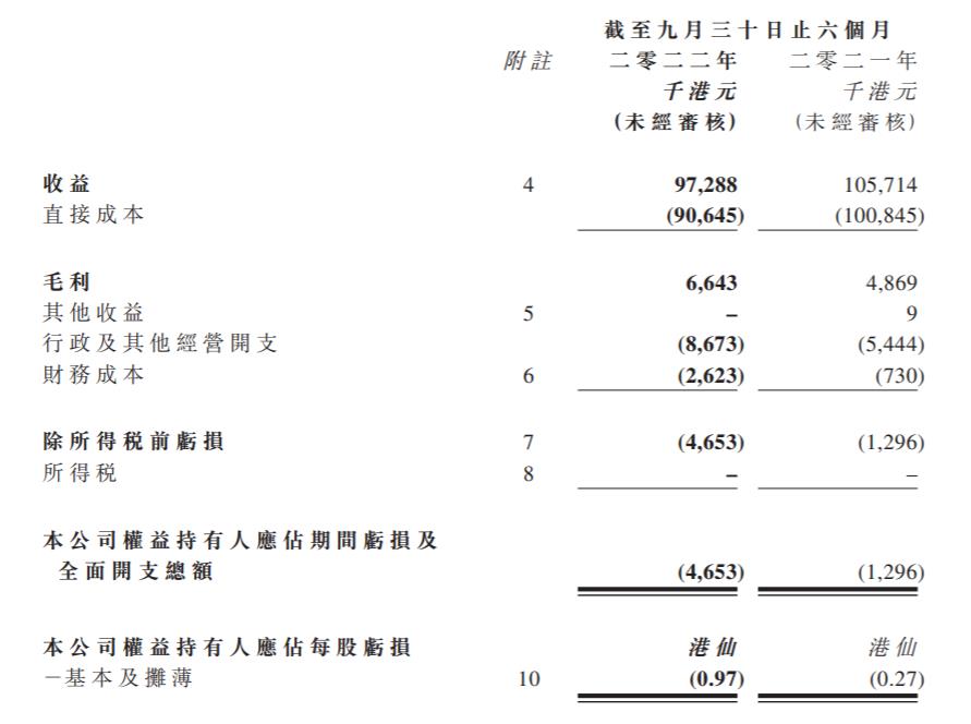 2022年11月18日,耀高控股(01796.HK)公告停止二零二二年九月三十日止六个月中期业绩。 团体于停止二零二二年九月三十日止六个月之收益约为97.3百万港元(停止二零二一年九月三十日止六个月:约105.7百万港元)。有关镌汰紧张可归因于市场上的大型项目数目镌汰。 于停止二零二二年九月三十日止六个月之毛利率约为6.8%(停止二零二一年九月三十日止六个月:约4.6%)。 团体于停止二零二二年九月三十日止六个月之除所得税前亏损约为4.7百万港元(停止二零二一年九月三十日止六个月:约1.3百万港元)。 于停止二零二二年九月三十日止六个月,公司权益持有人应占亏损约为4.7百万港元(停止二零二一年九月三十日止六个月:约1.3百万港元)。 停止二零二二年九月三十日止六个月之每股根本及摊薄亏损约为0.97港仙(停止二零二一年九月三十日止六个月:约0.27港仙)。 董事会已决定不就停止二零二二年九月三十日止六个月宣派任何中期股息(停止二零二一年九月三十日止六个月:无)。 |