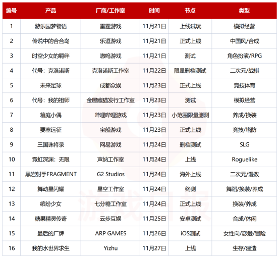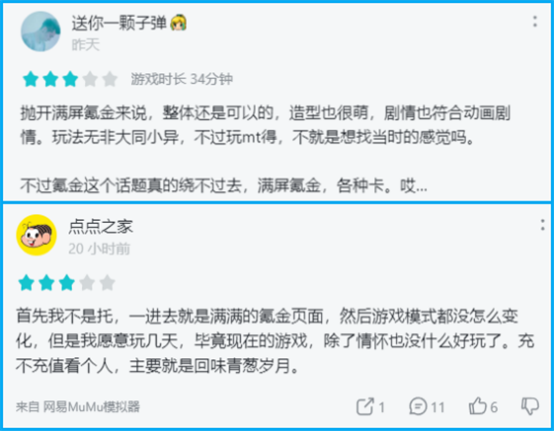 游戏观察是游戏日报打造的游戏产物综合分析栏目,内容聚焦于游戏市场体现和新游市场预期,团结亿级读者反馈,旨在为游戏行业提供更多元化、更真实、更有参考性的信息。如有发起或想分享的观点,接待接洽游戏日报。 iOS脱销榜TOP10榜单 本周(1113-1119)共计18款产物登上过iOS脱销榜TOP10,此中《王者光彩》《清静精英》《好汉同盟手游》《原神》《梦幻西游》《三国志·战略版》《捕鱼大作战》7款产物告竣在榜7天结果。 厂商方面,本周登上过iOS脱销榜TOP10的18款产物中,腾讯占据一半,总计9款产物入榜,网易2款,米哈游、灵犀互娱、海彼游戏、鹰角网络、途游、多益网络、龙图游戏均为一款。详细在榜环境如下: 相较于上周,本周iOS脱销榜TOP10产物数目处于持平状态,除了较为认识的产物之外,本周龙图游戏旗下新品《我叫MT:归来》,上线首日便进入iOS脱销榜TOP10,成为近一个月以来首款以“新品”身份进入TOP10的产物。 别的在本周之内,《QQ炫舞》《神武4》《嫡方舟》等多款游戏迎来告急节点,包罗但不限于开启新服,上线新运动等等,均助力各款产物在榜单上排名敏捷飙升,此中《QQ炫舞》以单日上升53位的结果,成为本周iOS脱销榜TOP10游戏中名次变革幅度最大的游戏。 本周核心游戏观察 龙图游戏-《我叫MT:归来》 11月17日,龙图游戏情怀IP改编新游《我叫MT:归来》正式上线。这款MT老IP加持的手游以养成+战略+卡牌的情势正式与玩家晤面后,在iOS渠道取得了不俗的结果。自正式上线后,产物登上iOS免费榜第一,稳固在iOS脱销榜TOP10,并在上线首日劳绩了iOS渠道单日预估450894美元的营收。 在买量方面,《我叫MT:归来》接纳了高抬高打的战略,据AppGrowing体现,产物广告创意素材以短视频为主,时长在31-60s的数目占全部素材的57%左右。投放平台多针对优量汇同盟以及腾讯消息、QQ音乐等平台,广告文案关键字以产物“我叫MT:归来”为主,“正版授权”、“回归”等关键词同样有着很大比重。 别的在营销宣发层面,《我叫MT:归来》上线前后接纳了多样的营销本领。除买量之外,产物约请了高热度艺人关晓彤作为代言人,试图通过代言人效应到达产物破圈流传的结果。别的,《我叫MT:归来》还与腾格尔相助制作了单曲《谁叫我是MT》作为游戏推广曲,此中该推广曲编曲甘虎,此前曾为《梦幻西游》提供多部编曲作品。 在微博平台,《我叫MT:归来》还与多位中级量级的Coser、二次元博主举行相助,约请他们为游戏举行宣传,助力干系话题在上线首日登上热搜榜,劳绩高出1200万阅读。团体而言,在营销宣发方面,《我叫MT:归来》涵盖了娱乐圈、音乐圈以及网络二次元圈用户,做了较为广泛的推广,对产物破圈运营起到了肯定助推作用。 用户批评方面,《我叫MT:归来》上线以来劳绩的评价驳倒不一。玩家对于产物对经典IP MT的还原度体现满足,部分玩家以为制作组注意意见,为贴近原IP反复修改美术风格。同时产物的休闲、放置玩法相比竞技类游戏更解压,对氪金/非氪金用户都比力友爱。 但也有部分用户以为,《我叫MT:归来》的付费充值项目较多,且各种弹窗诱导充充值的筹划略微影响体验,这也是大部分玩家给出较低评分的缘故原由。 总体而言,《我叫MT:归来》在对原IP的还原方面值得肯定,无论是游戏内的脚色建模照旧原汁原味的方言、脚色口音还原都非常用心。而是否在后续对UI界面举行美满,显现出更自由的付费模式,优化游戏体验,是《我叫MT:归来》当下必要思量的题目。 本周核心变乱观察 70款游戏得到11月版号,腾讯网易各自再有劳绩 11月17日,国家消息出书署公布2022年11月网络游戏审批结果,本次共计有70款游戏产物过审,此中63款移动游戏,5款双端游戏(移动端与客户端),2款客户端游戏。 过审游戏中包罗网易游戏《大话西游:归来》、腾讯游戏《合金弹头:觉醒》、完善天下《迷失蔚蓝》、盛趣游戏《传奇天下无双》、小米互娱《无穷远征》、吉比特《捕梦猫》、网元圣唐《白荆回廊—古剑奇谭》、多益网络《幻唐志:侠心》、莉莉丝《战火勋章》、螺舟工作室《太吾绘卷》等作品。 《好汉同盟》多位主播数据非常,官方脱手封号3年 克日,大量《好汉同盟》玩家举报在对局中遭遇外挂、脚本,范例不限于锁头、脚本、指针吸附等情势。在举报对象中,多名着名LOL主播在列。11月17日晚,针对此事《好汉同盟》官方账号发布了“游戏环境净化声明”,对已检测到存在违规举动的账号举行了封禁处理惩罚。公告发布后,干系话题先后登上微博、知乎热搜,在整个游戏范围内引发热烈反响,也可以看作是《好汉同盟》打击脚本、外挂的一次标记性变乱。 《原神》《幻塔》《暗黑粉碎神:不朽》入选TGA 2022最佳手机游戏提名 日前,TGA公布了2022各奖项提名。米哈游《原神》、完善天卑鄙戏《幻塔》、网易游戏《暗黑粉碎神:不朽》、旦夕光年《Marvel Snap》入选TGA 2022最佳手机游戏(最佳移动端游戏)提名。此中《原神》同时得到TGA 2022最佳运营游戏提名,是2020年游戏上线以来第三次得到TGA双提名。 下周(11.20-11.27)新游预告 下周预计有16款产物测试或上线,此中包罗雷霆游戏、乐逗游戏、哔哩哔哩游戏、网易游戏及宝船游戏新作。产物范例多样,包罗模拟谋划、合成休闲、二次元、女性向等多品类。 部分重点产物先容如下: 雷霆游戏- 《游乐土梦物语》 简介:《游乐土梦物语》是雷霆游