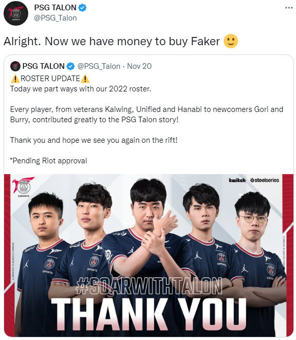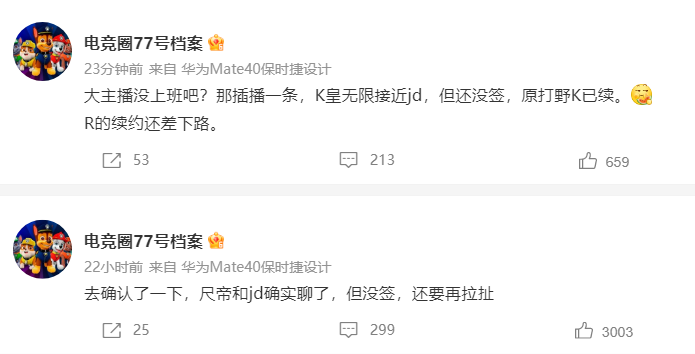 JDG银河战舰成型提前预定来岁冠军!涵艺爆料表现来岁联赛奖杯可以提前颁了,能效拉满的管理层,顶级锻练加选手,另有吃得巨开心的后勤团队,这就差指名道姓地说JDG了。 团结多方爆料信息来看,京东的新赛季阵容应该是369 kanavi knight ruler Missing,锻练红米。这个阵容确实是银河战舰啊!硬币哥确实牛的,Ruler来JDG就是他最早爆料的,Ruler辟谣后他还坚称如果Ruler不来他就跪着直播一小时。不外参考往年,银河战舰也不愿定能腾飞,JDG这套阵容有两个隐患。第一个是中单左手能不能被红米调教好,他和Kanavi的共同水平怎样。第二个是刚离开右手又碰到左手的Ruler初来乍到LPL,能不能顺应中国情况。 RNG也有最新的消息,只管Doinb爆料小虎和他的朋侪们都没续约,但照旧有知情人爆料Wei已经续约,RNG只剩GALA没续约了。 另一个爆料人说GALA是RNG和BLG二选一 看完LPL再看看外赛区消息,LCK赛区的BRO战队官宣:Sw0rd、Morgan、Lava、Delight四名选手的合约竣事,现已经离队成为自由人。 PSG官宣全员离队,而且还整活说:现在我们有钱买Faker了 北美那边,EG战队官宣:传奇上单选手Impact离队,感谢你已往两年的辛劳积极,你的积极对于我们举起LCS奖杯和走向天下至关紧张。 随后LEC媒体人爆料Impact已经与LCS的FlyQuest战队告竣口头协议。 末了看一个游戏内的妙闻,好汉同盟筹划师被的好汉账号惨遭封号14天。 缘故原由竟然是使用瑞兹多次打出超鬼战绩,筹划师这不得连夜增强一下瑞兹?玩家该练什么不消多说了吧? |