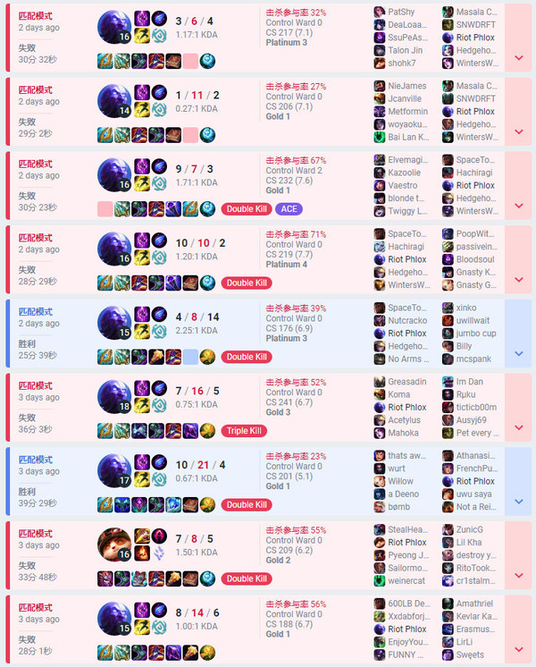 【CNMO消息】豪杰同盟S13赛季,在此前版本被删除的装备——韶光之杖迎来了回归,于是很多顺应这一装备的豪杰被各人重新器重,而瑞兹正是此中之一,但这件装备给瑞兹带来的增益好像并不显着。 流离法师瑞兹 克日,据CNMO相识,拳头计划师Phlox在网上分享了本身被豪杰同盟禁赛14天的消息,并表现:我想我不应该玩瑞兹了。CNMO查询战绩后发现,Phlox在近期频仍使用流离法师瑞兹,但其战绩却非常“辣眼”,险些每把都被击杀很多次,而且胜率非常低。 Phlox表现:我想我不应该玩瑞兹了 Phlox瑞兹战绩 如今,瑞兹在《豪杰同盟》中属于绝对的下水道豪杰,强度非常低。据相干网站统计,固然瑞兹在韩服的登场率到达了6.99%,但胜率只有可怜的45.45%,无论是上单还是中单,都处于垫底的位置。别的,这个老牌豪杰在国服的日子也非常欠好过,作为中单登场的胜率只有45.46%,综合排名至倒数第三,仅高于圣枪游侠卢锡安和戈壁天子阿兹尔。 瑞兹国服排名 瑞兹韩服排名 很多网友瞥见此则消息后纷纷表现:“黄金不到的程度都能当计划师,这我是真看不懂,计划师不会玩游戏,那还计划什么”“懂事的人已经在练瑞兹,等加强了”“瑞兹应该不是你计划的吧?否则不至于玩的这么菜”。 网友批评 那么你以为拳头计划师技能菜该背锅吗? |