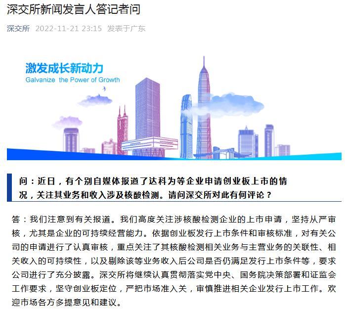 中新经纬11月22日电 21日晚,厚交所、上交所先后针对自媒体报道涉核酸检测企业申请上市发布答记者问。 沪厚生意业务所深夜发声 厚交所表现,高度关注涉核酸检测企业的上市申请,对峙从严考核,尤其是企业的可一连谋划本事。依据创业板发行上市条件和考核尺度,对有关公司的申请举行了认真考核,重点关注了其核酸检测干系业务与主业务务的关联性、干系收入的可一连性,以及剔除该等业务收入后公司是否仍满足发行上市条件等,要求公司举行了充实披露。厚交所将继认可真贯彻落实党中央、国务院决定摆设和证监会工作要求,服从创业板定位,严把市场准入关,审慎推进干系企业发行上市工作。 上交所也指出,高度关注涉核酸检测企业的上市申请,对峙从严考核,尤其是企业的科创属性和可一连谋划本事。依据科创板发行上市条件和考核尺度,对企业发行上市申请举行了认真考核,重点关注了其科创属性、核酸检测干系业务与主业务务的关联性、干系收入的可一连性,以及剔除该等业务收入后公司是否仍满足发行上市条件等,要求公司举行了风险显现。上交所将继认可真贯彻落实党中央、国务院决定摆设和证监会工作要求,服从科创板定位,严把市场准入关,审慎推进干系企业发行上市工作。欢迎市场各方多提意见和发起。 值得留意的是,在对厚交所的提问中,特别点出了达科为这家公司。 泉源:厚交所公众号 达科为是何企业? 克日,有多家自媒体关注到了达科为,“95后实控人”“半年卖出两万万支核酸采样管”等词条引人注目。 厚交所官网表现,达科为已于10月14日提交注册,如今只剩等候注册结果。 泉源:厚交所 招股书表现,达科为是一家专注于生命科学研究服务及病理诊断范畴的专业提供商。在生命科学研究服务范畴,公司紧张从事科研试剂及仪器的署理贩卖,以及部门科研试剂的自主研发、生产及贩卖;在病理诊断范畴,公司紧张从事病理诊断装备及试剂的研发、生产及贩卖。 业绩方面,达科为于2019-2021年度分别营收4.35亿元、6.05亿元、8.37亿元;净利润分别为1382.96万元、8133.45万元、10351.25万元。2022年上半年,公司营收4.74亿元,净利润4779.23万元。 从业务分别来看,科研试剂的营收在达科为披露的积年营收中占比均超70%,病理诊断装备为第二大业务,近两年占比均高出10%。 泉源:招股书 关于“95后实控人”这一词条,从招股书的梳剃头现,达科为是由公司实控人之一吴庆军和何俊峰共同出资设立的,颠末多年的增资扩股和股权转让,现在,公司第一大股东已变成了吴庆军女儿吴映洁,实控人也变成了吴庆军和吴映洁父女。别的,何俊峰未成年之子何政龙也成了公司股东,现在持股7.7275%。 泉源:招股书 值得留意的是,达科为在披露风险时指出,存在单一供应商采购比例较高的风险,公司向科研试剂供应商BioLegend的采购金额在各期采购总额的比例根本在50%左右。 达科为先容,BioLegend致力于为生物医药研究范畴提供一流的、高质量的流式抗体及相应的试剂盒等产物,是国际紧张流式抗体生产商之一。公司与 BioLegend自2008年开始互助,以独家署理的方式贩卖BioLegend流式抗体干系试剂。 同时,对于核酸检测,达科为也直接指出,公司自主研发了病毒生存试剂,用于病毒样本的网络、运输和储存等。2020年、2021年及2022年上半年,公司病毒生存试剂产物实现贩卖收入分别为5260.37万元、4827.88万元和4190.23万元,占公司主业务务收入的比例分别为8.71%、5.78%和8.84%。随着新冠疫情被控制以及新冠产物代价降落等因素的影响,其对公司的收入贡献大概镌汰,该部门收入存在不可一连的风险。(中新经纬APP) |
