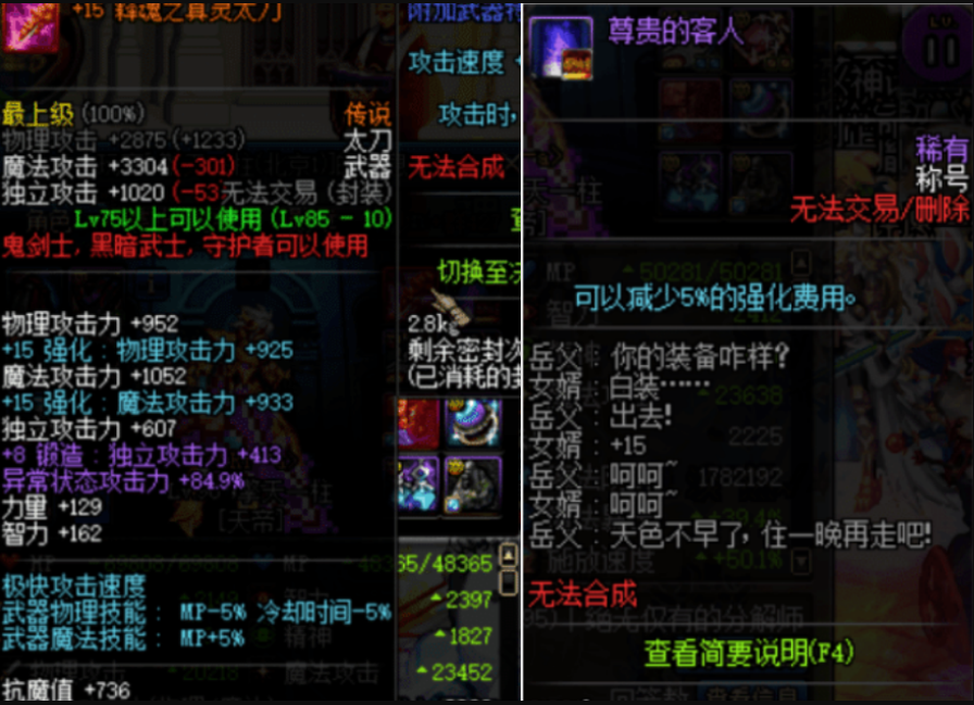 DNF这游戏的老玩家是真的多,究竟作为一款已经运营了十多年之久的老游戏,现在还对峙玩这游戏的可都是老玩家们了。纵然好不轻易有萌新玩家入坑,大概没多久就要被策划那层出不穷的套路给劝退了。纵然没有入策划的深坑,而这游戏自己就是个巨坑,一旦打仗了这游戏那么着实就已经是入坑了。 这游戏的版本更新还好坏常频仍的,而每次更新版本后玩家们都得重新打造自己的装备。尤其是这一身好不轻易才刷出来的结业装备,大概新版本出来后就要被镌汰了。而要想跟上其他玩家,到达新的入团尺度,那么各人又得再次氪金氪肝了。而这场景那真的是每次版本更新后都会上演,简直就是个无尽的循环啊。这也是一样寻常玩家入坑之后很难脱坑的缘故起因了,各人都陷入到这无穷无尽的循环当中根本爬不出来啊。 尤其是那些已经是脱坑了多年的玩家,假如再次回归的话,那么统统都又要重新开始了。纵然这些玩家曾经都是大佬土豪,拥有当年最强的结业装备。但颠末了这么多年,这些曾经的神器史诗都已经是成为了过气装备了,唯一的作用大概就是放在堆栈内里当传家宝了。纵然是这个版本最差的蓝白装,其属性大概都比老版本的结业装备要强的多吧。 一样寻常的回归玩家都会在更新好装备之后才去打团的,究竟穿着老装备打团绝对是会被踢的。但这名玩家却是个例外,这名玩家回归后竟穿假紫白装打团,重点是这名玩家竟还被团长却请进来,这身装备值八亿啊。 细致看这名玩家身上的装备,这竟然都是好几年前的老古董装备了,连假紫装备都有好几件。以致是连蓝白装都有两件,不知道的还以为这是灾黎玩家呢。这身装备纵然是放在几年前也好坏常差的,打团根本就不会放。但是当团长点开这些蓝白装和假紫的属性一看后,直接是懵了啊。 这名玩家身上的两件蓝白装是真的让人服气,固然蓝白装是地下城最无人问津的装备了,其代价也好坏常的低。但这两件蓝白装却是强化18和19的存在啊。这强化18以后的蓝白装可就不简朴的,纵然是当垫子也是代价好几亿金币的,而且每每尚有价无市,根本就买不到。 而这些假紫也都是不简朴,竟然都是强化15以上的存在。这些假紫光是依附其强化品级其代价就不会低的,这名玩家这一身的这些假紫加上蓝白装其代价就凌驾八亿金币了。 而且这名玩家的称谓也是不一样寻常啊,得强化15失败了十次才气得到。能拥有这一身高强化的装备再加上这个称谓,可以肯定这名玩家绝对不是一样寻常的回归玩家。怕是这名大佬的背包内里着实尚有一身红15的结业装备吧,只要有团长放进来他才会把背包里的装备拿出来,这怕是一名超等大佬啊。 |