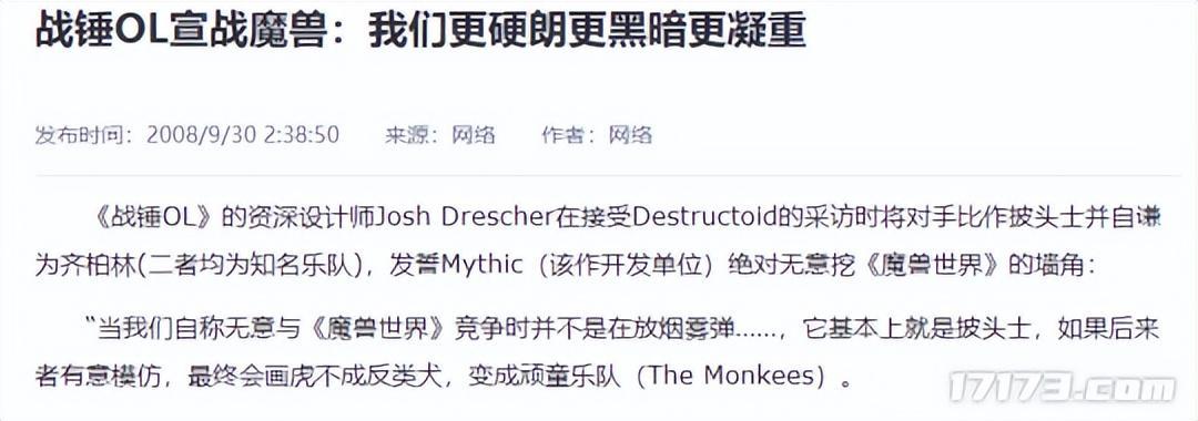 2023年1月24日,暴雪将会正式停止与网易的相助,这也代表着到时间《魔兽天下》又会制止运营了。信任不少老玩家都会以为这一幕很熟悉,究竟这已经是《魔兽天下》国服第二次署理竣事、制止运营了。这也让小编想起2009年《魔兽天下》第一次停服,各大游戏疯抢 “灾黎玩家”的场景。 《王者天下》:九城官方自己蹭 九城在失去《魔兽天下》的署理权之后,固然也不会没有任何回应,为了增补失去《魔兽天下》的丧失,当时的九城署理了大量的新游戏,而且在宣传过程中也没有忘记狂蹭《魔兽天下》的热度,此中蹭得最狠的就是《王者天下》。 《王者天下》是韩国Ndoors公司研发的一款3D SRPG网游。 游戏围绕汗青上曾一度光辉但又突然秘密失落的大陆“亚特兰蒂斯”睁开,以古代四大文明为根本,再现了真实的天下舆图和各国古迹。 《王者天下》兼具爽直感和计谋性的战斗计谋体系,是游戏的最大特色之一。玩家可以根据自身品级雇佣3-8名佣兵,一同作战。战斗时,玩家可根据各佣兵所拥有的丰富的技能体系订定相应的战略,举行计谋性战斗。 在游戏初期的宣传中,九城可以说想尽齐备办法在蹭《魔兽天下》的热度,打出了“另一个天下到来”、“开启另一个天下”、“我们不止一个天下”、“同盟、部落再聚首”、 “两个天下在瓜代”等诸多标语,暗示《魔兽天下》玩家来体验《王者天下》。 《剑网3》:武侠版《魔兽天下》 如今提到《剑网3》,信任国内没有几个玩家会不知道。如今的《剑网3》早就已经不光单是一个游戏那么简朴。在颠末十几年的发展,《剑网3》已经发展成烈?盖游戏、音乐剧、影视等多个方面的大型IP综合体。 实在,当时《剑网3》刚推出的是,还被浩繁玩家评价为中国武侠版的《魔兽天下》,在《魔兽天下》停运阶段也抓紧机会蹭了一波热度。 当时的《剑网3》还没有正式上线,仍旧处于删档封测阶段,不外面对《魔兽天下》停服而出现的大量玩家,金山也同样是相当眼馋。当时《剑网3》的最新广告语是“一个天下的门关闭了、一扇武侠的门打开了”。固然金山没明说但各人都明确是什么意思,就是叫魔兽玩家都去他的剑侠天下。而金山操持推出的广告语尚有类似“天下弃你远去,江湖为你而生!”,其对魔兽玩家虎视眈眈的心情昭然若揭。 通过广告宣传图可以大概看到,第一张图的配景图显着就是《魔兽天下》的风格。如今在贴吧还可以大概看到玩产业时对于这句广告词的震动发言。 《永恒之塔》:韩版《魔兽天下》 既然说到了《剑网3》,那么别的一个曾经与《魔兽天下》叫板、同台竞争的游戏《永恒之塔》固然也不会缺席。《永恒之塔》在上线之初,就直接以“韩版《魔兽天下》”作为自己的宣传噱头,面对《魔兽天下》停服,当时的谨慎固然也不会放过千载良机。 按照操持,九城的《魔兽天下》服务器将会在6月7日破晓停服,而谨慎在6月5日就正式公布《永恒之塔》开放两组新服,提前为魔兽玩家预留了位置。同时还公布近期注册的任何新用户都可以得到肯定的光彩,而这个光彩的名字就相当地故意思了,则分别为“同盟”和“部落”。 之后谨慎的广告语则更加直接,广告语和运动的标语均喊出“当天下关上大门,我们尚有永恒”“另一个天劣等你改变”,拉拢魔兽玩家之心不问可知。 《战锤OL》:台服也来蹭? 有详细相识过《魔兽》系列汗青的玩家,应该都知道在暴雪开发《魔兽》系列的时间,参考了不少游戏的设定,此中就包罗了着名的《战锤》系列。在《魔兽天下》得到乐成之后,《战锤》系列也推出自己了自己的网络版《战锤OL》,由EA负责发行。 在《战锤Online》的游戏天下中,有着相互对立的两大阵营,分别是由矮人王国、人类帝国所构成,为了制止被侵袭的危急而组的秩序阵营;以及绿皮部族、混沌军团及暗中精灵构成的扑灭阵营。 六大种族底下都有各自独特的职业,可分为坦克型、治疗者型、近战攻击尚有范围攻击类;在人物选择时,差别范例的职业脚色定位都阐明得相当清楚,玩家可以选择自己喜好的职业,并对脚色做各式各样的特色变革,打造出专属自己的脚色。 由于两款游戏之间的关系,《战锤OL》在上线之初就直接对阵《魔兽天下》,作为发行商的EA,当时的EA首席实行官John riccitiello乃至明确体现《魔兽天下》不是《战锤OL》的对手:“不,我以为《魔兽天下》是不值得一提的,没有人够猜测上市后会发生什么事,但我们肯定会引以为傲,由于我们制作出了《战锤OL》。” 固然《战锤OL》并没有真的进入国服,不外在《魔兽天下》停服的时间,台服署理已经确定,当时的台服官方也是各种蹭《魔兽》停服的热门,宣传自己的游戏。 《精灵乐章》:蹭副本玩法 在《魔兽天下》上线之后,除了巨大的天下观与配景故事外,最吸引人的玩法就是各式各样的副本了。对于当时的国内玩家来说,在网游中杀人抢怪、抢BOSS,已经家常便饭,而《魔兽天下》小队独占、充满挑衅的副本玩法,得到了不少玩家的喜好。 在前次《魔兽天下》停运期间,由亿启数码开发、悠游网署理的《精灵乐章》就蹭了一把《魔兽天下》副本玩法的光来宣传自己的副本玩法。 《精灵乐章》是一款团结脚色饰演与养成的线上游戏。玩家通过饰演精灵使者,造就精灵发展茁壮。精灵可以资助玩家举行各种资源网络、制作神兵利器和装备等工作。随着品级