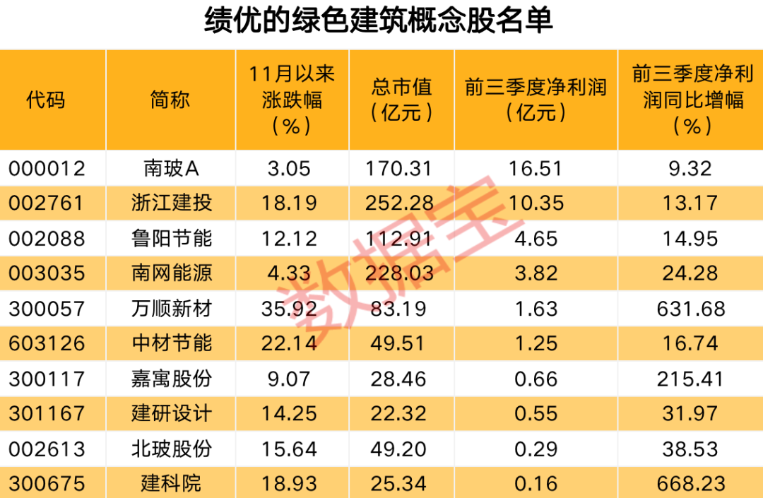 数据是个宝 数据宝 炒股少烦恼 中国修建质料团结会猜测,2025年我国绿色修建市场规模有望超9万亿元,年复合增长率约为5%。 近期,财务部、住建部、工信部发布《关于扩大当局采购支持绿色建材促学习建风致提拔政策实行范围的关照》(以下简称《关照》)表现,为加大绿色低碳产物采购力度,全面推广绿色修建和绿色建材,在南京、杭州、绍兴、湖州、青岛、佛山等6个都会试点的根本上,决定进一步扩大当局采购支持绿色建材促学习建风致提拔政策实行范围。 《关照》明白,自2022年11月起,在北京市向阳区等48个市(市辖区)实行当局采购支持绿色建材促学习建风致提拔政策。 中国修建质料团结会猜测,2025年我国绿色修建市场规模有望超9万亿元,年复合增长率约为5%。 证券时报·数据宝统计,A股中绿色修建概念股共有19只,11月以来股价广泛上涨,均匀上涨13.82%,跑赢大盘,此中万顺新材、亚士创能、中材节能涨幅居前,均超20%。 业绩方面看,19只概念股中有10股前三季度归母净利润额录得正值且同比增长。南玻A、浙江建投前三季度归母净利润额居前,均超10亿元。建科院、万顺新材、嘉寓股份的前三季度归母净利润额同比翻倍增长。 从本年整年业绩预期来看,得到超5家机构评级的绩优概念股中,南玻A、鲁阳节能、万顺新材本年整年的净利润有望大幅度增长。此中9家机构预计万顺新材本年整年净利润有望增长671.39%,公司在修建节能范畴有智能光控隔热膜、智能光控节能安全玻璃等产物。万顺新材前三季度归母净利润1.63亿元,同比增长631.68%;业务收入42.81亿元,同比增长5.08%。 声明:数据宝全部资讯内容不构成投资发起,股市有风险,投资需审慎。 责编:谢伊岚 校对:姚远 |