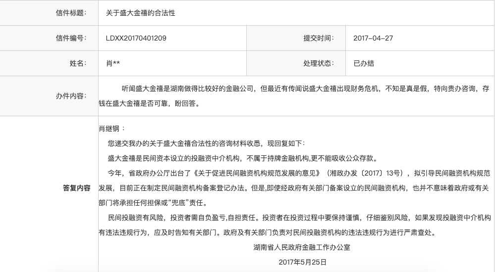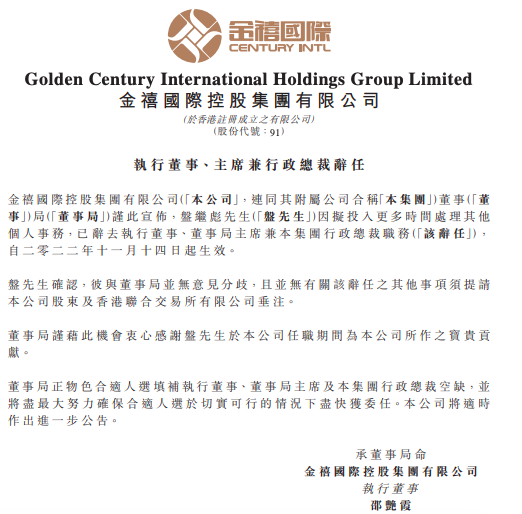 克日,位于湖南长沙的一家金融服务中介机构审慎金禧疑似暴雷、老板失联一事,引发舆论关注。 有媒体报道称,湖南审慎金禧金融服务有限公司(下称审慎金禧)实控人已失联,不少审慎金禧的客户前往公司总部要求退回投资款却无法兑付本息。一名业务司理体现,现在涉及的客户人数凌驾10万人,涉及资金194亿元。 值得一提的是,上述失联的实控人是港股上市公司金禧国际控股(00091.HK)的董事局主席盘继彪。11月14日,上市公司发布了其辞职的公告。 审慎金禧疑似爆雷的消息传出后,11月19日,其微信公众号发布了一则《审慎金禧公司关于良性清退工作有关事项的公告》。现在,湖南金融羁系部门开始参与审慎金禧事故。 老板失联十余天,此前称不会跑路 审慎金禧创建于2011年,总部位于湖南省长沙市,是一家金融服务中介公司。数年来,审慎金禧以高额年化利率吸引客户投放资金,但现实不绝未取得相干金融牌照。 克日,审慎金禧传出了疑似爆雷的消息,要从着实控人、董事长盘继彪失联提及。 11月20日,据汹涌消息报道,审慎金禧一名管理职员体现,董事长盘继彪至今已失联十天左右,“老板这个月4号去云南的,9号开始接洽不上。”审慎金禧一名管理职员说,盘继彪失联72个小时后,公司向公安构造报了警。 公开资料体现,盘继彪1998年在广州建立金禧光荣包管公司,2011年创建审慎金禧,并在湖南及相邻省份开展金融服务业务。2019年,盘继彪收购了香港上市公司“标准资源控股”,后更名为“金禧国际”,本身担当董事局主席。 偶合的是,盘继彪11月9号被员工发现失联,11月14日,港股上市公司金禧国际控股(00091.HK)就发布公告称,盘继彪因拟投入更多时间处置惩罚其他个人事故,已辞去实行董事、董事局主席兼本团体行政总裁职务。 ↑图片来自上市公司公告 据汹涌消息报道,盘继彪失联之前,曾于11月1日出席审慎金禧的一次聚会会议。视频体现,“很多客户朋侪以为我盘继彪会携款叛逃,转移资产”,盘继彪在会上进步嗓音说,“我告诉你们,我从来没有如许想过!” 盘继彪失联后,不少审慎金禧的客户前往公司总部要求退回投资款,却无法兑付本息。据汹涌消息报道,多个受访的审慎金禧投资者出示的《权益确认书》体现,此前大多投资的“年回报率”为14.4%,有的以致到达16%。长沙市开福区审慎金禧金融服务公司一名业务司理体现,他从公司高管团队相识到的信息是,现在涉及的客户人数凌驾10万人,涉及资金194亿元。 11月23日,红星资源局发现,审慎金禧官网已处于无法打开的状态。 审慎金禧公布清退方案,以酒抵债 审慎金禧疑似爆雷的消息传出后,11月19日,其微信公众号发布了一则《审慎金禧公司关于良性清退工作有关事项的公告》。 审慎金禧称,自公告之日起,对审慎金禧资产、项目方资产、关联公司现实控制的资产依法依规保全处置惩罚,用于徐徐清偿。 并体现将由客户选出代表,逐层组建“投资者权益保障委员会”地市级分会、省级总会和天下总会,来举行资产处置惩罚和兑付等事故。别的,将提请政府部门对现在已知资产举行保全,然后举行“科学处置惩罚、化解存量”。 与此同时,审慎金禧还发布了一份《自主良性清退发起方案》,提出在投资款的兑付序次上,充实思量“先老后少”“先小后大”的原则。清退筹办期预计12个月,对65岁及以上年岁的客户,以及65岁以下应退本金不凌驾3万元的客户,于2023年12月起正式兑付,最长分48期兑付完成,每期不凌驾1万元;对于其他客户,则在2024年12月起兑付,最长分36期兑付完成,每期兑付也不凌驾1万元。 红星资源局留意到,上述方案还提出了“以资抵债”办法:客户可选择用现有的赖永兴酱酒产物兑付。相干宣传文章体现,审慎金禧曾将赖永兴酱酒送给投资人做专属礼物。 另一边,随着审慎金禧爆雷消息的传出,金禧国际控股已经一连5个生意业务日股价下跌,从11月17日至23日发稿时,已经下跌了50%。停止11月23日发稿时,报0.059港元/股,总市值2.63亿港元。 被盘继彪收购后,金禧国际控股的股价长期在0.1港元以下倘佯。其主业务务一栏写着,从事煤层气勘探及开采、电子零件贩卖以及库务业务(包罗证券交易及放债业务)。但红星资源局发现,停止2022年6月30日,金禧国际控股上半年谋划煤层气的勘探、开辟及生产产生收益仅有33万港元,2021年以致为0元。而金融板块业务收入有137万港元。 涉嫌非法集资,近几年频频被罚 现在,湖南金融羁系部门和警方也开始参与审慎金禧事故。 11月22日,汹涌消息报道称,从湖南省地方金融监督管理局相识到,对于审慎金禧的相干题目,湖南省和长沙市此前已创建工作专班,按照处置惩罚非法集资的相干机制睁开工作。“行政观察阶段已经竣事了,转入司法打击。”湖南省地方金融羁系局副局长陈祥东先容,“我们行政执法构造已经认定,它(审慎金禧)涉嫌非法集资。”针对一些投资者的报案,长沙警方11月20日复兴称,公安构造现在尚未正式存案,正网络信息,进一步睁开观察。 值得留意的是,审慎金禧比年来频频被罚。 2016年,国家工商总局曝光了10起范例矫饰违法广告案,审慎金禧利用其店堂宣传、散发传单等情势向社会发布投融资类广告,在广告中假造究竟不存在的企业团体主体,利用国家构造、国家构造工作职员的名义和形象,被处罚款60万元。 2017年-2019年,审慎金禧因存在通过登记着所或谋划场合无法