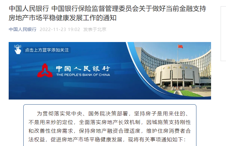 中国基金报 泰勒 兄弟姐妹们啊,就在刚刚,两大重磅利好同时出炉,国常会、央行银保监都来了!如果周三大涨,缘故原由就在今晚! 利好一 国常会:适时适度运用降准等货币政策工具 保持活动性公道充裕 李克强主持召开国务院常务聚会会议,摆设抓实抓好稳经济一揽子政策和接续步调全面落地收效,巩固经济回稳向上根本。 聚会会议指出,加大金融支持实体经济力度。引导银行对普惠小微存量贷款适度让利,继承做好交通物流金融服务,加大对民营企业发债的支持力度,适时适度运用降准等货币政策工具,保持活动性公道充裕。 聚会会议指出,要稳固和扩大斲丧。支持平台经济连续康健发展,保障电商、快递网络流畅。落实因城施策支持刚性和改善性住房需求的政策。推进保交楼专项乞贷尽快全面落到项目,鼓励贸易银行新发放保交楼贷款,促进房地产市场康健发展。 泰勒看了一下,按照惯例,国常会定调运用降准的话,过不久央行就会有相干的动作,各人可以拭目以待! 以下是国常会报道全文。 国务院总理李克强11月22日主持召开国务院常务聚会会议,摆设抓实抓好稳经济一揽子政策和接续步调全面落地收效,巩固经济回稳向上根本;决定向地方派出督导工作组,促前期已出台政策步调切实落地。 聚会会议指出,各地各部分贯彻党中心、国务院摆设,踏实实行稳经济一揽子政策和接续步调,为扭转二季度前期经济下滑态势、稳住经济大盘提供了有力支持。四序度经济运行对整年经济非常告急,当前是巩固经济回稳向上根本的关键时间点。要深入落实稳经济一揽子政策步调,保持经济运行在公道区间,力图实现较好结果。前期推出财务金融政策支持庞大项目创建、装备更新改造,政策效应正在显现,另有很大潜力,同时各地情况有差别,有部分清除到位,要继承狠抓落实。 一是告急项目和谐机制要继承高效运转,推动庞大项目加快资金付出和创建,动员民营企业等社会资源投资,年内形成更多实物工作量。增强羁系,打造质量安全工程。 二是对装备更新改造,要在已根本完成贷款签约根本上,把工作重点转向专项再贷款发放和财务贴息拨付,督促加快装备购置和改造。 三是稳固和扩大斲丧。支持平台经济连续康健发展,保障电商、快递网络流畅。落实因城施策支持刚性和改善性住房需求的政策。推进保交楼专项乞贷尽快全面落到项目,鼓励贸易银行新发放保交楼贷款,促进房地产市场康健发展。 四是连续保障交通物流畅通。物流保通保畅工作机制要不中断和谐,保障主干道和微循环流畅,保障港口等集疏运正常运行,实时买通堵点,维护产业链供应链稳固和收支口通畅。 五是加大金融支持实体经济力度。引导银行对普惠小微存量贷款适度让利,继承做好交通物流金融服务,加大对民营企业发债的支持力度,适时适度运用降准等货币政策工具,保持活动性公道充裕。 六是做好困难群众、赋闲职员动态监测和接济帮扶,兜牢根本民生底线。加大农民工工资拖欠管理力度,保障实时足额付出。 聚会会议夸大,要强化督导和服务。11月尾前,国务院各督导工作组赴有关地方,对稳经济一揽子政策步调落原形况举行督导,和谐办理政策落实中的困难和题目。 聚会会议研究了其他事项。 利好二 《中国人民银行 中国银行保险监督管理委员会关于做好当前金融支持房地产市场安妥当康发展工作的关照》正式发布 泰勒把重点标粗,各人直接看吧。 一、保持房地产融资安稳有序 (一)稳固房地产开辟贷款投放。对峙“两个绝不动摇”,对国有、民营等各类房地产企业等量齐观。鼓励金融机构重点支持管理完满、聚焦主业、资质精良的房地产企业妥当发展。金融机构要公道区分项目子公司风险与团体控股公司风险,在包管债权安全、资金封闭运作的条件下,按照市场化原则满意房地产项目公道融资需求。支持项目主理行和银团贷款模式,强化贷款审批、发放、收回全流程管理,切实保障资金安全。 (二)支持个人住房贷款公道需求。支持各地在天下政策根本上,因城施策实行好差别化住房信贷政策,公道确定当地个人住房贷款首付比例和贷款利率政策下限,支持刚性和改善性住房需求。鼓励金融机构团结自身策划情况、客户风险状态和信贷条件等,在都会政策下限根本上,公道确定个人住房贷款详细首付比例和利率水平。支持金融机构优化新市民住房金融服务,公道确定符合购房条件新市民首套住房个人住房贷款的标准,多维度科学审慎评估新市民名誉水平,提升乞贷和还款便利度。 (三)稳固构筑企业信贷投放。鼓励金融机构在风险可控、贸易可连续根本上,优化构筑企业信贷服务,提供须要的贷款支持,保持构筑企业融资连续稳固。 (四)支持开辟贷款、信托贷款等存量融资公道展期。对于房地产企业开辟贷款、信托贷款等存量融资,在包管债权安全的条件下,鼓励金融机构与房地产企业基于贸易性原则自主协商,积极通过存量贷款展期、调解还款安排等方式予以支持,促进项目竣工交付。自本关照印发之日起,将来半年内到期的,可以答应超出原规定多展期1年,可不调解贷款分类,报送征信体系的贷款分类与之保持划一。 (五)保持债券融资根本稳固。支持优质房地产企业发行债券融资。推动专业名誉增长机构为财务总体康健、面对短期困难的房地产企业债券发行提供增信支持。鼓励债券