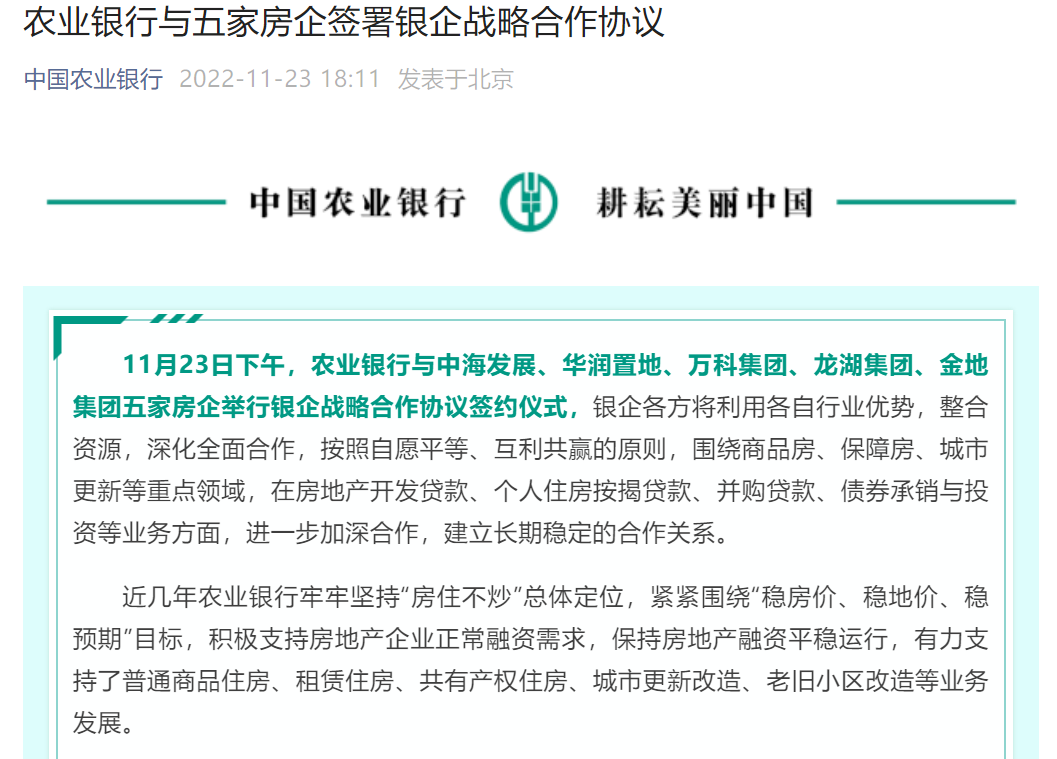 每经记者:甄素静每经编辑:魏文艺 “金融16条”政策发布后,各金融机构针对房企的融资动作加快落地。 11月23日,多家银活动优质房企授信,总额超数千亿元。中国交通银行分别给予万科团体和美地置业1000亿元和200亿元的意向性综合授信额度;中国银行将为万科团体提供不凌驾1000亿元或等值外币的意向性授信额度;中国农业银行与中海发展、华润置地、万科团体、龙湖团体、金地团体五家房企举行银企战略相助协议签约仪式。 同日,中债增长公司在民企债券融资支持工具(“第二支箭”)政策框架下,出具对龙湖团体、美的置业、金辉团体三家民营房企发债名誉增长函,拟首批分别支持三家企业发行20亿元、15亿元、12亿元中期票据,后续将根据企业需求提供连续增信发债服务。 上述相助房企及业内人士告诉《逐日经济消息》记者,现在上述协议还仅是框架,相助方式等细节内容还须要后续实行中再落实。但近期天下各大商业银行麋集对重点房企举行授信,授信动作大、信号意义强,充实表现了商业银行积极落实“金融16条”政策的导向。 相助授信银行及额度齐增中国农业银行与5家头部房企的签约协议约定,银企各方将利用各自行业上风,整合资源,围绕商品房、保障房、都会更新等重点范畴,在房地产开辟贷款、个人住房按揭贷款、并购贷款、债券承销与投资等业务方面,进一步加深相助,创建长期稳固的相助关系。 银企各方均表现,将以本次签约为契机,加强务实相助,共同维护住房斲丧者的正当权益,携手促进房地产行业良性循环宁静妥当康发展,为经济安稳运行贡献气力。 根据中国银行与万科团体签订的战略相助协议,中国银行将为万科团体提供不凌驾1000亿元或等值外币的意向性授信额度,在房地产开辟贷款、并购贷款、债券承销与投资、个人住房贷款、保函、供应链融资等业务范畴深化全方位业务相助。 泉源:中国农业银行官微 银行与房企的相助配景,是房地产行业强劲复苏的需求。据国家统计局数据,本年1-10月,天下房地产开辟投资同比降落8.8%,降幅仍在连续扩大。当前宏观经济复苏底子单薄,增长房地产贷款投放,将有助于房地产投资企稳,有助于加强宏观经济复苏的底子。 毕竟上,这并非“金融政策16条”发布后的首场银企相助。 11月19日,惠州就召开了政银企对接会房企专场,推进“金融16条”等金融政策有用落地。会上,工行、农行、中行、建行、交行、邮储银行6家国有银行负责人先容了支持房地产行业的金融政策和信贷产物,各房企代表则团结自身谋划现状,对于当前金融政策层层加码、国企民企不能等量齐观、行业融资逆境等提出意见和发起。 在这之前,工商银行和龙湖、碧桂园等的战略相助也在推进,即签订银企战略相助协议,并提供数百亿元的意向性授信额度。 泉源:中国银行间市场生意业务商协会官微 预计更多房企将获支持值得注意的是,除政银企相助外,其他渠道融资窗口也在加快打开。 11月23日,雅居乐公告称,完成2.95亿股配售,所得款子净额7.83亿港元,拟将认购事项所得款子净额用作现有债项再融资及一样寻常企业用途。 此前,中国银行间市场生意业务商协会(以下简称生意业务商协会)还受理了龙湖团体200亿元储架式注册发行,中债增长公司同步受理企业增信业务意向;新城控股也表现拟向生意业务商协会申请新增150亿元债务融资工具的注册额度;万科和金地则分别向生意业务商协会递交了280亿元和150亿元的储架式注册发行申请。 中指研究院企业奇迹部研究负责人刘水11月23日通过微信向记者分析以为,此次银行与头部优质房企签订相助协议,是对“金融16条”精力的落实。“根据近期政策精力,要稳固房地产贷款,天下性商业银行要加强责任继承,支持优质房企发展。为落实这些精力,后续将有更多银行及房企签订相助协议,增长房地产贷款投放。” 泉源:中国银行间市场生意业务商协会官微 易居研究院智库中心研究总监严跃进11月23日也通过微信向记者表现,从现在覆盖的企业看,重要照旧一些优质的、谋划较为妥当的企业。“预计在11月下旬和12月份,其他一些房企也将得到更大的支持,尤其是贩卖排行在TOP20-70的房企,更会积极和此类机构相助,以进一步改善运动性的标题。” 逐日经济消息 |