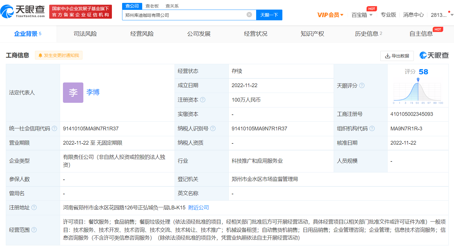 图片泉源:图虫创意 蓝鲸TMT频道11月23日讯,据天眼查App,11月22日,长沙兰星库迪咖啡有限公司、郑州库迪咖啡有限公司建立,法定代表人分别为廖鹏宇、李博,注册资源均为100万人民币。 谋划范围则含餐饮服务;食品贩卖;咖啡馆服务;外卖递送服务等。股权穿透图表现,两家公司均由库迪咖啡(北京)有限公司间接全资持股。 值得一提的是,近期,陆正耀新创业项目“库迪咖啡”接连建立新公司,包罗在海南、山东建立的两家供应链公司以及在北京、上海、杭州、深圳等地建立的咖啡公司。 11月3日,库迪供应链管理(海南)有限公司建立,注册资源3亿人民币,法定代表人为钱治亚,谋划范围含食品贩卖;食品互联网贩卖;供应链管理服务;餐饮管理;企业管理等。股东信息表现,该公司由库迪咖啡(北京)有限公司全资持股。 |