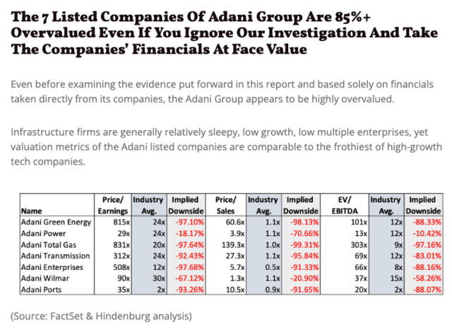 美东时间24日周二晚间,Hindenburg发布了一份快要100页的长篇陈诉,题为“Adani Group——环球第三豪富豪怎样实行企业史上最大的骗局”,矛头直指Gautam Adani的公司Adani Group。 陈诉称,Hindenburg在此披露为期两年的观察结果,展示证据证实, “已往几十年里,17.8万亿印度卢比(2180亿美元)规模的Adani Group举行了恬不知耻的股票使用和财政诈骗筹划。” 彭博亿万富翁指数表现,作为Adani Group的首创人兼董事长,已往一年Adani的产业排名蹿升。2022年2月,他成为印度首富,9月,他的身家曾短暂逾越亚马逊首创人贝索斯,成为环球排名第二位的巨富,到年底,他的个人产业一年内增长了440亿美元,成为该指数排名中产业增长最多的富豪。 有媒体将Hindenburg的做空称为,“Adani震动天下的千亿美元产业激增碰上了迄今为止最大的风险”,并指出,之前就有一些分析师质疑Adani怎样能在股市一片哀嚎的2022年取得云云亮眼的结果,Adani怎样证实,凭他那些负债累累和估值很高的公司,就能逾越从特斯拉、亚马逊到他的印度同胞、亿万富翁Mukesh Ambani旗下Reliance Industries Ltd在内的环球企业。 Hinderburg高调做空印度首富Adani Hindenburg的陈诉称,Adani拥有净值约1200亿美元的个人产业,已往三年间产业增长凌驾1000亿美元,这告急是通过Adani Group旗下七家上市公司的股价上涨,它们三年内均匀涨幅达819%。 陈诉指出,Adani Group已经因腐败、洗钱和偷取纳税人的资金而遭到观察。陈诉称,该团体旗下的公司估值过高, 纵然不思量Hindenburg 的观察结果,“纯粹从根本面看,由于天价的估值,这七家关键的上市公司有85%的下跌空间。” 陈诉披露对Adani Group的质疑包罗: 可以确认,Adani的兄弟Vinod Adani大概他的密切助手控制了毛里求斯的38家空壳公司,他本人还在其他避税天国控制了一些实体,这个离岸的壳公司网络好像被用来使用公司的收益。 Adani Group此前就是四项有关敲诈控诉的当局庞大观察的关注点。 Adani Group旗下的Adani Enterprises和Adani Total Gas Ltd.好像是由一家很小的公司做审计,该审计公司现在没有官方网站,只有四名合资人和11名员工,除了这两家Adani旗下公司,他们只有一家上市公司客户。 单单Adani Enterprises旗下就有156家子公司和许多合资企业,审计师好像没有本领举行云云复杂的审计工作。 见闻君曾分析过,就核心关键点,Hindenburg Research的控诉并不奇怪,其告急聚焦Adani团体的杠杆、估值水平以及营收使用,控诉后者通过虚伪的离岸公司使用营收及利润,同时通过大规模的股权质押获取资金(详见《亚洲首富正被外洋空头偷袭》)。 在做空机构Hindenburg对Adani的控诉里,“杠杆”是齐备敲诈的核心。由于篇幅标题,关于怎样推高杠杆举行敲诈,将在文末具体先容。 Adani对Hinderburg的回应和康宝莱对我们最初350页的陈诉回应一样。康宝莱仍旧是一个金字塔骗局。我发现,Hinderburg的陈诉可信度高,而且研究得非常透彻。Adani的回应很告急。买(Adani)的要自己负责。 印度首富回应 做空陈诉发布之际,Gautam Adani正寻求提升自己的国际形象,并积极进军新业务。客岁,该团体发起了对印度广播公司NDTV的敌意收购,以创建一个媒体帝国。已往四十年间,该团体成为一个高出能源、基建、农业、房地产和国防等范畴的巨大贸易帝国。 1月26日周四,Adani Group召开债券投资人电话集会会议称,对该团体涉嫌管帐舞弊的断言“缺乏究竟依据”,正思量依据美国和印度法律对做空机构接纳举措。公司的法务声明称: “这份具有恶意恶作剧性子、未经研究就发布的陈诉对阿达尼团体、我们的股东和投资者产生了倒霉影响,并引发了印度股市的颠簸,给印度公民带来了不须要的痛楚。 显然,该陈诉及其未经证实的内容旨在对阿达尼团体旗下上市公司的股票代价产生有害影响,由于兴登堡研究公司自己认可将从上述股票的下滑中受益。 这是外国实体故意和鲁莽地筹划误导投资者社区和公众,粉碎阿达尼团体及其领导者的商誉和荣誉,并粉碎(团体旗舰上市公司)Adani Enterprises(周五的25亿美元)股票增发FPO。” Hindenburg周四表现,Adani Group的回应“没有回复我们提出的任何实质性标题”。曾有媒体消息称,Adani Group筹划在本周五对“虚伪”做空陈诉做出更具体的回应,并称该团体旗下九家公司中有八家由“六大审计变乱所之一”负责审计,意在驳倒做空陈诉的结论(周五Adani方面并没有进一步的回应)。 被空头重创,影响有多大? 1)Adani公司市值两天蒸发510亿美元 固然Adani Group作出了正式回应,并思量对“虚伪控诉”接纳法律举措,但股市仍旧风声鹤唳,Adani公司继周三大跌后,周五继续大跌(周四休市)。 周三时做空陈诉已经发布,引发Adani Enterprises和Adani Transmission等七家Adani旗下上市公司股价下跌1%到8%,总市值共蒸发120亿美元,拖累印度告急股指S&P BSE Sensex也跌约1%。 周五,Gautam Adani所建立团体Adani Group的旗舰上市公司Adani Enterprises收跌18.5%,创2017年来最大跌幅。部门Adani公司周五跌20%,跌停收官,印度股指跌至三个月低位。 媒体估算,Hinderburg陈诉发布后两天内,Adani旗下上市公司两天内市值蒸发凌驾510亿美元。 印度孟买股票研究机构Target Investing的首创人称,Hinderburg的陈诉大概成为一个庞大的法律标题,由于它侵害了Adani公司的荣誉。 新加坡资产管理机构Global CIO Office首席实行官Gary Dugan表现,这些标题直击印度企业界的核心: 在印度,许多眷属控制的企业团体占主导