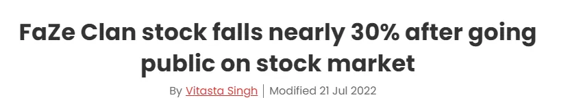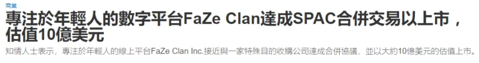前阵子电竞圈爆了个大消息,国内着名电竞俱乐部 RNG 的关联公司因欠款,列为被实行人。 12 月 6 日,RNG 的老板也被列为被实行人,股权遭到了冻结。 要知道,RNG 可算是国内比力老牌的着名俱乐部了,结果也不绝不错,结果说没就没了。 之前我们也写文章先容过,电竞这玩意儿,真不是一样平常人能玩儿得起的,无数资源大佬都投注过电竞市场,可他们大多都是铩羽而归,幸亏伤筋动骨。 搞电竞公司就和炒股很像,别说是做成上市公司赚大钱了,哪怕你只是保本,都能克服 90% 以上的偕行。 像是之前在丹麦上市的电竞战队 Astrails,依附着横扫天下的大满贯结果乐成上市,最高市值一亿美元左右,现在股价却跌到了原先的四分之一。 可见电竞是真的有毒。 但是,迩来有个叫 FaZe Clan 的俱乐部却以 10 亿美元的估值上市了,是 Astralis 顶峰期的的十倍! 为啥都是电竞战队,FaZe Clan 就那么值钱?它又履历了怎样的过山车从高峰坠入谷底? 本日,差评君就来给各人讲讲 FaZe Clan 的故事。 FaZe Clan 的第一个与众差异之处就是:一样平常俱乐部是先有了战队,才会去交际媒体搞专门的频道对外宣传,而 FaZe 则是干自媒体发迹的。 时间回到 2010 年,其时《 任务召唤 》在环球盛行,电竞职业化已经徐徐步入正轨,但是游戏视频行业却才是刚刚鼓起。 Faze Clan 的创建者 “ ClipZ ” “ House Cat ” “ Resistance ” 都是《 任务召唤 》的高玩,他们仨都是顶尖偷袭手,打着打着就熟悉了,成了好朋侪。 厥后 ClipZ 寻思着咱兄弟几个游戏打得好,干脆就组个队,于是就搞了个叫 FaZe 的组合,第二天 Housecat 就在油管上传了他们的第一个视频。 FPS 游戏与其他竞技游戏最根本的区别就在于它的观赏门槛非常低。 你不须要知道选手们的走位意图大概战术摆设,只要看到选手一抬枪一个爆头,就会情不自禁地说出一句“卧槽!” 但是 FaZe Clan 走的是另一个路子,由于《任务召唤》中的人物动作自由度更高,他们玩出了许多花式又酷炫的击杀。 比如什么空中转体720°一枪爆头、超远间隔盲狙,一样平常人在这环境下都看不到人呢,他们枪一开就把人杀了,属实是离了大谱。 依附着这种极具观赏性的视频集锦,再加受骗时《任务召唤》在环球范围内的热度, FaZe Clan 用了两年时间就劳绩了上百万粉丝。 同时,他们也有了本身的第一个赞助商,Gamma Labs 能量饮料,这个赞助商至今照旧 FaZe 的互助同伴,算是电竞界最恒久的一次互助了。 在这段时间里,FaZe 也在粉丝之中不停吸取新成员,此中一部分开始到场《 任务召唤 》和《 CS:GO 》的职业比赛,而且取得了肯定的结果。 而且Faze吸取的新成员中,并不光有职业选手,尚有一部分是专门的Youtube内容创作者。 比如 Temperrr、NAMELESS 等人,他们负责继承制作视频来包管 FaZe Sniping 频道的内容更新。 也正是在 2014 年,FaZe 更明白地分别了电竞比赛和内容创作两个团队,而且让内容创作团队都搬进了一间位于纽约的大房子里一起生存。 其时间刚好 Vlog 范例的视频在 Youtube 非常火,FaZe 这种全部人一起生存的状态就非常恰当拍 Vlog 。 以是内容制作团队平常除了一些游戏视频,偶然也会拍一些俱乐队伍员的生存状态、各人在一起玩的Vlog。 这种揭秘职业玩家真实生存的Vlog在那会儿但是很奇怪的,再加上这些成员本就是从粉丝中选出来的,一下子就把 FaZe “ 宠粉 ” 的形象给立起来了,也资助频道又狠狠涨了一大波粉。 实在纵观 FaZe Clan 在各种电竞比赛中的结果,他们都不是最好的那一类,但是 FaZe 的粉丝数量忠诚度却是一等一的高,这和他们油管频道的粉丝谋划密不可分。 除告终实的粉丝根本之外,FaZe在贸易上的实行也比其他俱乐部多得多。 一样平常来说,电竞俱乐部的赞助商根本都是电脑外设厂家,由于受众都玩儿游戏嘛,这很公道。 但是 FaZe 却可以和潮牌、饮料、零食以致迪士尼联名。 你想想,同样是看比赛,穿着一件身上贴满了各种外设厂家 Logo 的衣服和一件 Champion 出去,你选哪个? 以是FaZe的这些个周边产物,比其他俱乐部的好卖多了,外形上风太显着了。 话又说返来,为啥 Faze 就能找到这么多大牌互助呢? FaZe Clan 能有这么大的牌面,是由于他的后期成员里有不少重量级的人物。 比如说唱歌手 Lil Yachty 、勒布朗詹姆斯的儿子、传奇说唱歌手 SnoopDogg 等人,都是 FaZe Clan 的一员。 前阵子,闻名油管 Up 主撒币哥 Mr.Beast 也参加了 FaZe Clan。 这些人都属于本身大概有朋侪是 FaZe Clan 的老实粉丝,而 FaZe Clan 天然也不会放过这些 “ 蹭热度 ” 的机遇,非常乐意让他们成为俱乐部的一员。 比如 Snoop Dogg ,就是由于本身的儿子是 FaZe 铁粉,被他奉劝后才投资了 FaZe Clan。 至此, Faze 董事会拥有 WWE 实行副总裁、闻名体育公司公司 Arena 的CEO、着名说唱歌手等各行各业的大佬。 根据官方最新数据体现,FaZe Clan 在环球有 5.1 亿粉丝,可以说是影响力最大的电竞俱乐部,没有之一。 对于这个粉丝根本、稳固收入、品牌影响力样样不缺的 FaZe 来说,上市也就成了下一个快速扩张的机遇。 美国纳斯达克的上市标准相对来说比力宽松,没有什么特殊的硬性指标。 于是客岁 7 月 20 日,FaZe 通过 SPAC 乐成上市,成为了纳斯达克上市公司的一员,而且开盘价到达了 13 美元,估值 10 亿美元。 假如故事到此为止,那 FaZe Clan 大概真的可以成为一个传奇的电竞俱乐部,以致于成为之后电竞俱乐部谋划者的范本。 但是变乱却在这之