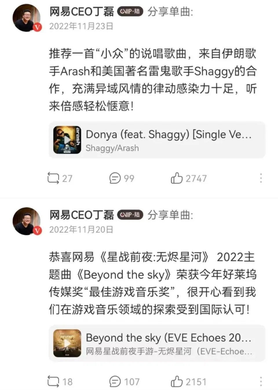 (本文为《大佬的2022》系列第五篇) 对于暴雪提出的种种要求,丁磊态度很简朴:不继续。 2022年11月17日,就在网易游戏与暴雪游戏宣告14年的互助以不欢而散告终后没几天,丁磊在网易第三季度财报电话集会会议中回应:“网易非常盼望继续署理暴雪游戏,并为此付出非常多积极。但已往一段时间,整个会商过程难度着实远超出网易方面的预期。对于一些涉及到可连续运营、和中国市场及玩家焦点长处的关键性互助条款,动视暴雪的要求是不可继续的。” 固然,敢于自动竣事与暴雪的互助关系,作为国内第二大游戏厂商的CEO,丁磊在遭受了压力的同时,也有自己的底气。 就在这次电话集会会议竣事两天后,丁磊便在自己的网易云动态中分享了一首泉源于网易游戏《星战前夜:无烬星河》的主题曲《Beyond the sky》,并开心地说道: “恭喜网易《星河前夜:无烬星河》2022主题曲荣获本年好莱坞传媒奖最佳游戏音乐奖,很开心看到我们在游戏音乐范畴的探索受到国际承认。” 短短两行字,便向外界告知了网易游戏在外洋的结果。这时的丁磊也仿佛一扫几日前的阴霾,笑脸重新回到了这位从商二十多年的老板脸上。 已往的一整年,丁磊麾下的网易继续着自己的既定蹊径:游戏出征外洋,音乐版权不绝回归,有道业务康健发展,元宇宙仍在探索。 不外,在游戏出海的路上也遇到了与互助搭档分手的标题,承载了音乐交际梦的MUS App在初登市场受到瞩目后便消散了踪迹。 面临舍与得,作为CEO的丁磊倒显得格外淡定。 就个人而言,作为音乐爱好者的丁磊在网易云分享了89条动态,每分享一首歌曲他都会配被骗下的心情,或是刚竣事加班,或是与亲人团圆,这里的丁磊就和平凡用户别无二致; 作为政协委员的丁磊,在客岁3月的天下政协十三届五次集会会议上提交了多份提案,内容包罗搭建环球知识产权买卖业务平台、研发钠离子电池等新能源电池等前瞻性数字经济、新能源议题等。 不管是阛阓照旧个人IP,丁磊从来都是服务淡定、波涛不惊的那一个。正是如许的态度,让32岁就成为中国首富的丁磊在51岁这一年,依然淡定,依然站在互联网的中心。 音乐交际第一人丁磊不绝是个为爱好工作的人。 就像很多人将网易笑称为“猪厂”,是由于丁磊早在2008年就花了几千万投资养猪,而养猪的缘由则是他在重庆吃到了一份倒胃口的猪血,归去之后便决定自办养猪场,拿最高级的尺度干这份买卖。 毕竟证明,哪怕是这么一件跳脱于互联网外的创业,凭着爱好工作的丁磊依然能挣他个几亿。 而丁老板的爱好,除了养猪,更为人所知的,照旧音乐。 “七分理想,三分买卖”,这是丁磊对于网易的态度,现在看来,更实用于他对网易云的见解。 在与腾讯音乐多年的版权大战中,丁磊不止一次在季度财报中提及音乐版权标题,也多次由于版权标题特意公开发声。直到2021年年中的“排除独家版权令”的出台,才办理了网易云音乐多年版权卡脖子的标题,也让厥后续其登岸港交全部了大概。 也是在网易云音乐上市前夕,作为“云村村长”的丁磊在网易云发表动态称“在搞了,版权标题我切身抓,只要独家版权放开,我们就敞开买”。 高兴之情,溢于言表。 短短几个字,也透袒露,为网易云音乐挥金,丁老板从不怜惜。 厥后的事也简直云云。2022年一整年,丁磊相继与信任音乐、韩国SM娱乐、YG娱乐、期间峰峻、福茂唱片等一众音乐公司告竣互助。 有了音乐版权的加持,越来越多用户乐意回归云村,在网易云音乐最新的2022年半年报中表现,2022年上半年会员付费比率由客岁同期的14.2%急速升至20.7%,月活泼用户数升至1.81亿人。 用户在回归,版权在回归,这也促成了丁磊对网易云音乐信心的回归。 正如开头提到,2022年丁磊网易云音乐上共分享了89条动态,均匀每4天他就会分享一首歌,在一众互联网大佬中,绝对算得上“话痨”级别的。 不外,丁磊本人好像倒是乐在此中。 在他的歌单中,有易烊千玺、二手玫瑰等新生代歌手的歌,有庾澄庆、杨千嬅等气力歌手的歌,还包罗Taylor Swift、Rihanna等外国歌手的歌曲。 同时,在世界杯期间,他分享了比赛场馆播放的歌曲《心墙》,称“法国和阿根廷即将会师决赛,各人看好哪支球队”;在《阿凡达2》上映期间,他分享了影戏的宣传曲《nothing is lost》,并与用户互动“村民们去影戏院看了吗”。 显然,在互联网前排冲浪的丁磊不甘于落后,也将网易云音乐视为与外界沟通的一个平台。 他曾说,网易云音乐从来不光仅只是一个音乐播放软件。在其漫长的转型与升级过程中,丁磊也在不绝试错。 2022年,以网易云音乐为根本的软件MUS App诞生,这标志着丁磊回归试水音乐交际。 不外,这一次,丁磊的音乐交际梦依然如镜花水月。2022年年底,在颠末了几个月的运营后,MUS app下线,更名为“妙时”重新上线。而后者的数据和声量,已经远远不如其下线之前。 只管云云,对网易云音乐近乎“痛爱”的丁磊,依然淡定,不光在2022年增持了其5万股,2023年初还为其购置新版权,续约老搭档。 显然,关于网易云音乐的玉轮与六便士,至少在2022年,丁老板刚强地选择了前者。 游戏的进与退相比音乐,丁磊对游戏业务则更显打击性。 在2021年四序度的财报电话集会会议上,丁磊曾表现“国内已经有很长一段时间没有发版号,外洋市场开发和制作人投资是网易非常刚强的战略方针”,而且盼望“两三年以后,在外洋市场的开发方面能