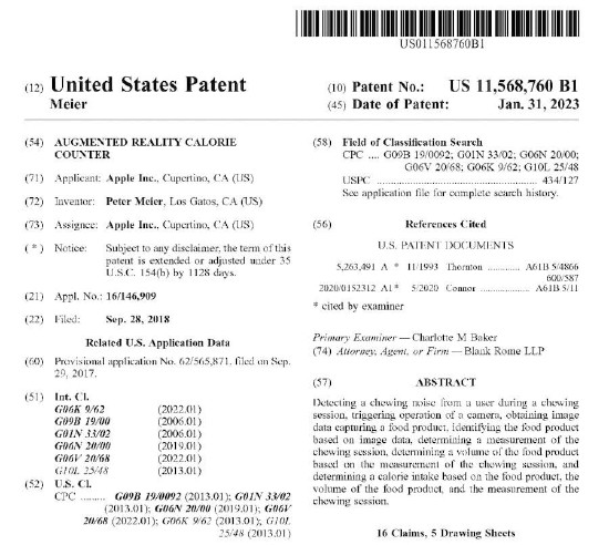 有传言称苹果操持本年发布一款新的MR 头显,或被定名为 Reality Pro,该头显预计将具有一些新的康健和健身功能。根据本日曝光的一项新专利申请,苹果正在其AR平台上探索卡路里计数器功能。 在这种环境下,食品卡路里计数器使用 AR 装备上的麦克风和摄像头来评估用户斲丧了多少食品。 根据专利,AR 头显上的麦克风将凝听“咀嚼声”。当头显检测到用户的咀嚼动作时,它将触发其摄像头单元作为相应,目的是捕获食品的图像数据。苹果 AR/VR 专用利用体系 RealityOS 上的复杂算法将使用呆板学习来资助根据图像数据辨认食品。 一旦确定了与咀嚼干系的时间,就可以根据咀嚼时间的隔断确定食品摄入量,而且可以根据辨认的食品和连续时间确定估计的卡路里斲丧量。 其大意是,当可以确定食品斲丧量时,用户可以更精确地记载卡路里摄入量并实现康健管理。 别的,AR平台上与卡路里计数干系的康健应用步伐界面也将可以或许与其他传感器对接。 根据专利,康健应用#1240被设置成得到葡萄糖丈量结果。比方,康健应用#1240可以与包罗在传感器#1210中的血糖监测仪一起工作,以得到血液样本并丈量血糖。 在一个或多个实验例中,此中康健应用#1240存储在存储器#1160中,康健应用可以与包罗在传感器#1130中的血糖监测器一起工作,以得到和/或使用血液样原来丈量血糖程度。 作为另一示例,传感器#1130可以得到用于丈量血糖程度的光学、电气或别的数据。 这表明该平台不但可以或许检测食品斲丧运动,从而检测卡路里摄入量,而且还可以或许与传感器毗连或集成以确定血糖程度。 该专利上的这种计划表明,此功能更有大概嵌入智能眼镜范例的 AR/VR 平台中,而不是完备的 VR 头显中。 固然专利语言没有涉及头显的任何细节,但人们会假设在吃食品时不会把 iPhone 放在耳朵旁边(除非未来的 AirPods 具有确定咀嚼声的 Edge AI 功能)。 最新的传言表明,苹果已经搁置了其轻量级和高端 AR 眼镜的想法,而是选择专注于尚未公布的面向大众市场的 MR 头显。 通过摄像头使用检测饮食风俗的想法并不奇怪。Fitbyte 是一家已往研究过这个用例的公司。已往也有其他各种应用步伐对此举行了探索,此中一个应用步伐 Loseit 早在 2017 年就开始展示此功能。 苹果还曾在发布 iOS 11 时展示过一项功能,将 iPhone 相机对准盘子,装备将立刻辨认出一碗意大利面。近来,另有其他应用步伐,如 Food Lens AR 和 AR DeepCalorieCam,提供基于食品图像的食品分析和营养分析。 |