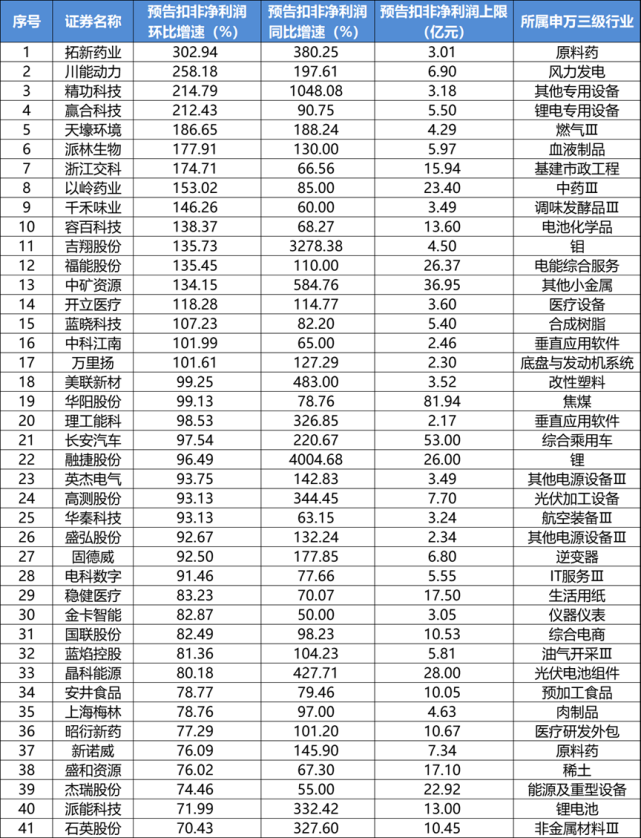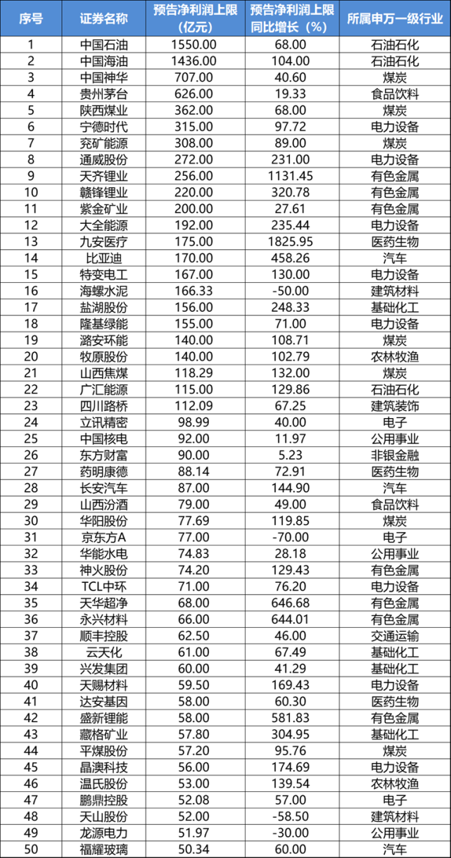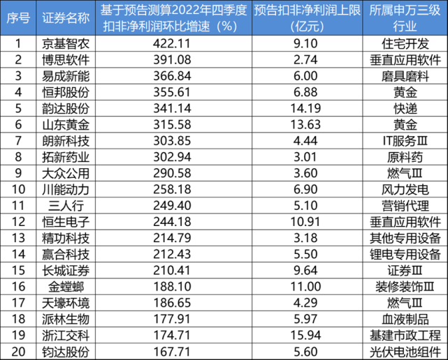 代价线|出品 深度|栏目 南山|作者 风飞扬|编辑 代价线导读 昨夜今晨,美联储决定加息25个基点;鲍威尔在议息集会上表现,美联储决定放缓加息步调,成为美联储强力加息周期的迁移变化点。 资源的嗅觉也是灵敏的,2023年1月份16个生意业务日,北向资金有15个生意业务日净流入。 A股2022年年报的业绩预报披露已竣事,几家高兴几家愁,有公司赢利赚麻了,也有公司巨亏数百亿。 在这个庞大迁移变化的时间窗口,是否可以从年报业绩预报中找到将来投资机会的蛛丝马迹?代价线本日先排排谁最赢利,谁增长最快,谁增长最有耐力? 同时,我们也细致甄别,数据背后藏着哪些陷阱? 谁最赢利? 传统能源霸榜,干净能源不甘示弱 克制2023年1月31日,沪深两市共有2642家上市公司发布了2022年度业绩预报。此中,若以预报净利润上限为标准盘算,共有1656家上市公司实现红利,占比62.68%。 详细来看,排名前50的上市公司预报净利润上限均高出了50亿元,高出100亿元的有23家,高出500亿的有4家,高出1000亿的有2家。 “赢利王”花落中国石油,公司预计2022年将实现归母净利润1450-1550亿元,相称于天天赚4个亿。与上年同期相比增长了528-628亿元,同比增长约57%-68%。 另“一桶油”中国海油紧随厥后,与中石油一同成为唯二红利破千亿的上市公司。中国神华、陕西煤业、兖矿能源三家煤炭巨头也同时杀入前十。 别的,贵州茅台位居第四,宁德期间位居第六,硅料和电池片双龙头通威股份则位居第八,锂盐双雄天齐锂业和赣锋锂业则占据了前十末了两个席位。 总体上来看,最赢利的50家上市公司中,绝大多数在2022年实现了业绩增长。 增长最快的当属九安医疗,同比增速高达1825%。究竟上,九安医疗大概是A股上市公司近两年最大的古迹之一,该公司在2020年从前红利从未高出1个亿,乃至多个年度出现亏损,但客岁却实现了175亿的巨额利润,重要是受益在美国贩卖试剂盒等新冠防疫产物。 天齐锂业同比增速位居第二。在办理了债务题目后,天齐锂业依附2021年较低的利润基数、更高的锂矿自给率和更高的碳酸锂占比,在利润规模和增速上同时打败了老对手赣锋锂业。 值得注意的是,有4家公司在巨大的红利规模底子上出现了业绩的下滑,且下滑幅度都不小,分别是海螺水泥、京东方A、天山股份、龙源电力。此中,海螺水泥、京东方A、天山股份都是受到了鄙俚行业(房地产、消耗电子)不景气的影响。 “赢利榜”的另一大看点是传统能源和干净能源霸榜,呈分庭抗礼之势。 传统能源中,除了“两桶油”和神华、陕煤、兖矿这煤炭三巨头外,尚有诸如潞安环能、山西焦煤、广汇能源、华阳股份、神火股份等多祖传统能源企业上榜。 一方面,这些传统能源企业本就规模巨大。更告急的是,它们深度受益2022年的环球有数高通胀而取得了较高的业绩增速。一个生动的例子可以表明高通胀对相干企业带来的收益:陕西省著名的资源型都会榆林市2022年实现地区生产总值6543.65亿元,同比增速高达20%以上,远远高出国内重要一二线都会。 干净能源也不甘示弱,“宁王”宁德期间、“迪王”比亚迪、“隆王”隆基、“锂盐双雄”天齐和赣锋,“硅料三巨头”通威股份、大万能源、特变电工,这些干净能源的代表企业全部杀入“赢利榜”前二十。别的,尚有盐湖股份、TCL中环、天华超净、永兴质料、天赐质料、盛新锂能、晶澳科技等十多家新能源财产链企业进入前五十。 仅从利润规模来看,短短两年时间,干净能源企业已然开始向传统能源巨头发起强力挑衅。 谁增长最快? 干净能源称王,锂资源股成最大赢家 相比谁赚的最多,许多人大概更关心谁增长最快,谁更具备发展性。 只管传统能源企业并未像许多人预期的那样灵敏走向阑珊,反而借助周期和环球局面又大赚了一笔。但从业绩同比增速上,我们还是可以看到干净能源这一局势不可逆的信号。 据代价线统计,在上述1656家红利的上市公司中,有228家预计净利润上限同比增速高出了200%。如果按照申万二级行业对这228家公司举行归类,以下六个行业涉及的上市公司数量最多: 电池、汽车零部件、能源金属(全部都为锂资源企业)、光伏装备这四个新能源财产链细分行业贡献了此中的36家。尤其是兼具上游资源属性和新能源属性的能源金属,9家公司增速全部高出300%,7家高出500%,融捷股份的同比增速更是高出37倍。 详细到增速最快的20家公司,有19家实现了1000%以上的同比增速。 宁波富邦荣登“增速王”,其预计2022年实现净利润上限较2021年增长超60倍。不外,根据其对业绩预增的分析,该公司净利润的大幅增长重要是受益非经常损益,扣非后反而出现了亏损。 沪光股份和上海谊众均实现了40倍以上的增长,位居增速的二三位。但由于这两家公司在2021年均录得亏损,2022年预计红利也分别只有4000余万和1.6亿,其超高的同比增速很大程度上要归功于过低的利润基数。 如果在上述20家增速最快的公司中剔除基数较低的公司,那么增速居前的公司中,融捷股份、东方日升、爱旭股份、天齐锂业等新能源财产链企业将占据半壁山河。这再度表现了新能源财产链在已往的一年是多么的火爆。 谁增长更有耐力? 同比环比都增长,就肯定“好”吗? 不外,上文统计的同比增速数据也经常有肯定的滞后性,一些公司依附上半年的高速增长而录得整年的高速增长,但进入下半年大概进入四序度,大概业绩已