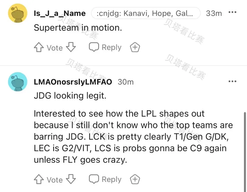 JDG在LPL春季赛中以2-0的战绩击败了NIP,拿下了2连胜。很快这场角逐也引发了大量外洋网友的热议,一起来看看他们是怎样评价的吧! -ruler的2V4让我有点嗨,我不想撒谎。 -Ruler不停都是保持鉴戒的选手,但是他选到泽丽的时间,会做出云云不可思议的办法。这大概是为什么我会在GEN和T1的角逐中,讽刺Peyz的缘故起因,由于他其时也是泽丽,我做了不公平的比力,但是很难不笑。 -是的,你不应把Peyz和天下第一泽丽对比。 -超等战队已经启动了。 -JDG看起来很正常,很想看看LPL的结果是什么,由于我如今还不知道除了JDG之外,LPL另有哪些顶级战队。LCK很显着是T1、GEN和DK,LEC是G2和VIT,LCS很大概还是C9,除非FLY发疯了。 -我心目中LPL的前五名是JDG、WBG、TES和LNG,BLG大概IG应该是别的一支,但是他们还必要面临更强大的对手,我真的等不及看他们和TES、JDG的角逐了。 -TES、WBG、BLG加上JDG,应该是LPL春季赛的前四。LNG应该是除了上述4支队伍外,前6名的最安全选择。只要Ming不返来,RNG就会退出强队的竞争。EDG按理说也应该是前6,但是IG也很难说。 -ruler的2V4,天啊。 -chovy和Ruler重新开始统治联赛。 -有人能从NIP这支战队中,把photic救出来吗? -2-0,还拿到了泽丽猫咪,这不是很正常的事故吗? -JDG真的是一支不错的战队。 -但是ruler的伤害太低了,只有13K,Photic却打了23K,这很风趣。 -很显着Ruler还不顺应LPL的团战节奏,Viper刚来的时间也花了一段时间来调解。 -Photic在地狱之队。 -kanavi很狐疑,为什么JDG全部路都赢了对线。 -我真的看不出来LPL有哪支战队可以真正跟JDG竞争,他们很像是LPL的G2。 那么,对于这些外洋网友的观点,你们有什么想说的吗?接待在品评区留言探究。 |