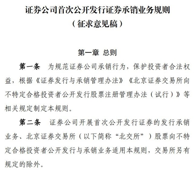 就全面注册制下券商的发行承销,中国证券业协会(下称“中证协”)草拟了新规举行进一步的规范。 2月3日,汹涌消息记者获悉,克日中证协为顺应全面实行注册制发展必要,进一步规范证券公司发行承销活动,落实承销商责任,订定形成了《证券公司初次公开辟行证券承销业务规则(征求意见稿)》(下称“《承销规则》”),并向行业征求意见。 值得关注的是,本次草拟的《承销规则》,对原《初次公开辟行股票承销业务规范》、《注册制下初次公开辟行股票承销规范》、《北京证券买卖业务所股票向不特定合格投资者公开辟行与承销特别条款》、《初次公开辟行股票配售细则》等多项规则举行了整合优化。 总体来看,《承销规则》共六章七十二条,包罗总则、路演推介、发行与配售、投资代价研究陈诉、自律管理、附则等。紧张内容有四个方面:一是明确路演推介的要求、二是规范发行定价与配售活动、三是进步投资代价研究陈诉质量、四是切实增强自律管理。 “《承销规则》的草拟思绪紧张有两方面,一是落实注册制改革羁系转型要求,总结罗致科创板、创业板注册制试点中发行承销业务自律管理实践履历,增强承销商自律管理。二是同一注册制下各板块发行承销规则,形成简明清晰的证券公司承销业务自律管理规则体系。”中证协指出。 明确路演推介的要求,强化证券分析师路演推介作用 在路演推介方面,《承销规则》举行了三方面明确。一是细化发行人和主承销商在初次公开辟行证券、向不特定合格投资者公开辟行股票并在北交所上市的发行承销业务路演推介过程中的推介方式、推介范围。 《承销规则》要求,在初次公开辟行证券/公开辟行股票并在北交所上市申请文件受理后,发行人和主承销商可以与拟到场战略配售的投资者举行一对一起演推介,先容公司、行业根本情况,但路演推介内容不得超出证监会及买卖业务所承认的公开信息披露范围。 二是明确向到场战略配售的投资者、网下投资者、公众投资者推介的详细要求,强化证券分析师路演推介作用,资助网下投资者更好地相识发行人根本面、行业可比公司、发行人红利推测和估值情况。 三是规定主承销商约请状师的相干要求。《承销规则》明确,主承销商应当约请到场网下发行与承销全程见证的状师事件地点路演推介活动前对发行人管理层、到场路演的工作职员和证券分析师等举行培训,夸大发行人对外宣传资料的口径,包罗宣传质料与发行人现真相况的划一性、不答应透露公开资料以外的信息、不答应存在浮夸性形貌等。主承销商应当要求状师事件所出具培训总结,并督促状师事件所勤勉尽责等。 进一步规范发行定价与配售活动,主承销商可以设置配售决议委员会 规范发行定价与配售活动方面,《承销规则》举行了三方面明确,一是细化主承销商对网下投资者的核查要求,规范主承销商对网下投资者报价举行簿记建档场合及管理的要求。 二是规定主承销商可以设置配售决议委员会,并明确委员会的构造构成、推行职责步调,细化配售原则的订定要求以及对到场战略配售的投资者、保荐机构相干子公司跟投等出具答应函的核查要求。 三是细化关于发行人和主承销商发行方案中接纳超额配售选择权的规定。进一步明确主承销商使命,规范配售活动,督促其增强配售过程管理。 两方面进步投资代价研究陈诉质量,明确六项陈诉内容 进步投资代价研究陈诉质量方面,《承销规则》举行了两方面再明确。 一是明确主承销商提供投资代价研究陈诉的详细要求。 详细而言,陈诉内容应至少包罗红利推测、发行人分析、发行人地点行业分析、募投项目分析、可比上市公司分析(如有)、风险提示六个部门,可以根据必要选择是否给出估值分析结论,并细化了相干内容的详细要求。 二是对陈诉的提供方式、撰写原则、内部制度、证券分析师活动等作出规定。切实进步陈诉独立性、专业性、实用性,引导其发挥定价引导作用。 四方面强化自律管理,协会创建股票发行与承销观察员机制 在自律管理方面,《承销规则》提出了四大要求。一是明确承销商应当向协会报送路演推介活动的开端方案、发行承销总结陈诉、超额配售选择权实行情况陈诉(如有)、投资代价研究陈诉及总结情况,增强承销商路演推介、发行与配售环节管理,落实承销商责任。 二是中证协创建股票发行与承销观察员机制,督促承销商履职尽责,并向行业积极推广发行与承销树模实践,引导行业对标提升。 三是明确承销商存档备查的承销资料要求与协会现场查抄事项,增强自律查抄标准管理。四是明确对违法违规活动的责任追究,净化行业生态。 《承销规则》草拟沿“同一注册制下各板块发行承销规则”等两思绪 对于《承销规则》的草拟思绪,中证协体现,一是落实注册制改革羁系转型要求,总结罗致科创板、创业板注册制试点中发行承销业务自律管理实践履历,增强承销商自律管理。 此中,明确承销商路演推介相干要求,细化发行与配售等规定,明确投资代价研究陈诉的撰写、提供方式、相干制度等要求,切实进步陈诉质量,促进形成市场化发行承销机制,进一步规范证券公司承销活动。别的,引导承销商积极负担社会责任,规范承销业务收费。 “另一方面,是同一注册制下各板块发行承销规则,形成简明清晰的证券公司承