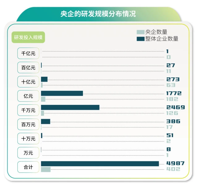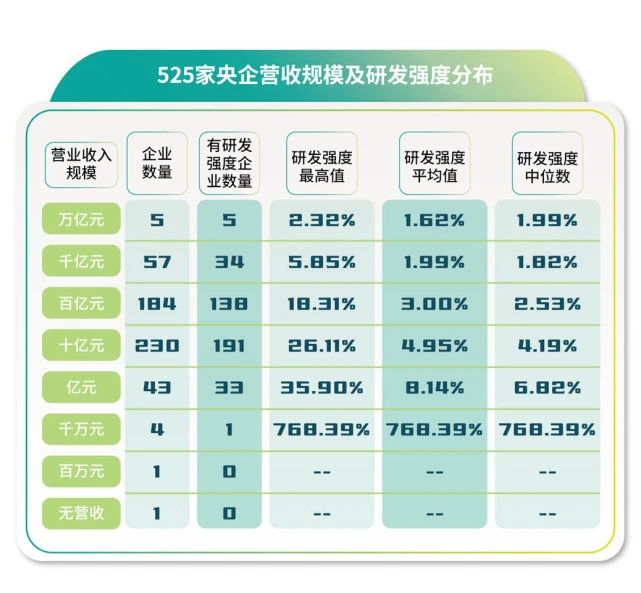 中国空间站全面制作完成、举世单机容量最大海上风电机组下线、白鹤滩水电站全部投产发电、国产大飞机正式进入运输市场……每到年末盘货,国之重器、超等工程熠熠生辉,它们背后多由中央管理企业(下称“央企”)主导和支持。 2022年,是“国企改革三年举措”收官之年,也是“进步央企控股上市公司质量工作方案”启动之年。2022年3月,国资委正式创建科技创新局,把重点工作任务定为:抓好巨大科技专项落地,推动国有企业打造原创技能策源地,抓好强化企业创新主体职位,加快推动中央企业建立创新型领军企业。 如果说央企是中国国民经济的告急支柱,央企控股的上市公司更是此中的“头雁”,在进步自主创新本领、建立创新型国家历程中被寄予厚望,“科创国家队”的科创效果单毕竟怎样? 南方周末科创力研究中央梳理了国务院、国资委、财务部和其他部委推行出资人职责的中央企业所控股的A股、港股和美股上市公司。这些公司共计587家,此中部门公司多地上市,去重后525家。南方周末科创力研究中央从科创焦点指标项数值和科创得分等指标,与南方周末企业科创力数据库6452家入库企业和44个一级行业情况举行了详细对比分析。 从团体情况看,央企的团体策划发展指标可圈可点,科创指标表现也很好,但在科创焦点指标项上,仍有三成央企的研发投入和研发职员未达团体中位数,更有六成央企研发强度低于团体中位数。 只管国资委在稽核时故意引导企业加大研发投入,也不乏各种政策支持,但似乎仍未能让央企更大胆地投入研发。它们的研发投入金额、强度和研发职员数目以及占比,仍与其策划体量、市场职位有着隔断。 在构筑和高端制造业,央企无疑有着得天独厚的发展上风,也正在以行业科创前锋的姿态在前行,但在开放竞争性范畴则不尽然。央企标签并非企业发展和科创本领的保障。正如央企上市企业中也大概会出现ST,央企中也不乏拖后腿的后进生。科创之路来不得谋利取巧。 量少体大 一样平常而言,央企即指国务院国有资产监督管理委员会下辖的98家央企团体。 确切地说,央企是中央人民当局(国务院)或委托国有资产监督管理机构利用出资人职责的企业。 在中国财务部定期发布的天下国有及国有控股企业经济运行情况陈诉中,将国有企业分为三类:国资委、财务部推行出资人职责的中央企业,中央部门和单元所属企业,36个省(自治区、直辖市、操持单列市)和新疆生产建立兵团的地方国有及国有控股企业。 从出资人和股权关系看,除了国资委和财务部,其他中央部委如工信部和农业农村部等推行出资人职责的中央企业、中央部门和单元所属企业,也可纳入央企范畴。 在此项研究中,我们把公司控股股东为中央国有法人和公司实控人为中央国资管理机构的上市公司都纳入研究范畴,合计587家。部门公司多地上市,去重后为525家。(下文中如无特殊阐明,统称央企。) 南方周末科创力研究中央的2022年度中国企业科创力数据库收录企业总数为6452家(包罗停止2021年底全部A股公司,绝大部门控股股东/运营主体在中国的港、美股公司,以及1家未上市、但能提供经第三方审计财报的公司,1家自动报名参加研究的台股公司),去重后,合计6287家。 在这个数据库中,去重后的央企数目占比为8.35%,但从企业运营的规模和体量看,央企的实际权重都数倍于此。 一个更直观的数据是,在6287家企业中,万亿元营收规模及以上企业仅6家,此中5家为央企,另1家是中国安全——一家最初由央企控股,厥后徐徐退出,现由国资、外资和个人等参股的混淆制企业。 只管央企数目在全部企业中占比不敷1/9,但其资产和债务规模占比均为60%左右,利润高出45%,营收靠近40%,雇员数目和公司市值高出1/4。 在南方周末科创力研究中央关于企业科创力的评价体系中,团体上,央企在详细指标项中同样表现不俗,此中研发投入和研发人数占比力为突出,分别靠近23%和20%。 29家跻身TOP100 南方周末科创力研究中央综合企业年报研发和策划数据披露、举世专利申请和授权、参加国家和行业尺度草拟订定、国家/省部级科技奖项得到等情况,以一种完全公开、透明、可溯源的数据泉源、评估体系、盘算规则,对企业科创力举行体系测算和评估,并根据得分举行排名。 我们对每一家入库公司均盘算科创得分,但如有以下五种情况之一,不参加终极排名。 (1)研发投入指标为0; (2)研发投入强度<1%; (3)一连两年业务利润金额<0; (4)发生巨大策划变乱导致指标值非常; (5)沪深生意业务所举行退市风险警示(标注为ST)公司。 在2022年度入库的6452家企业中,共有3766家参加科创力排名;525家央企中,终极293家参加排名。 这些被剔除排名的央企,此中123家没有披露研发金额,包罗中国石油、中国石化、中国移动在内的91家研发投入占营收比小于1%,30家一连两年业务利润为负值,4家ST公司,更有部门公司同时满意2个及以上条件。 从排名效果看,中国构筑(601668)、中国中铁(601390)、中国铁建(601186)和中国中车(601766)4家央企进入了前10名,29家央企进入了前100名,在TOP100中占比近30%。 约有一半的央企排在前1000名,也有部门坠在队尾。 这一团体排名中,每一个指标项的得分,由企业的指标数值/团体公司的最高值而来,表现企业综合气力。 与此同时,企业科创力还与企业主业相干。在之前对央企的稽核中,国资委也会根据功能定位有