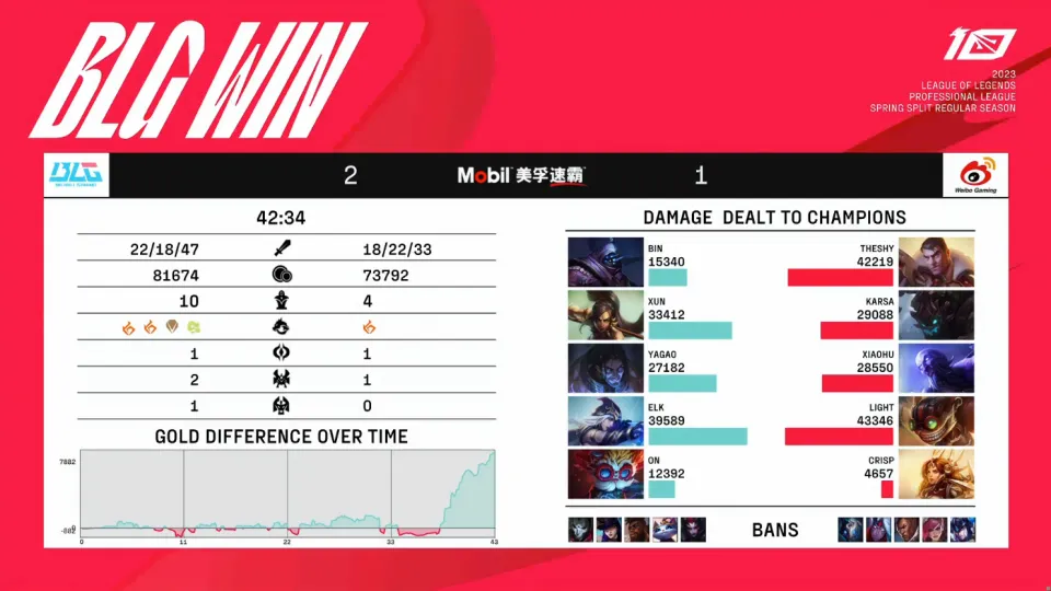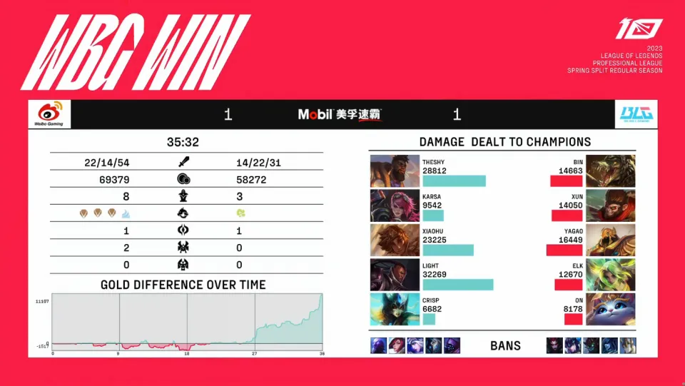 LPL赛区S13春季赛第二阶段的角逐,正在紧锣密鼓的举行。2月4日超等周末的三场角逐,由WE和OMG这两支老牌权门之间的对局,IG迎战TT,以及BLG大战WBG三场角逐构成。 在率先竣事的两场角逐中,OMG用两场绝地翻盘,击溃了WE,让WE再次陷入了“打不赢角逐”的窘境;第二场角逐,吊车尾倒数第二的TT,则是用非通例的三AD阵容,鏖战三局,强势击溃暂居榜首的iG,阻断了iG四连胜的步调,也让本身劳绩了春季赛首胜! 大乱斗?BLG三局角逐熬死WBG!在第一阶段的角逐中,WBG这支被玩家们戏称为“老头乐”的队伍,他们在春季赛首秀战,就碰到了流量与气力并重的滔搏战队。效果被熬老头的队伍没输,以年轻人为主的滔搏却被“熬了老头”,晒哥面临老对手,下了狠手,WBG三局击败滔搏,斩获开门红。这一次对阵小破站,不知道WBG会不会被熬老头? 第一局角逐,BLG蓝色方,禁用蜘蛛、猫咪、茂凯、杰斯、猪妹,选用刀妹、千珏、加里奥、韦鲁斯、卡尔玛;WBG赤色方,禁用贾克斯、卢锡安、剑姬、青钢影、蕾欧娜,选用纳尔、酒桶、瑞兹、希维尔、艾希。 第一局角逐,WBG不知道为什么,开局就全线崩盘。以致队内的两名冠军选手,晒哥和小虎都没能在关键时候站出来,力挽狂澜。WBG直接被BLG,打了个零龙塔,这你敢信?很显着,单就第一局角逐而言,BLG准备的很富足,他们对于WBG绝对是下了功夫去研究的,不光BP完爆,熏更是打得像个代练一样,所过之处寸草不生! 第二局角逐,BLG蓝色方,禁用蜘蛛、猪妹、茂凯、冰女、加里奥,选用鳄鱼、猴子、沙皇、泽丽、悠米;WBG赤色方,禁用贾克斯、千珏、艾希、剑姬、瑞兹,选用奎桑提、蔚、岩雀、卢锡安、娜美。 先输一局,背水一战的WBG,大概是第一局的零龙塔输得太过于离谱,WBG在第二局角逐中发作了!双方在角逐的前25分钟内里,打得非常胶着,经济和击杀数瓜代领先,只是谁也无法将上风转为胜势。迁移变化点出现在26分钟左右,BLG上野共同失误,WBG顺势拿下大龙后,接受了后续的角逐。终极35分32秒,Light打出爆炸输出砍下四杀后,WBG团灭BLG一波赢下角逐,双方战成1比1平。 决胜局,BLG蓝色方,禁用蜘蛛、悠米、奎桑提、女警、烬,选用贾克斯、豹女、塞拉斯、艾希、大头;WBG赤色方,禁用千珏、韦鲁斯、卢锡安、蔚、猪妹,选用:杰斯、茂凯、瑞兹、炸弹人、蕾欧娜。 进入决胜局后,双方比第二局打得更加剧烈,双方直接进入大乱斗环节,根本上每分钟都有人头产生。但是气力过细的两支队伍,在角逐的前35分钟内里,打得你来我往,难分难明。经济和人头数瓜代领先,谁也无法将些微的上风转为胜势。迁移变化点发生在36分钟左右,贾克斯绕后,秒小虎的瑞兹,WBG阵亡三人后撤,BLG顺势拿下太古龙和大龙,双龙会的加持下,BLG顺势滚起了雪球,终极42分34秒,终得胜利。 看完WBG和BLG的角逐,LPL玩家不难发现,这俩队从德玛西亚杯角逐开始,就不停在打,这个赛季,险些要打成一生之敌了。而且在角逐中,双方专注度直接拉满,各种微操抓细节。末了小虎标记性的迷失,瑞兹袒露毛病被BLG抓机遇,拿到了火龙魂,成为了WBG被熬死的末了一根稻草。 |