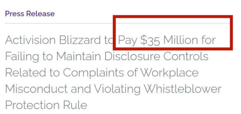 近期,根据美国证券生意业务委员会官网的消息,动视暴雪由于一些综合因素,被罚款3500万美元。美国证券生意业务委员会,简称是SEC,在官宣的公告了动视暴雪被罚款的缘故原由:“违反举报人掩护规则,未能维持工作场所不妥活动投诉有关的披露步伐。”综合以上两种缘故原由,共计罚款3500万美元。 在SEC这份长长的公告里还表现,早在2018年开始,动视暴雪就连续收到工作场所不妥活动的投诉。作为动视暴雪的投资者,是应该清楚相识这一投诉,大概会给动视暴雪带来的负面影响。而且,作为投诉,肯定会带来一些隐形的潜伏贸易风险,这些风险是投资人要和动视暴雪一起去负担。作为动视暴雪管理层,应该接纳富足的信息,去告诫员工怎么行止置惩罚这些在工作场所的不妥活动。 这个罚款公告一出,让在旁吃瓜的群众不解的是:动视暴雪在没有承认也没有否认,以致连一些反抗的通例动作,比如申说,发文都没有,选择同意缴纳罚款。根据动视暴雪2021年的财报,年收入大概是88亿元,这次罚款的金额3500万元,按照占比仅占动视暴雪收入的0.5%都不到。大概,从这个角度去明白,这点罚款对动视暴雪公司利润的影响大概微乎其微,不去申说,不去劳民伤财找状师诉讼也可以明白。 暴雪百口桶游戏国服,在本年一月已经正式停服。部门由于暴雪百口桶游戏国服停服变乱,玩不到暴雪游戏的国服玩家,大概比其他玩家更期待2023年的动视暴雪的财报。在完全失去国服市场后,到底暴雪本年的财报是红灯还是绿灯,国服市场对动视暴雪来说到底紧张不紧张,2023年会给动视暴雪一个答案。以上就是本篇文章的全部内容,感谢阅读。 |