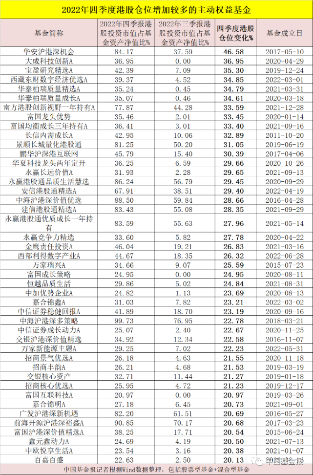中国基金报记者 吴君 公募基金司理对港股的爱好显着进步了。数据表现,客岁四序度可投港股本地公募基金(扣除QDII)增至2786只,合计持有港股市值4060亿,较三季度增长超1000亿;不少主动权益基金在四序度积极进步港股持仓占比,港股持仓比例再度受关注,其成为客岁底以来基金净值反弹力度巨细的胜负手。 只管春节后港股市场出现肯定回调,但基金司理对港股仍旧信心十足,在短期影响因素消退后,随着经济复苏、企业红利起来,在美联储加息进入尾声的配景下,港股有望睁开一轮更长的业绩验证、阿尔法选股行情,看好互联网经济、创新药等方向。 看好2023年港股投资机会 基金司理积极进步港股持仓比例 中金研究最新统计表现,克制2022年四序度,本地可投港股公募基金(扣除QDII)增至2786只。这些基金合计持有港股市值4060亿人民币,较三季度3051亿人民币持仓市值增长1009亿人民币(增长33.1%左右),为2021年四序度以来最高水平。从占比环境看,2022年四序度港股持仓占基金总资产的13.8%,占股票总市值的19.2%,较三季度的10.3%和15.3%分别上升3.5和3.9个百分点。 此中,1543只主动偏股型基金四序度港股持仓共计3071亿人民币,较三季度的2269亿人民币增长801亿人民币(增长35.3%),占基金总资产(2.0万亿元)的15.7%(为2021年二季度以来最高),占股票持仓(约1.7万亿元)的17.9%,相比三季度11.8%和14.0%均有抬升。 记者发现,不少主动权益基金港股投资比例在客岁四序度大幅提拔,Wind数据表现,有159只主动权益基金的港股投资市值占基金资产净值比提拔高出10个百分点。好比华安沪港深时机的港股投资市值占基金资产净值比从三季度末的37.59%上升至四序度末的84.17%,提拔了46.58个百分点;大成科技创新、宝盈研究精选、西藏东财数字经济优选、华泰柏瑞质量精选、富国均衡发展三年持有、长信内需发展等多只基金,在客岁四序度的港股投资市值占基金资产净值比提拔都高出了30个百分点。 “当前港股市场仍旧处于资金、红利、感情三重指标改善的战略设置期,一连看好港股在2023年的投资机会。”华安基金指数与量化投资部表现,现在对港股已往两年估值和红利克制力度较大的指标均已明显改善:资金指标中,美国通胀压力低落伍,美联储下半年转鸽概率提拔,外洋活动性趋松;港美利差转正后港股资金明显流入,预计本年随着中美根本面及钱币政策差距拉大,港美利差有望保持高位。 红利指标中,国内稳增长政策一连发力,国家密切关注数字经济发展历程,平台经济团体趋暖,为科技互联网企业营造康健发展环境;科技板块在降本增效力度加大下,企业红利或有望触底回升,互联网龙头仍将在各自范畴中保有竞争上风。别的,近期感情面出现对国际关系变乱的担心,但从团体看现在国际关系稳中向好。 长城港股通代价精选基金司理曲少杰称,客岁港股履历了显着调解,指数层面以及大部门龙头股估值已经跌出公道范围,存在显着的估值修复须要。现在克制港股的三个因素已经掉头根本转向为积极因素,美联储加息靠近尾声;企业业绩在经济全面规复的配景下意料将敏捷规复;外洋投资者对中国重拾信心,风险偏好改善,迩来几周外资主动和被动基金都在积极增持港股和A股等。 南方香港发展基金司理王士聪表现,现在阶段对于港股积极看好,但也熟悉到,2023-2024年的中国经济和产业的根本面和2019-2020年有很大差别,“以是我们不会只去关注在上一轮港股牛市中体现出色的公司,而是更加关注在本轮周期中更受益的行业和公司,以及这三年新上市的公司。” 捉住估值修复和业绩修复主线 看好互联网、创新药等板块时机 记者从业内相识到,客岁四序度以来,不少基金司理都加大了对港股的关注力度,对港股市场2023年的行情比力看好。 华安基金指数与量化投资部以为,港股在2023年具备较强设置代价,其是受益于举世大类资产设置两条主线的核心标的:一是国内经济复苏可期,春节期间高频消耗数据平静台数据复苏强劲,互联网企业红利端改善预期强;二是外洋活动性趋松,通胀一连回落配景下美联储下半年大概转鸽,前期克制港股估值的外洋活动性因素已明显改善。 在设置思绪上,曲少杰坦言,主抓龙头股的估值修复和业绩修复时机,估值修复的行情幅度大概更高,修复完成所需的时间大概也更短,业绩修复的时间更长却有望更加长期。进入业绩验证阶段和个股选择阶段后,行业龙头股票更具投资代价。过往这些股票多为外资长线资金重仓股,之前多录得高出一半的下跌,在外资回流的配景下也将更加受益。“在经济全面规复配景下依然会有先后的规复水平之分,市场也在不绝的梳理修复和复苏的逻辑,我们以为互联网经济、医药、消耗、新能源车等行业具有较为明确的增长动能。” 王士聪称,现在对港股板块的排序是:互联网>创新药>新消耗和金融地产。“对于互联网行业,我们以为其和经济周期高度同步,具备轻资产属性,且率先完成了降本增效,以是利润弹性较大,大于绝大部门商品类消耗公司。对于创新药行业,近期中国多家创新药企完成重磅药品的向外授权,以数十亿美金将外洋贩卖权益授权给了外洋大药企,再次证明了中国创新药企的出海潜力,我们设置了多位医药研究员,对创新技能有恒久跟踪研究,有信心把握相干时机。” 中欧丰泓沪港深基金司理罗佳明表现,站在这个时点,紧张看好三条主线:一是上