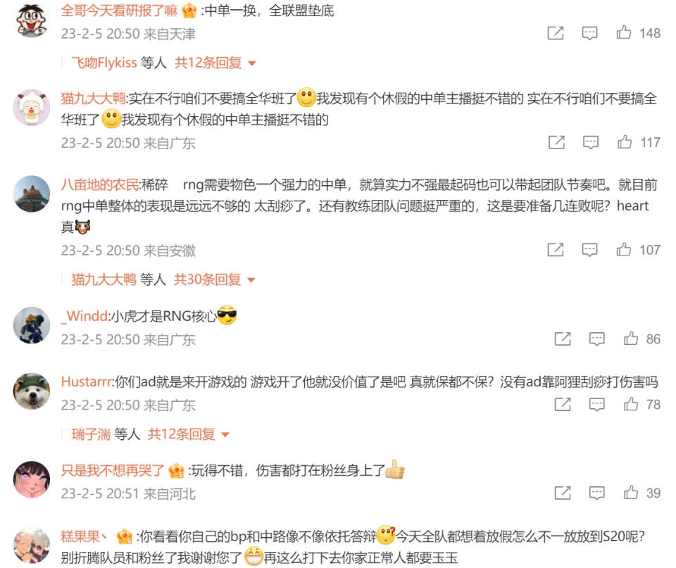 本日2月5号豪杰同盟LPL春季赛,由EDG战队对抗RNG战队。前天RNG战队公布与辅助小明续约,但同时也把TABE锻练放走了,对于队伍影响还是蛮大的,第一场角逐就被EDG打出运营差距,中单汤圆在元宵节都支棱不起来,EDG打野Jiejie在采访时挖苦本身在游戏里吃汤圆! 第二场角逐Breathe天肥奎桑提打出几波下饭操纵,GALA卢锡安也被蔚和阿卡丽强行针对,RNG打团一碰就烂,同样的经济打出5换1团战,丢了电龙魂,背面就没得玩了。终极EDG战队正面团战轻松碾压,以2-0得分赢下角逐胜利,GALA打出1-7-6战绩。 RNG战队全面差距不敌EDG,团战打不外,操纵拼不赢,包罗BP也被爆了。纵然小明回归无法扭转队伍颓态,乃至连最妥当的GALA都顶不住了,赛后他的心情非常难过,似乎在猜疑本身。究竟GALA很少打出这么丢脸的战绩,阿卡丽又是他最怕的豪杰,再加上蔚构成左右护法,GALA使出浑身解数都活不下来。 自从S7赛季以后,EDG初次在通例赛击败RNG战队。而RNG战队已经一连三场角逐被对手零封,六小场全败战绩,下一战打的还是JDG战队,再不做出改变估计是要凉了。RNG战队只是换了个中单,积分榜直接垫底第二,这影响真有那么浮夸吗? 无论是新人汤圆,还是亚军中单Angel,他俩在RNG的体现都不太行,远不如曾经的小虎。赛后RNG粉丝在官博留言怒斥:“小虎才是焦点,中单一换,全同盟垫底!着实不可咱们不要搞全华班了,有个休假的中单主播挺不错的!” 讲授娃娃和Doinb在二路直播间观看角逐,娃娃直言现在的RNG应该打不外UP,中单汤圆也有很大标题,连锻练都不知道应该给他选什么豪杰!有弹幕劝Doinb赶紧复出参加RNG,Doinb回应道:“我要去RNG的话,我要先回到我妈妈的肚子里,还要找另一个妈妈才行!” 看来Doinb并没有明白拒绝RNG,只是RNG不要韩援选手而已。假如RNG战队不对峙全华班,冠军中单Doinb确实是最好的选择吧。 RNG战队如今想请Doinb复出肯定是来不及了,而且管理层大概也没钱买人,否则不太大概放走TABE锻练,还跟小明拉扯那么久的续约条约。接下来RNG战队整个春季赛恐怕都会很惆怅,渴望他们能尽快做出调解改进吧! |
