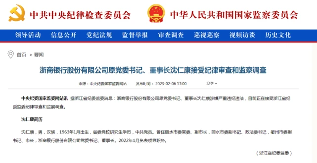 据浙江省纪委监委消息:浙商银行股份有限公司原党委书记、董事长沈仁康涉嫌严峻违纪违法,如今正在继续浙江省纪委监委规律检察和监察观察。 沈仁康简历 沈仁康,男,汉族,1963年1月出生,省委党校研究生学历,中共党员。曾任丽水市委常委、副市长,丽水市委副书记、政法委书记,衢州市委副书记、市长,浙商银行股份有限公司党委书记、董事长。2022年1月免除领导职务。 早在几天前,就有市场听说称,浙商银行前董事长沈仁康被有关部门带走观察。对此,彼时浙商银行干系负责人表现,这一消息行内确实已经传开,但如今为止该行未接到正式关照。他表现,沈仁康已经去职一年,新班子和各项工作已经上轨道,信赖即便个人被查,对浙商银行现有业务和工作不会造成影响。 2022年1月11日晚间,浙商银行发布了关于公司董事长辞职的公告。公告称,“公司董事会本日收到沈仁康提交的辞职陈诉。沈仁康因工作安排必要辞去本公司实行董事、董事长、战略委员会主任委员及普惠金融发展委员会主任委员职务。”与此同时,浙商银行还发布了《浙商银行股份有限公司关于党委书记、董事长变更的提示性公告》。公告称,根据中共浙江省委决定,陆建强同道任浙商银行股份有限公司党委委员、书记,免除沈仁康同道浙商银行股份有限公司党委书记、委员职务。根据浙江省人民政府党组决定,提名陆建强同道任浙商银行股份有限公司董事、董事长,发起沈仁康同道不再继续浙商银行股份有限公司董事长、董事职务。 责编:万健祎 |