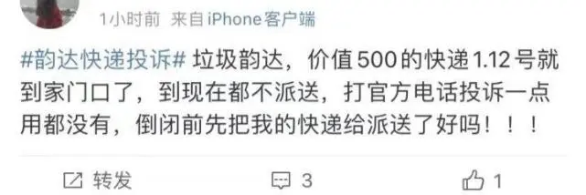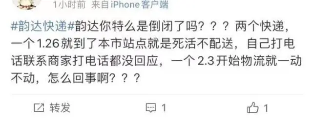 鞭牛士 2月7日消息,克日,大量网友在外交平台吐槽韵达快递出现非常,上海汤老师称快递2月2日到达上海,停滞5天还没派送得手。尚有网友吐槽中途滞留最长的包裹近一个月。 韵达官方客服回应称,人手不敷,之前有积存滞留。会尽快核实处置惩罚。 早前报道 2月2日在浙江义乌揽收的快递,2月6日体现离开位于嘉兴的分拨中心,预计2月8日到杭州。“韵达快递真是绝了。” 这是本日,一位橙友在橙友圈吐槽近来一个韵达快递,从义乌出发到杭州的第5天,依然没有收到快递。“3年前宣称市场占据率第一,市场派单量增速第一的快递公司,是不是要倒灶了?” 近来,大量网友吐槽1月开始韵达快递出现非常:最长的已经在中途滞留了近一个月。 韵达快递这是怎么了? 从义乌到杭州5天还充公到 大量网友吐槽收不到韵达快递 杭州的庄小姐,2月2日下了笔订单。菜鸟APP的物流体现,当天包裹离开金华发往义乌分拨交付中心,并于2月3日到达嘉兴创海分拨后物流不再更新,体系出现了一条“非常提示”:您的包裹己凌驾48小时未到下一站点,发起接洽卖家处置惩罚。 最新的物流体现,庄小姐的包裹距收货地131公里,预计将在2月8日送到。“相当于省内一个快递要走一个星期,一下子倒退到10年多前。“庄小姐说。 别的快递都逐步正常了,为什么韵达快递还充公到? 不光是庄小姐,从1月份开始,不少使用过韵达的用户都有如许的疑问。杭州的楼小姐1月28日在某电商平台下了订单,快递在路上走了9天后克制了更新。 “两个快递,一个1月26日就到了本市站点就是死活不配送。另一个2月3日物流就一动不动,怎么回事??“ “代价500元的快递1月12日就抵家口了,到如今还不派送,打官方电话投诉一点用都没有。“ “韵达快递要倒闭了是吧,五六个快递全都不派送,四五天了已经,一动不动。“ 近来,微博上出现大量网友吐槽收韵达快递出现非常,中途滞留最长的包裹近一个月。 人手不敷 多个网点爆仓? 韵达被曝客岁一年关闭2000多个站点 由于不停收不到快递,投诉到韵达官方的庄小姐和楼小姐分别收到了两个截然差别的表明。 隔断庄小姐家近来的杭州拱墅区一个网点客服说,快递现实上已经从嘉兴创海分拨到了杭州网点,但由于近来人手不敷出现爆仓,导致信息无法录入体系,以是快递迟迟没有送到,网上物流信息也无法实时更新。 而楼小姐收到人工客户的表明是:韵达高管出现人事故动,导致许多快递滞留在分拨中心和网点。 橙柿互动记者发现,韵达速递官方微博近来一条发布是1月31日,是一条关于迎新春的微博。不外官方关闭了批评区,许多网友通过转发功能质疑“是不是倒闭了”。 从网友的吐槽来看,除了浙江,从1月份开始,安徽、江苏、广州的韵达网点都出现了非常。 杭州另一家快递公司的业务员说,客岁年底韵达快递开始出现非常,“许多包裹积存在网点,转不出来。”这位业务员的判断是“人手不敷”。 不外近来,也有媒体曝出,客岁上半年韵达关闭了2000多家网点:2021年,韵达快递服务网点数目为32274个,2022年下半年,韵达天下网点降落到了29844个,半年时间网点淘汰了2430个。 对此,韵达股份的官方表明是,2022年以来,国际情况更趋复杂,地缘风险及局部辩论不停,促使石油等大宗能源代价在一段期间内上行显着;同时,受国内疫情多发散发等超预期因素干扰,物流流畅和供应链稳固受到打击,对消耗需求和快递行业发展造成倒霉影响,导致公司业务量和谋划业绩同比出现小幅降落。 以是,橙柿互动也想问问各人,近来你的韵达包裹正常吗? 泉源:橙柿互动记者 沈积慧 |