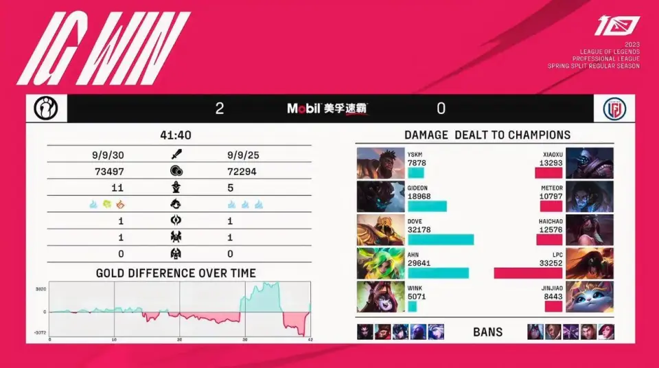 #2023LPL春季赛#2023年2月7日,LPL春季赛第附近第二个比赛日,IG对阵LGD。IG在上一场竣事了自己的连胜之旅,备受关注的新人上单YSKM在被对手BAN位针对的情况下发挥不佳,据悉在输掉了比赛后也是疯狂加练版本好汉扩大自己的好汉池,面临LGD他是否会拿出新的好汉呢? 首局BP: IG一手抢下大树,随后锁下了泽丽、剑姬,第二轮辅助位拿到女枪,中单则是亮出加里奥补足前排和控制,上一次Wink拿出女枪时曾打出队内最高的输出,本场比赛Wink是否能连续表现呢? LGD则是提上中野强度,拿到武器、猪女、塞拉斯的强势组合,双人组则是拿到偏工人属性的大头、烬,阵容上LGD的控制技能非常足。 比赛阶段: IG率先出节奏,YSKM剑姬逼真的勾引让武器中计,大树杀出轻松收下一血,第一轮资源,IG拿到先锋,LGD则是拿到小龙,随后9分钟,猪女上路Q闪资助武器找回场子。 11分钟,LGD下半区碰撞打出上风,LGD先手秒掉大树,固然IG反手的几个大招效果还可以,但泽丽此时并没有太多的输出来完成收割,终极LGD取得一波1换3的完胜。下半区比武败北的IG后续在上半区连续找回节奏,上路击杀武器,中路又击杀大头,不外小龙照旧被LGD控下。 16分钟两边中路团战,交出多个大招没有发作人头,IG状态更好控下二先锋。17分钟,LGD下路出动四个人依然动不了Dove的加里奥,IG则是上路开释先锋给剑姬吃下一血塔。 22分钟,IG抓到一波塞拉斯带上的下半区五打四的时机果断越塔,固然大树率先阵亡,但在追击战中剑姬、泽丽照旧比力强势的,IG拿到一波1换3的完胜拔掉下路一塔。 今后YSKM贪线被烬远隔断大招留住,武器TP收下人头,中路LGD也打出一波反扑,拿到一换二的小胜,而且顺势拿到听牌风龙。后续IG的中路推进依然是无功而返,还折损了加里奥。 30分钟,IG乐成控下小龙,LGD则是依靠大龙的牵涉率先击杀大树,固然握有人数上风,但状态不佳,依然选择动大龙,被IG四打五接下大龙,打出一波0换3的完胜接盘大龙开始掌控上风。 34分钟,IG带大龙BUFF推进,率先击杀猪女后YSKM强冲高地砍下双杀,IG打出2换3的小胜推平LGD下路高地。36分钟,LGD野区抓到IG野辅,拿到一波0换2的小胜。 38分钟,IG依靠YSKM的出色利用一波竣事比赛,剑姬面临LGD的抓边处理惩罚的相当岑寂,拖了非常长的时间才被打出复活甲,随后泽丽加入联手复活甲发迹的剑姬完成收割,IG打出0换4一波竣事比赛! 赛后数据,LGD前期打得不错,但没能滚起雪球,被IG养肥剑姬拖到后期,泽丽后期的战力显然是远宏大于烬的。 MVP给到了YSKM的剑姬。 第二局BP: IG拿到泽丽璐璐的组合,打野大树,中上则是奎桑提、沙皇,阵容双核驱动。 LGD则是拿到猫咪轮子妈的下路组合,而且早早点出武器,第二轮先锁塞拉斯,末了一手锁下阿卡丽将塞拉斯摇到打野位,照旧比力少见的,阵容依然是主打上中野,团战上中野带猫的进场以及轮子妈的加快照旧能给到IG双C很大压力的。 比赛阶段: 前期塞拉斯刷野速率确实黑白常慢,大幅度落伍于大树,IG轻松控下整片下半野区,大树长时间在下路运动资助IG拿到小龙,LGD则是控下了先锋,后续的先锋推进也是被IG提前Call沙皇到上路化解,还被IG控到小龙。 中期两边长时间没有比武,LGD边线武器小有领先,IG则是双C稳固发育,一血不绝到19分钟小龙团才发作,武器带猫进场将IG多人锁死在龙坑里,打出一波一换二的小胜接盘小龙。 24分半小龙团,LGD抢下小龙,两边又是点到为止,大树大招相互捆绑后直接拉开。 30分钟,IG多次实行打大龙后,在塞拉斯将偷来的大树大招放空后终于选择打到底,率先拿到大龙,武器进场后在天上清除过地便被秒掉,IG双C输出相当爆炸,打出了一波1换3的完胜顺势再收听牌风龙,沙皇泽丽的双核开始继承比赛。 今后IG大龙BUFF的推进拔掉下路高地,经济差拉开到3K。 36分钟,LGD在中路高地被破后终于忍无可忍,开启团战,武器先手进场留人,IG双C被LGD的各种秒表拉扯,终于是将自己的冲阵阵容发挥了出来,打出一波0换5的完善团,巨细龙全收,经济上也实现反超。 40分钟,阿卡丽在野区逮到璐璐固然率先打出击杀,但武器没有TP没法增援,即便塞拉斯大招推回泽丽,但缺乏武器的关键输出和控制依然输团,被IG打出1换4的完胜一波竣事比赛。 赛后数据,轮子妈打出全场最高的输出,但IG双C更加踏实,比赛两边都打得有点太稳了,尤其是LGD,阵容着实是须要中期发力的。 MVP给到了Ahn的泽丽。 |