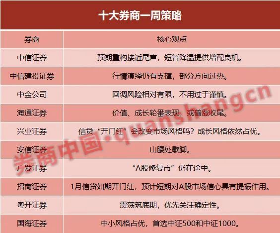 中信证券:预期重构靠近尾声,短暂降温提供增配良机 预期重构靠近尾声,短暂降温提供增配良机,结构重估仍指向小盘发展。春节后,经济预期不停上修,政策刺激预期不停下修,当前预期重构已靠近尾声;环球运动性预期和风险偏好短暂下修,市场降温提供增配发展弹性的窗口;投资者徐徐兑现已大幅修复估值的内需复苏板块,机构麋集调研加快调仓过程,行情扩散继承推动市值下沉。 起首,开年以来疫情扰动弱、信贷投放强,市场不停上修一季度经济预期,稳增长政策继承加码概率降落,两会期间推出增量刺激政策的预期下修。其次,1月非农数据令环球运动性预期下修,中高仓位下地缘扰动影响风险偏好,市场调解后基金申购开始回升,市场阶段性降温提供调仓加强弹性的机会。末了,重要宽基ETF在2月以来出现净赎回,部分行业和主题ETF则出现净申购,节后机构大范围调研查验估值修复成色,调仓的时滞大概导致市场阶段性低迷,中小盘、低机构持仓和低成交板块在关注度回升过程中连续得到重估。设置上,继承关注发展洼地,进步新兴财产中半导体和信创的优先级。 中信建投证券:行情演绎仍有支持,部分方向过热 国内复常验证中,国内高频数据表现当前经济已经摆脱了之前三年疫情的“枷锁”,关键聚会会议邻近,政策预期对市场仍有支持,外洋加息预期短期有所纠偏,外资大幅流入也面临肯定本钱与均值回归压力,内资有肯定接力的迹象,风险偏好仍在,生意业务型内资占主导主题或继承活泼。 部分范畴生意业务出现过热,结构轮动,运动战继承。节后第二周复工仍旧不及同期,现在还是弱复苏环境。短期生意业务热度虽到达警戒区间,但中期弱复苏徐徐验证配景下科技+主题仍旧占优。上周机器装备、盘算机等板块五日成交额占比五年分位分别到达85%、99%的警戒区间,或面临肯定回调压力,线索有望轮动到部分率先复苏的高端斲丧+需求环比回暖的地产/竣工链板块。但在政策及根本面高景气支持下,发展仍旧在中期占优。行业关注:信创、芯片筹划/MLCC、游戏、医药、新能源车、军工、储能/光伏新技能、食品饮料等。 中金公司:回调风险相对有限,不消过于审慎 前期A股向上修复时间历时3个月左右,部分资金近期大概有肯定赢利回吐需求,表里部变乱也对风险偏好有所影响,受此影响近期市场维持高位盘整,但结构上并不缺乏机会,如人工智能催化相干财产链表现活泼。我们以为当前市场处于政策预期向根本面实质改善的过渡阶段,只管估值修复最快的时间大概已已往,但是在经济运动仍在修复改善、经济数据处于相对空窗期以及两会前政策预期徐徐抬升的环境下,市场大概仍受到部分积极因素支持,回调风险相对有限。近期部分催化因素大概对市场表现带来肯定支持:1)1月新增信贷数据同比大幅增长且绝对规模创汗青新高,企业中长期贷款大幅多增且占比力高,反映实体企业的内生融资需求改善。2)高频数据表现经济运动修复较显着,有望继承对市场形成肯定支持。 对后续市场演绎不消过于审慎,中期市场机会大于风险。后续继承关注中国经济运动的修复环境、两会前后的政策预期,外洋关注意要市场的增长压力和紧缩政策退坡预期。设置方面,短期紧跟政策边际厘革的节奏,中期偏发展。未来3-6个月发起投资者关注如下三条主线:1)预期不高、政策出现边际厘革受影响大的范畴,如受疫情影响的斲丧,包罗食品饮料、家电、轻工家居等;2)高景气、有政策支持、中国有竞争力的制造发展赛道,包罗科技软硬件、高端制造等;3)股价调解相对充实、中长期远景有待清朗的范畴,如医药、互联网等。 海通证券:代价、发展轮替表现,或普涨收尾 2022年10底以来行情类似2019年初,即牛市第一波上涨分三小段,代价、发展轮替表现后,或普涨收尾。鉴戒汗青,这次牛市第一波上涨未完,迩来两周是小休整,后续上涨驱动力看根本面改善得到数据验证+内资流入。短期行业或平衡,着眼整年发展更强,尤其是数字经济代表的TMT、新能源结构性亮点、医药。 兴业证券:信贷“开门红”会改变市场风格吗? 2月10日,央行公布1月金融数据,此中新增贷款4.9万亿取得“开门红”。那么市场风格会由此出现厘革么?对此,我们仍旧倾向于以为,至少当下在经济复苏强度被进一步确认、或政策进一步放松的信号出现前,市场还是阿尔法为主的结构行情,发展风格依然占优:1、只管1月信贷“开门红”,但仍难弥合当前市场在经济复苏上的分歧。2、资金层面,外资流入边际放缓,与此同时国内公募、私募等机构资金尚未“接棒”入场,阶段性市场重新回到存量博弈的状态,加剧行情的结构化。3、从股权风险溢价的维度,上证综指已从客岁11月的汗青高位修复至均值附近。 发展中找低位补涨机会+战略看多中国复苏、人民币升值趋势下的“大炼化”等周期。阶段性市场回归存量博弈环境、板块轮动加快,发起探求发展中景心胸较高、但当前股价仍处低位、拥挤度相对较低的细分方向,掘金低位补涨机会:储能、传媒、军工、电力;中长期,继承沿高弹性与高增速两条线索结构。一方面,重点关注当远景气仍处于低位、但本年有望窘境反转,且估值、持仓均处于中低位的高弹性方向:信创、创新药、半导体、斲丧电子、5G;另一方面,对于当远景气已处于高位、且已表现在高仓位中的发展板块,重点掘金增速可以大概连