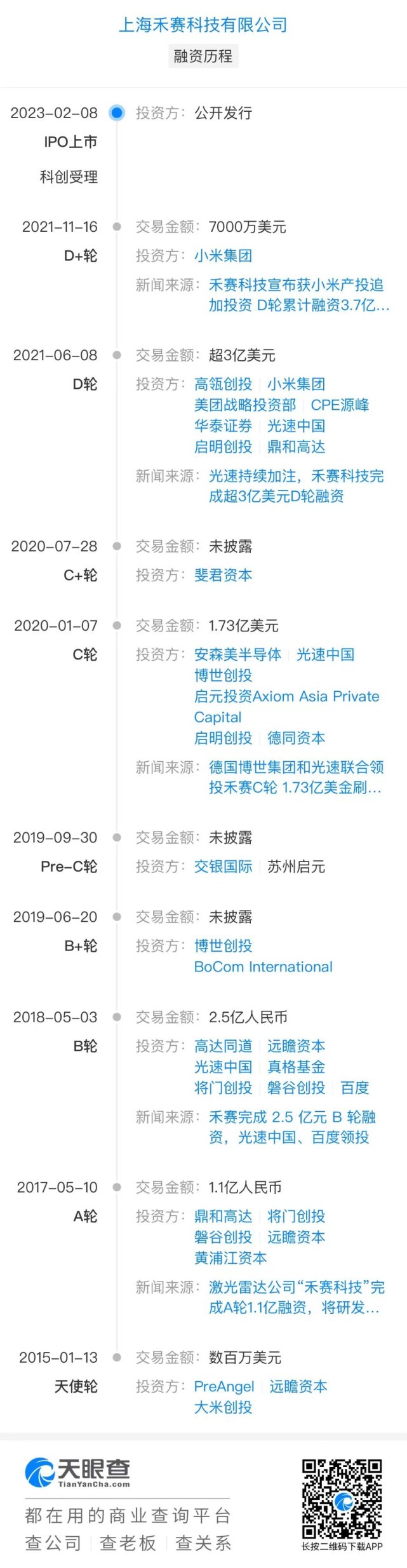 在智能电动车这条路上,很少存在国内车企与特斯拉背道而驰的技能方向,但自动驾驶的方案选择就是这唯一的特例。 在这件事变上,马斯克是绝对的特立独行者,从一开始他就为特斯拉的自动驾驶感知选择了视觉方案,由于他以为摄像头才是最靠近人类开车时视野的、符合“第一性原理”的方案。 但以华为为代表的各大国内车企和自动驾驶公司,险些全都押注在了激光雷达上。 此中的缘故原由也很简朴,他们以为现阶段的视觉方案不可以大概满意自动驾驶的要求,尤其是自身的视觉技能相比特斯拉存在很大差距的环境下,只有激光雷达才是美满的。 2021年,激光雷达正式在小鹏P5上实现了量产上车,以后,蔚来的多款车型、理想的重要车型都开始配备激光雷达,而包罗阿维塔、高合、集度等在内的新车企们,也无一不是激光雷达的拥趸。 在国表里车企对于激光雷达的判断与投入力度完全相反的配景下,两个国家的供应商也迎来了完全差别的运气。 外洋的激光雷达老牌企业们,休业的休业、退市的退市、归并的归并,徒留一声叹息。而国内的企业们,包罗禾赛科技、速腾聚创、大疆、华为等却一起在量产、融资之路上狂奔。 如今,月度出货量过万颗的禾赛科技已顺遂成为国产激光雷达第一股,于2月9日晚间乐成登岸美股市场,估值24亿美元,上市第一天涨幅10.79% ,停止9日美股收盘,其市值约26亿美元。 然而,即便是大洋彼岸在休业、此岸量产并上市的当下,国内的激光雷达厂商们所面临的局面也绝非高枕无忧,一场属于他们的战役才刚刚开始。 冰火两重天禾赛科技的上市是已往一年半以来,中国公司在美的最大一笔IPO项目,同时也是国内激光雷达行业的高光时间。 在这次冲刺上市背后,是国外与国内激光雷达市场的冰火两重天。 早在2019年,马斯克就用一句“傻子才用激光雷达”的论断给国外的激光雷达厂商宣判了极刑。 但即便云云, Velodyne、Luminar、Aeva、Innoviz和Ouster等境外激光雷达公司还是通过SPAC方式纷纷完成了上市。 但在随后的2022年,马斯克的“咒骂”似乎应了验,10月,激光雷达范畴鼻祖Ibeo提交休业申请;11月,两大行业巨头Ouster和Velodyne告竣协议举行归并;随后,曾经依赖疾驰E系列风光无穷的Quanergy也由于市值过低退市并公布休业。 但反观国内,环境则完全差别。 国内的“新权势”们,在面临电池技能瓶颈的当下,内卷的重要方向便是“智能化”, 而无法与特斯拉举行视觉方案的技能与资源媲美的他们,当仁不让地为自己的辅助驾驶方案选择了激光雷达。 从量产交付搭载大疆激光雷达的小鹏P5开始,蔚来、理想、比亚迪等新老权势纷纷量产交付激光雷达,进入2021年之后,中国车企的题目不再是“是否安装激光雷达”,而是“到底要装几颗雷达”。 而车企在激光雷达范畴的内卷,对于激光雷达公司来说,则是巨大的机遇。 2022年下半年,中国市场迎来了第一波智能车量产交付小高潮。高工智能汽车研究院的数据体现,2022年1-9月,前装搭载激光雷达的数目已达5.7万颗,预计整年达12万颗,增长10倍以上。 而在这个疯狂量产的2022年,禾赛科技揽下了多个行业第一:ADAS 前装量产定点数目环球第一,L4 自动驾驶激光雷达市场份额环球第一,车载激光雷达范畴总营收环球第一。 而禾赛科技招股书的数据也验证了这一究竟,2017年到2022年12月31日公司的激光雷达累计出货量高出10.3万台,此中有8.04万台来自2022年,占据近五年来公司全部出货量的80%。 就是在如许的配景下,这个环球市占率已达第一的国产激光雷达企业,选择了上市,打了马斯克的脸。 Billion dollar company它的故事,始于三位85后校友。 此中李一帆毕业于清华大学,并于之后在美国伊利诺伊大学香槟分校取得了博士学位。那之后,他结识了清华学长、就读于斯坦福呆板专业的向少卿以及另一位在斯坦福就读的博士孙恺。 三人一拍即合,决定打造一家“billion dollar company”,禾赛的名字也来自于硅谷最大的都会“圣何塞”,但三人终极于2014年决定携手返国创业。 返国创业初期,禾赛科技专注于激光气体遥测体系,但显然他们对于创业的野心不止于此,于是将眼光对准了一个更大的市场——自动驾驶激光雷达。 在产物上,2016年底禾赛科技正式完成了其第一款32线激光雷达的发布,2017年,禾赛推出了40线激光雷达Pandar40,冲破了此前市场被外洋厂商把持的局面。 随后,从Pandar40P、Pandar64、Pandar128再到近距补盲激光雷达的发布,禾赛科技劳绩了国表里各大无人驾驶公司的订单。 据招股书,如今禾赛科技的激光雷达已获理想、集度、路特斯、高合、长安、上汽等10家主流乘用车厂累计数百万台的量产定点,自动驾驶客户也席卷了Aurora、Nuro、美团、百度等在内的浩繁国表里着名企业。 在资源市场上,禾赛科技也早就吸引了多方关注。 在上市前,禾赛已经完成九轮融资,累计融资高出5亿美元,投资人包罗光速中国、真格基金、高瓴创投、百度、德国博世、小米、美团等着名机构或公司。 然而随着自动驾驶技能的不达预期与连续冷却,2021年后的国内激光雷达企业的融资规模根本上都缩水了50%,禾赛科技也不例外,一级市场困难的融资环境让它选择了上市融资。 早在两年前的2021年1月,禾赛科技曾经向科创板提交过招股书,但两个月后就自动撤回,当时重要的题目是与与美国激光雷达巨头Velodyne的专利诉讼题目以及与自己股东的优点切割题