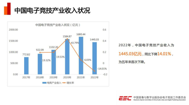今(17)日,《2022年中国电子竞技产业陈诉》在中国电竞产业年会上由中国音像与数字出书协会正式发布,根据陈诉内容:电竞产业收入1445.03亿元,同比降落14.01%,为五年来初次降落;团体用户规模 4.88 亿,同比降落 0.33 % ;2022年,天下各地共举行了108项电比赛事。别的,中国音像与数字出书协会、上海市静安区人民当局还在本日建立中国电竞产业研究院。 陈诉体现,这里的电竞游戏产业收入重要由电竞游戏、内容直播、赛事活动、俱乐部谋划等构成。此中电竞游戏收入为1178.02亿元,占比到达81.25%,同比降落15.96%。降落重要原由于市场团体低迷,用户付费本领和意愿降落等。别的部分收入为267.01亿元,同比降落4.17%。 别的,国内电竞用户规模为4.88亿。从性别来看,男性用户占比56.40%,女性用户占比43.60%,在年事分布上,25-34岁用户数量最多。用户在地区分布上呈下沉趋势,四线及以下都会用户数量占比35.90%,二线都会占比32.10%,三线都会占比18.40%,一线都会占比13.60%。 从电竞产物玩法范例来看,射击类、多人在线战术竞技类和体育竞技类排名前三,占比分别为25.70%、17.10%、10.00%。 在2022年,国内共举行了108项电比赛事活动,相较2021年有所镌汰,受到疫情等缘故原由影响,举行情势以线上(38%)及线上+线下(31%)为主,仅有31%线下赛事举行乐成。举行都会前三名为上海、杭州与成都。 陈诉还提及了电子竞技产业的出海情况,2022年,沐瞳、网易、米哈游、腾讯、好汉体育VSPO在东南亚、英国、迪拜等地举行了电竞游戏赛事。值得注意的是,昨日,好汉体育VSPO还在雅得利公布,将得到沙特主权产业基金PIF旗下Savvy Games Group2.65亿美元折合18亿元人民币的投资。 末了,游戏工委就2022年电竞产业做总结,表现只管受到疫情打击,但依然显现出较强韧性和良好远景。新的一年,国内电竞产业将以内容建立为导向,对峙规范、多元、开放的发展门路,继承积极朝向更高质量的发展。 接洽作者请点击 |