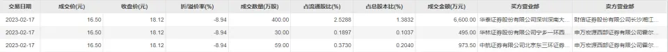 华凯易佰2月17日大宗生意业务成交489万股,成交额8068.5万元,占当日总成交额的45.86%,成交价16.5元,较市场收盘价18.12元折价8.94%。 |