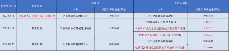 记者 | 庞宇 编辑 | 克日,永泰运(001228.SZ)频仍变动募投项目及购买资产一事引发羁系关注。 在上市不敷一年的时间里,永泰运首发募投项目反复“变卦”,至今累计变动召募资金金额占首发现实召募资金净额靠近6成,而原募投项目希望非常痴钝,4大项目有2个尚未开启。 更蹊跷的是,永泰运此次变动募资用途拟购买的标的公司在一个月前突击将另一家公司纳入囊中。在标的评估已增值125.49%的底子上,永泰运却要以高出评估值近2000万元的代价告竣此次生意业务。而标的公司至今未创收,业绩连续亏损。 在该事项连续几日引发热议后,永泰运2月17日复兴投资者体现,“募投项目标变动是公司决议部分管理层根据团体市场情况和大方向的把握订定的操持。”别的,关于关注函追问的公司是否存在规避关联生意业务的情况,该人士体现,“(该生意业务)着实是统统正常的。具体复兴可以关注公司公告。” 上海国家管帐学院上市公司年报研究中央主任叶小杰向界面消息记者体现,召募资金在短时间内变动用途,在某种水平上会陵犯上市公司和中小投资者的优点。须要关注召募资金的新投向是否公道。 IPO募投项目朝令夕改据永泰运近期公告,公司拟将原募投项目“宁波物流中央升级创建项目”中的1亿元召募资金变动为“收购绍兴长润化工有限公司(简称绍兴长润)100%股权”和“年产8000吨化学品复配分装及配套储存项目”。 这是永泰运首发召募的资金。公司于2022年4月乐成登岸厚交所主板,初次发行募资净额6.72亿元,原操持投入“宁波物流中央升级创建项目”、“‘运化工’一站式可视化物流电商平台项目”、“物流运力提升项目”、“化工物流装备购置项目”4大项目以及增补活动资金。 如今上市不敷一年,募投项目却接连变动。上一次变动发生在永泰运上市仅4个月时。彼时,公司公告拟将“化工物流装备购置项目”召募资金金额由2.80亿元调减为1.09亿元,同时将该项目剩余部分召募资金变动为用于收购天津瀚诺威国际物流有限公司(简称天津瀚诺威)100%股权。 两次变动召募资金都涉及股权收购。具体来看,永泰运分别于2022年8月、2023年2月公告披露,拟以现金1.82亿元收购天津瀚诺威100%股权,此中1.72亿元来自召募资金;拟5000万元收购绍兴长润100%股权,全部来自召募资金。 永泰运历次变动募投项目情况 制图:界面消息证券组 至此,自上市以来短短10个月的时间里,永泰运变动召募资金实行主体1次,变动召募资金利用用途2次,合计变动召募资金金额约3.8亿元,占首发现实召募资金净额的56.55%。 对此,厚交所2月15日下发关注函,要求永泰运联合召募资金利用用途的变动情况及对应募投项目立项时的可行性分析、有关业务汗青开展情况,逐项分析历次变动募投项目标缘故起因及公道性,并分析干系项现在期立项论证是否充实、审慎、合规。 上海国家管帐学院上市公司年报研究中央主任叶小向界面消息记者体现,“变动召募资金用途是否公道,可以从两个维度来观察。一方面是原有募投项目是否有须要停止,另一方面是召募资金的新投向是否公道。” 叶小杰指出,“有些公司将召募资金用于永世性增补活动资金,那么就应该联合公司的财政状态、现金流情况等举行综合判断。有些公司将召募资金用于频仍发起并购,就须要联合这些并购标的与公司现有业务的协同效应,与原募投项目标关联性等角度举行分析。” 原募投项目进度痴钝永泰运原募投项目为何反复更改?将部分召募资金拿去收购股权,原募投项目希望怎样? 界面消息记者留意到,在变动部分召募资金用途后,永泰运除补流外的4个原募投项目拟投入募资金额由5.82亿元缩减至4.10亿元,但克制2022年12月31日的累计投入募资金额仅3079.4万元,团体投资进度7.5%。 此中,“化工物流装备购置项目”和“物流运力提升项目”的累计投入募资均为0。 图源:永泰运公告 永泰运主业务务为跨境化工物流供应链服务,并提供仓储堆存和门路运输服务,跨境化工物流供应链服务营收占比超9成。 “化工物流装备购置项目”系围绕公司主业务务而设置。据永泰运此前公告体现,该项目原操持购置3艘化工品集装箱运输船舶、600个化工品罐式集装箱以及4台正面吊等化工物流装备,后又缩减为“购买1艘化工品集装箱运输船舶及270个化工品罐式集装箱”。此次公告又变动为“购买500个化工品罐式集装箱”,且实行地点也转移至中国香港,由子公司香港永泰化工物流有限公司实行。 运输船舶购买操持直接被“砍”。2月17日,永泰运证券部干系人士复兴投资者体现,“因前两年疫情比力严肃,当时购买船的代价不绝居高不下,如果买来的话大概效益也不是太好,我们也不能不绝放着,以是如今看到有一些新的更符合的项目了,就把召募资金给运用起来了,就变动到了如今这个情况。” 至于后续是否有买船操持,该干系人士体现,船对于公司来说不是那么必须,后续可直接向船公司采购仓位。相对来说,仓储资源、车队运力资源更加告急。 但现实上,用于办理现有运力瓶颈的“物流运力提升项目”也尚未开展。 根据操持,“物流运力提升项目”拟通过购置集装箱运输车辆、厢货车以及特别用途专业运输车辆等丰富运输业务,项目创建期为1年。如今限期将近。是否存在无法按照原定操持完成的大概? 对此,上述证券部人士复兴体现,具体情况不是很相
