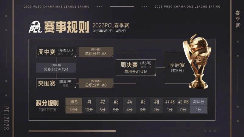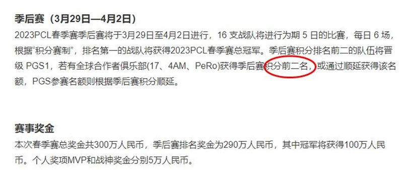 媒介:千呼万唤始出来,PCL联赛官博终于发布了2023年的详细细则,详细的日期和赛程随之相继出炉,联赛开始之日为3月7日直到4月2日竣事,通例赛统共是3周的时间,季后赛还是和之前一样打五天决出胜负,除了这些信息外,公告中尚有一些值得注意的地方。 1、总奖金改成了300万上一个赛季的奖金还是400万,这个赛季直接压缩了一百万,按原理来说蓝洞应该要增长预算才对,根据上一年蓝洞财政公报来看他们的纯利润是增长的,大概这部门钱被投入到了PGS国际赛,然后尚有就是通例赛阶段不再设置奖金,300万奖金全部归季后赛队伍瓜分,也就是说如果一个队伍没有打进季后赛,那么它即是是白白打了半年工。 一旦打到季后赛保底奖金也有15000元,冠军乃至可以得到100万这点还是没有缩水,别的还是设置了两个特殊夸奖:联赛克服和MVP,这两个位置各可得到五万元奖金,也就是说一个队伍最多可得到110万联赛夸奖。 2、降级制度保存,PGS名额仅有两席固然PDL被取消了但是PCL没有完全迎来所谓的席位制,通例赛倒数三名仍然会被降级,而升级的队伍则要通过第三方的杯赛,但是没有了次级联赛的练习赛,民间这些没有打过联赛的队伍,很难从练习赛中脱颖而出,以是PCL的队伍纵然降级了也未必不能打归去。接着是关于PGS的名额标题,在文案中有详细的形貌除互助俱乐部外只剩两个名额,如果冠军大概是亚军是互助者俱乐部,则连续到下一位直到凑够5个队伍。 3、新的互助者同伴原先PCL联赛的互助者同伴是卓威,但是本年换别的一家比他还要着名的华硕ROG,难怪华硕会约请PERO和4AM观光他们的基地和生产大厦,原来是早有图谋,别的尚有一个比力早的赞助商也返来了它就是攀升科技,想必各人都比力讨厌之前七彩虹谁人魔性的广告。 |