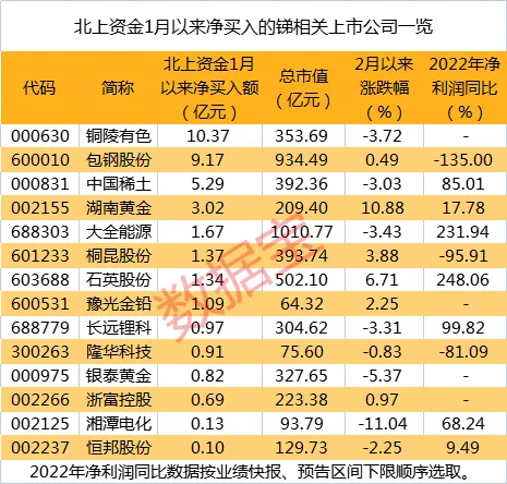 供需失衡抵牾将渐渐加剧,锑价上涨。 克日,锑价创下近11年新高。数据体现,停止2月27日,长江有色市场1#锑代价区间在8.65万元/吨至8.75万元/吨,已高出2012年2月高点的8.6万元/吨,代价创近11年以来新高。 业内人士体现,锑价上涨紧张系质料端供应有限且惜售感情高涨所致,同时需求端随着传统消耗范畴的复苏以及光伏用锑的强预期进一步推升其代价上扬,市场恒久看好锑价。 机构:锑价打开上行通道 锑是一种银白色有光泽硬而脆的金属,在地壳中的含量为0.0001%,因其用途广泛,且常作为添加剂的脚色到场工业制造,因而被称为“工业味精”。 中泰证券体现,猜测2023年,供应端仅有华钰矿业塔吉克斯坦项目贡献增量,需求端传统消耗渐渐复苏,光伏需求占比已提拔至15%,影响愈发显着,供需失衡抵牾将渐渐加剧,锑价上涨也是题中之义。 华福证券以为,受矿山团体开工程度不高影响,大量冶炼企业连续处于停产状态,持货商惜售心态强。恒久看,供应端未来增量有限,需求受光伏玻璃提振,锑价打开上行通道。 锑干系上市公司2月以来大幅跑赢大盘 干系资源储备的上市公司成为资源市场的核心。湖南黄金的锑金属储量到达29.3万吨,拥有3万吨/年精锑冶炼生产线、3.2万吨/年多品种氧化锑生产线。 华钰矿业国内可控锑资源量17万金属吨,外洋投资项目塔铝金业可控锑资源量26.46万金属吨,合计可控资源量为43.46万金属吨。待塔铝金业达产后,届时每年会有2.1万吨金属锑的产出,将控制举世近15%锑金属供应量,大大进步公司在锑金属行业板块中的职位。 驰宏锌锗的锑产物紧张是根据质料含锑的风致情况,会合生产铅锑合金;公司2020年整年生产铅锑合金486.621吨,此中含锑金属150.64吨。 兴业矿业铅锌银矿石量1615.17万吨,此中锑金属量51962.25吨,均匀品位0.32%;铜锡银锌矿石量4328.85万吨,此中锑金属量145210.67吨,均匀品位0.34%。 证券时报·数据宝统计,停止2月27日,锑干系上市公司合计总市值为9026.36亿元,此中大全能源市值超千亿元。 2月以来这些公司均匀上涨3.75%,大幅跑赢同期上证指数。长城军工、南化股份、金科情况、赛恩斯、众合科技涨幅排在前五位;此中长城军工涨幅最高,2月至今涨幅到达28.03%。 从机构关注度来看,桐昆股份、赤峰黄金、石英股份等6家上市公司关注度居前,均超10家以上机构评级。 资金流向方面,1月以来,北上资金净流入14家上市公司,铜陵有色、包钢股份、中国稀土净流入资金均高出5亿元。 |