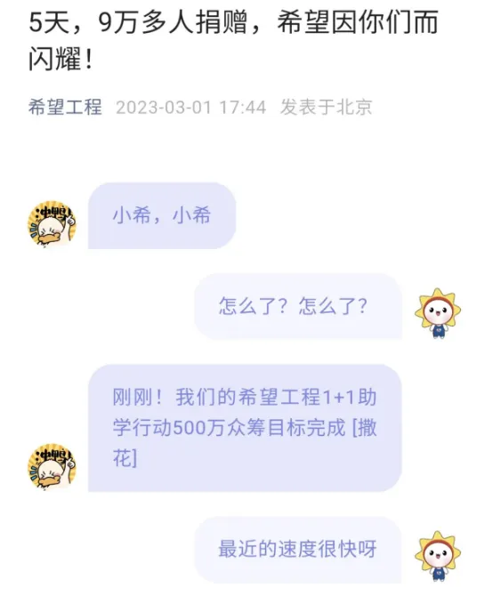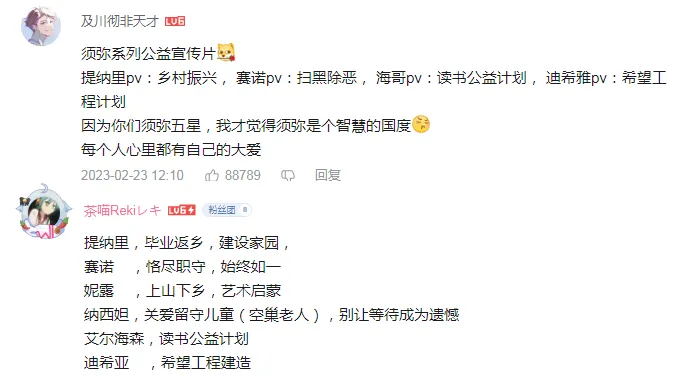 中国有句古话“无心插柳柳成荫”,在着名游戏厂商米哈游这里就遇见了如许一件事。前几日,《原神》公布了迪希雅的脚色PV,在PV中迪希雅为戈壁里的孩子们捐出了本身辛劳工作的收入,建立救济儿童的基金会“盼望之壁”。 在短短不到两分钟的迪希雅PV中,却让各人对迪希雅无私的大爱给触动。迪希雅是资助戈壁地域出生的流浪儿,不少原神玩家在看到如许的故事后,纷纷开始相应起迪希雅的愿景,自发地向盼望工程捐钱,在各个外交平台上晒出本身的捐钱记载。 越来越多的玩家都到场到这一场自发的公益运动中,翻看盼望工程尚有玩家组团,以迪希雅的名义“炽鬃之狮盼望之壁”举行共同捐赠,给出的宣言也是迪希雅说过的“墙壁的本意不是拦截,而是掩护。愿孩子们的心灵告别风沙,茁壮发展!” 一点一滴的水聚集成了海,原神的玩家们也通过本身的气力资助着盼望工程的孩子们。随着各人的不绝积极,盼望工程1+1助学办法在短短5天的时间就收到了凌驾9万网友为盼望工程捐赠的约240万元。 本日,盼望工程官方也对原神的玩家们做出了回应,称盼望工程1+1助学办法500万众筹目标完成得很快,都多亏了原神的玩家奉献本身的爱心,并挖苦快被各人捐赠的648三个数字给闪花眼了…… 不外打趣归打趣,官方也是晒出了各人在各个渠道为盼望工程捐钱的善举和留言,大量爱心人士的捐赠证书,看得各人都动容不已。 面临各人的盼望,盼望工程将带着各人的爱心前行,并给各人先容了盼望工程1+1助学毕竟是怎样运作。这项办法是为了给经济相对困难的小门生和初中生提供学习、生存上的自助,缓解他们的家庭压力,改善学习和生存条件,资助他们顺遂完成学业。 盼望工程也表现会尽快将项目捐钱会集落实,而且将资助情况反馈给各人,也下令各人理性捐钱,尽本身力所能及的一份力就好。 在盼望工程的这篇回应下方,也涌入了不少原神的玩家,各人纷纷以迪希雅为引“愿薪火相传,美德不灭”,也有玩家高兴地表现“我们被盼望工程点名表彰了”,尚有玩家感性地表现“这都是孩子们的芳华故事,我们作为大人,就是要保卫他们的空想” 提及来,原神实在已经不是第一次在脚色PV中显现本身对公益古迹的关注。早条件纳里PV提到了墟落振兴,赛诺PV提到了扫黑除恶,艾尔海森的PV讲到了读书公益操持,如今迪希雅又提及盼望工程,不得不让人猜疑米哈游是在为须弥系列制作了一系列的公益宣传片。 不外原神的这次宣传PV,确实起到了一个良好的作用,用各人对脚色的喜好,引发了他们的爱心,通过在玩家之间强大的凝聚力,在公益古迹上起到了积极的作用。 那么,各人是怎样对待这件事的呢? |