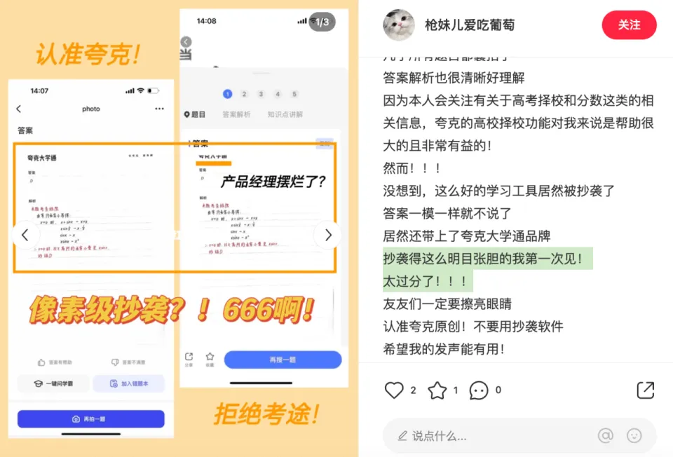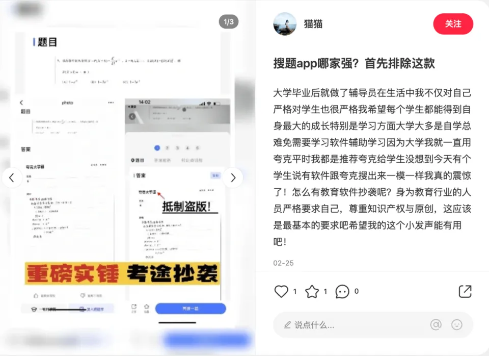 互联网企业之间相互告状并不稀有,近来一桩引发关注的是夸克告状高途不正当竞争一案,前者是被年轻人誉为“宝藏App”的智能信息产物;后者曾是K12在线教诲行业的佼佼者,是中国第一家在美上市的主营K12在线教诲机构,市值一度高出380亿美元,然而好景不长,在K12在线教诲行业遭遇打压后,其被迫转型其他教诲赛道。 夸克与高途,两个看似井水不犯河水的平台,却因大学题库对簿公堂。夸克告状称,高途公司旗下考途App非法偷取夸克App大学题库,夸克要求高途立刻克制侵权、赔偿经济丧失1000万元,这是国内首例涉及大学题库数据的侵权案件。 大门生题库数据在大多数用户认知中比力生疏,为什么夸克要因此将高途诉诸公堂呢? 发现题库被放肆盗用,夸克拿起法律武器夸克App其定位是依托智能搜刮引擎,通过智能工具给用户带来信息服务。其搭载的AI引擎,具有简便、高效、极速等特性。在竞争猛烈的搜刮市场,夸克接纳差别化的竞争战略,对准大门生等年轻群体深耕垂直场景,针对学习场景推出了“大学通服务”,给大门生提供学习资源和智能工具,此中大学拍题功能在标题辨认、学习资料分享上处在行业领先水平。大学拍题功能的运转根本是夸克所积累多个学科、差别范例的大学习题数据库,这些布局化的数据是夸克大学通业务的核心资产。 据媒体报道,夸克在客岁开始通过一样平常监测和用户反馈发现,考途App在未经授权的情况下连续非法偷取夸克大学题库数据,“数量之大让人震动。” 在小红书、微博检索“考途 夸克”关键词也能发现多名用户的反馈,好比小红书用户“枪妹儿爱吃葡萄”就发现,考途App抄袭了夸克,“答案如出一辙就不说了,居然还带上了夸克大学通品牌,抄袭得这么明火执仗的我第一次见!” 大学辅导员“猫猫”则体现,“本日有个门生说有软件跟夸克搜出来如出一辙,我真的震动了!怎么有教诲软件抄袭呢?身为教诲行业的职员,严酷要求自己,恭敬知识产权与原创,这应该是最根本的要求吧。” 从相干截图看,考途App部门答案确实存在抄袭陈迹,不光是在内容排版、颜色标注息争题步调等关键点上跟夸克的答案完全一样,有些答案中以致直接出现了夸克Logo。 考途App是高途旗下面向大门生的搜题应用,提供课本网课试卷答案等内容,其官方先容称“收录上万本课本教辅册本,包罗数百个大学学科,海量万万题库,并配有详细优质剖析。”搜题功能是考途App的核心功能,这让其与“夸克大学通”存在直接竞争关系,近来终因题库数据擦枪走火。 在互联网行业,产物抄袭不停都是引发口水战的重灾区,好比2021年就有网易云音乐以《关于给酷狗“盗窟办”团队申请年中嘉奖的发起》一文图文并茂控告酷狗“像素级”抄袭其部门功能的“名局面”,更早从前则有剪贴板应用Pin开发者钟颖求全非难锤子BigBang抄袭等类似口水战,乔布斯当年也曾由于Windows 体系接纳了跟Macintosh类似的视窗体系而求全非难微软是“小偷”。由于软件产物在UI/UE等功能计划上短缺法律掩护体系,因此产物抄袭末了每每都只会有“道义”上的求全非难,而不须要负担法律责任。 不外,纵观夸克告状高途抄袭一事的来龙去脉可发现,这不是简朴的产物抄袭,而是内容侵权,岂论是夸克大学通还是考途App的搜题功能,看似搜刮服务,实则是内容服务,考途App疑似“抄袭”的也不光是产物界面、交互等“外在”,而是题库这一“内容”根基,本质上就是将夸克大学通给“一锅端”了,而且整个过程都丝绝不加粉饰,连Logo都搬已往了,夸克不跳起来才怪。 夸克在告状状中要求高途立刻克制获取、利用夸克题库数据,并删除其过往长期偷取的试题、答案(含剖析)数据,同时赔偿经济丧失1000万元,并在产物的明显位置一连30日登载声明以消除恶劣影响。这一诉讼终极的讯断结果出来还需假以时日,但它对行业来说却不无鉴戒意义:一方面它反映出互联网公司“得年轻人得天下”的趋势,但要得到年轻人不能靠走捷径;另一方面,它提示了互联网期间“内容为王”的究竟,企业须要在内容上下功夫。 高途焦急可以明白,但抄袭肯定是不对的高途推出考途App捉住大门生群体不让人不测。2021年,在K12教诲业务受阻后,高途全面转向职业教诲业务。职业教诲告急分两大类,一类是考研、考公、考据等职业考试培训,另一类则是企业培训、语言学习、职业技能和终身教诲等,前者告急面向大门生,后者则有部门面向大门生。因此可以说,大门生已成为高途核心用户群之一,考途App也主打考研等场景。 在传统K12教诲遇阻后,高途急于扩展新业务来补充K12的巨大丧失,旗下产物考途App出于本钱或时间的思量直接“走捷径”搬运夸克题库内容。高途急于转型的焦急心态是可以明白的,其K12教诲业务的遭遇以致尚有些让人恻隐。不外,作为一家上市公司,高途旗下产物考途App绝不粉饰地抄袭搬运友商的大门生题库的活动却是不可取的,这会让其既要遭受道义的非难,也需付出法律的代价,由于直接搬运内容以及复制商业模式的做法直接扰乱了市场秩序,涉嫌不正当竞争。 不光是高途想要捉住大门生用户群。在互联网流量红利消散后,被视作“活水”的年轻人已成为兵家必争,此中大门生尤其被器重,一方面,大门生群体数量富足大,克制到2021年,我国高等教诲在学总规模突破4400万人,他们是培训、雇用、出国等行业的重点
