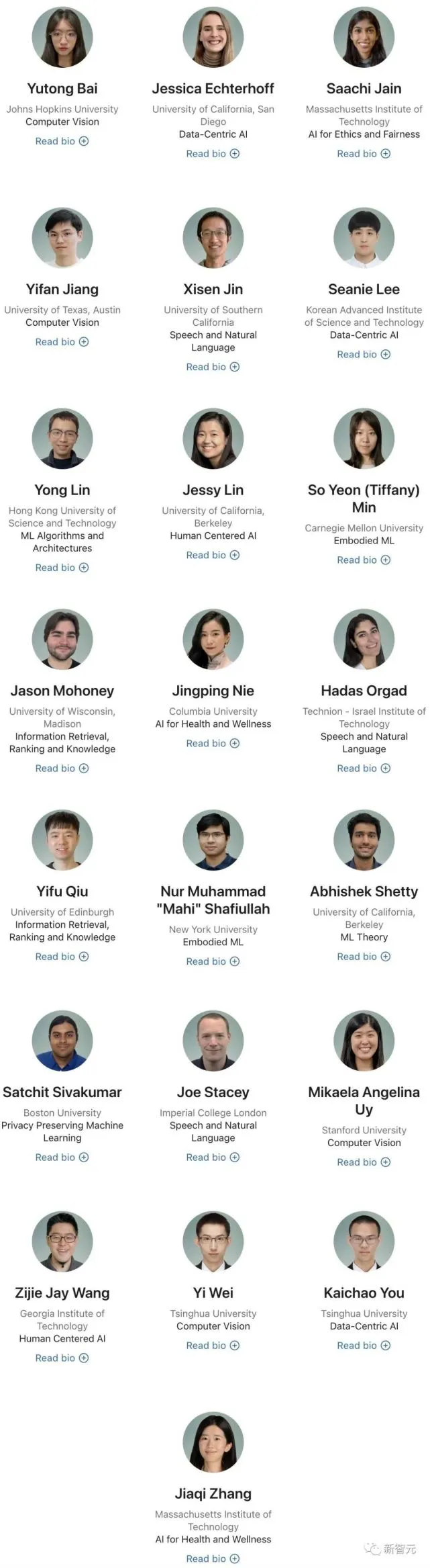 新智元报道 编辑:编辑部 【新智元导读】刚刚,苹果公布了2023苹果学者名单,11名华人博士乐成入选。 一年一度的苹果博士奖学金又开奖啦! 刚刚,苹果呆板学习研究中央(Apple Machine Learning Research)发布了2023年在人工智能/呆板学习范畴得到博士生奖学金的「苹果学者」名单。 本年,共有22位弟子荣获苹果奖学金,此中,华人弟子占了半壁山河,有11人。 22位博士生入选,此中一半是华人 刚刚,苹果呆板学习研究中央(Apple Machine Learning Research)发布了2021年在人工智能/呆板学习范畴得到博士生奖学金的「苹果学者」名单。 被提名的弟子是基于他们的创新研究、作为头脑首脑和相助者的履历、以及推动其各自范畴的答应而获奖的。 该奖学金项目旨在表扬盘算机科学和工程研究职员在研究生和研究生阶段的贡献。 本年一共有22位弟子入选,此中11位是华人博士生。 Yutong Bai Yutong Bai是约翰霍普金斯大学盘算机科学博士四年级弟子,主修盘算机视觉,由彭博精良传授Alan Yuille引导。 她曾经在Meta AI和谷歌大脑训练。此前,她曾得到CVPR最佳论文决赛入围奖。 她的研究旨在将知识整合到盘算机视觉标题中,并在更少的监督下构建强盛的人工智能,从而使深度学习模子可以大概安全地摆设在现实天下当中。为了实现这个目的,她对包罗表征学习、自监督学习和可扩展多模态学习等方向举行了探索。 Yifan Jiang (江亦凡) 江亦凡是德克萨斯大学奥斯汀分校的四年级博士生,师从Zhangyang (Atlas) Wang传授。 他的研究爱幸亏于天生模子、神经渲染和盘算照相范畴。他的目的是构建呆板智能,将天生模子和神经渲染技能接洽起来,以便在2D和3D场景中实现强盛的应用,包罗图像编辑/处理处罚、视图合成和3D创作。 他本科就读于华中科技大学,曾在Adobe(Marc Levoy的团队)、Google Research(GCam)、Adobe(应用研究团队)和Bytedance AI实验室(美国CV实验室)训练。 Xisen Jin Xisen Jin是南加州大学的博士生,导师为任翔传授。 他的研究试图使语言模子可以大概从永无止境的文本数据流中不停学习。他的研究低沉了更新模子的资本,使其更轻易创建个性化的模子并保持模子中的知识是最新的。 他本科结业于复旦大学,曾在彭博社NLP平台团队、AWS人工智能实验室、Snap公司、微软亚洲研究院以及京东的数据科学实验室举行过训练。 Yong Lin(林勇) 林勇是香港科技大学的博士生,导师是张潼,前腾讯AI Lab主任。 林勇的研究处于因果关系、呆板学习算法与理论的交错点。详细来说,他的目的是创建稳固的模子,可以泛化到未见过的测试分布。 Jessy Lin Jessy Lin是加利福尼亚大学伯克利分校人工智能研究所的博士生,导师是Dan Klein和Anca Dragan。 她结业于麻省理工学院,主修盘算机科学和哲学。在此之前,她在Lilt公司从事研究和产物工作,在人机翻译的配景下探索这些标题。 她的研究重点是构建利用语言与人协作并从人类反馈中学习的AI智能体。她的研究爱好包罗交互式代码天生模子、对话和语言引导的强化学习。 Jingping Nie Jingping Nie是哥伦比亚大学电子工程专业四年级的博士生,由姜小凡传授和Matthias Preindl传授引导。本科结业于史密斯学院工程学。 她的研究重点是人工智能体系中将来以人为中央的智能且隐私感知的可穿着装备的软硬件协同操持。 Yifu Qiu Yifu Qiu是爱丁堡大学和剑桥大学的ELLIS项目博士生,由Shay Cohen博士、Anna Korhonen传授和Edoardo M. Ponti博士引导。 此前,他在爱丁堡大学得到硕士学位,从事文本择要和布局化猜测工作。并曾在百度NLP继承研究训练生,举行开放域问答和麋集检索的研究。 他的研究重要会集在多语言情况下的语言天生范畴,包罗进步模子的泛化、小样本学习和可控性等根本本事。 Zijie Jay Wang Zijie J. Wang是佐治亚理工学院的博士生,由Polo Chau引导。 他的研究通过开辟新奇的交互界面,使人们可以大概轻松地与呆板语言体系举行大规模交互,从而使人工智能具有可问责性、可表明性和可访问性。 Yi Wei Yi Wei是清华大学的博士生,导师是鲁继文传授。曾在赛灵思、商汤科技、微软亚洲研究院、字节跳动、高斯呆板人工作过。 他的研究爱好是3D视觉,尤其专注于三维重修和3D场景明白。他的工作将传统的多少学与迩来发展的深度学习相团结,旨在资助人工智能体系更好地明白3D真实天下。 Kaichao You(游凯超) 游凯超是清华大学软件学院的三年级博士生,师从龙明盛传授。 他的研究旨在开辟开放和动态情况下的呆板学习算法,重点是呆板学习中的迁移学习,特别是将深度学习中的各种情势的知识从一个源顺应到另一个源。他迩来的工作包罗范畴顺应、模子顺应和模子中央顺应。 Jiaqi Zhang Jiaqi Zhang是麻省理工学院的博士生,由Caroline Uhler引导。此前在北京大学得到了数学和统计学学士学位。 在生物医学应用的鼓励下,她的研究旨在序贯决定和因果关系的交错点上发展统计和算法根本,更确切地说,是在一个由潜伏因果规则创造的体系中做出决定的战略操持。 完备名单 以下是入选弟子的完备名单: 参考资料: https://machinelearning.apple.com/updates/apple-scholars-aiml-2023 |